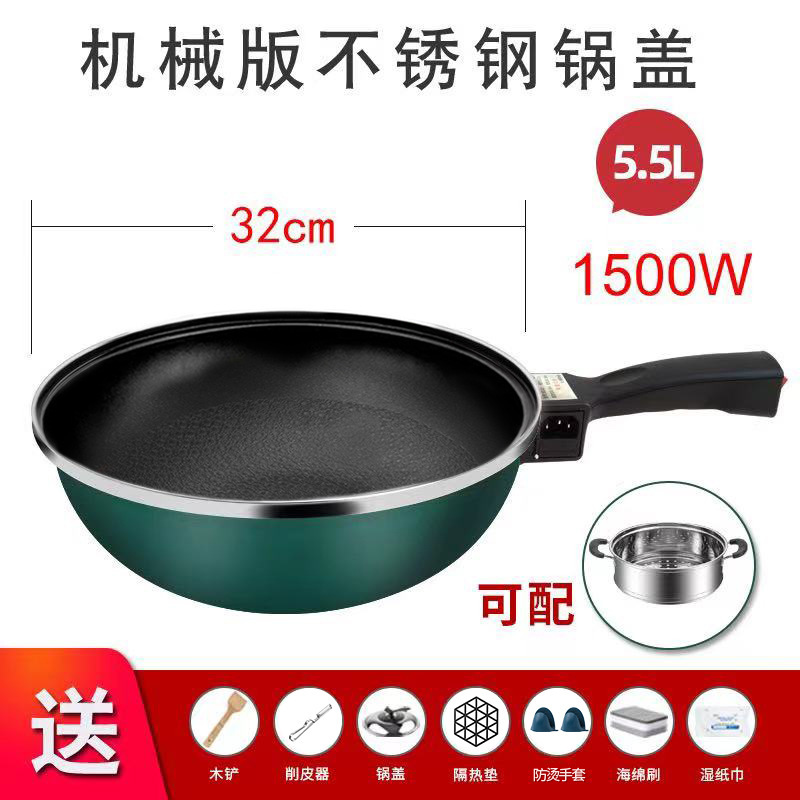 • 绿色电脑加厚版-不锈钢盖-带蒸屉