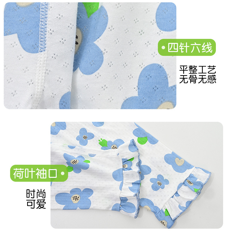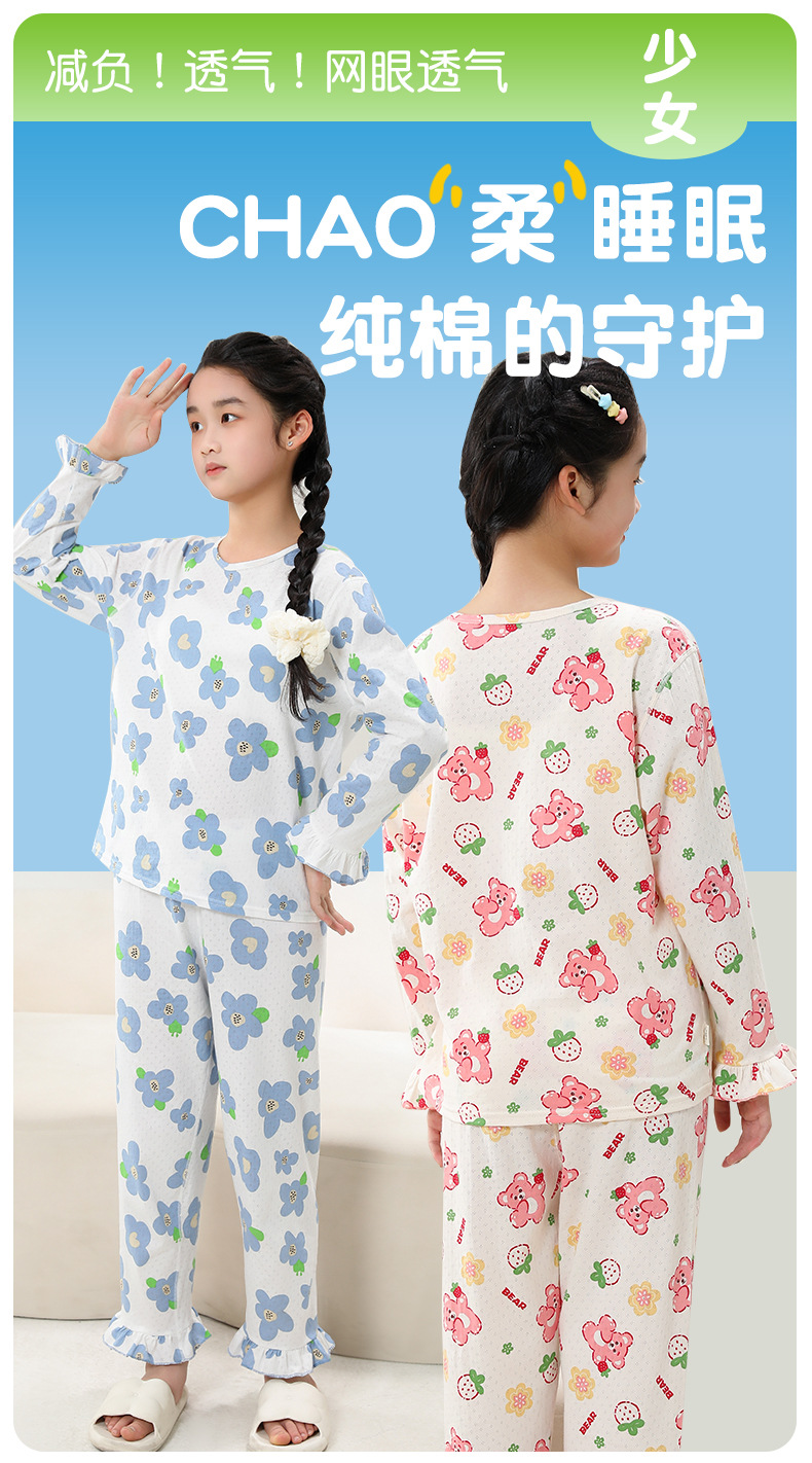 걸스 여름 긴팔 바지 세트 봄과 여름 대형 어린이 및 소녀를위한 에어컨 세트 면화 얇은 홈 의류스토어 가기