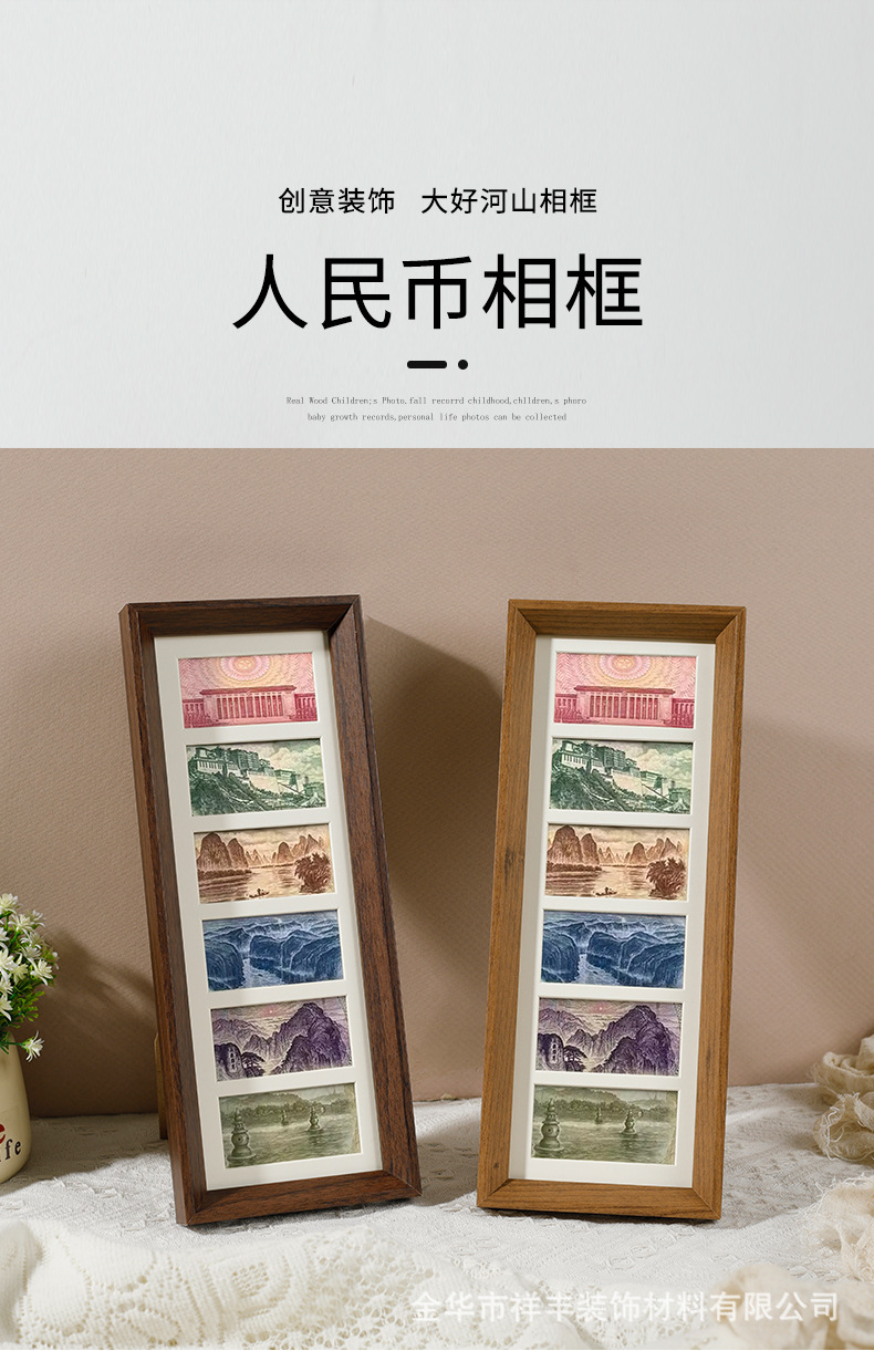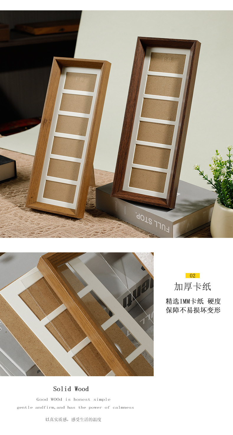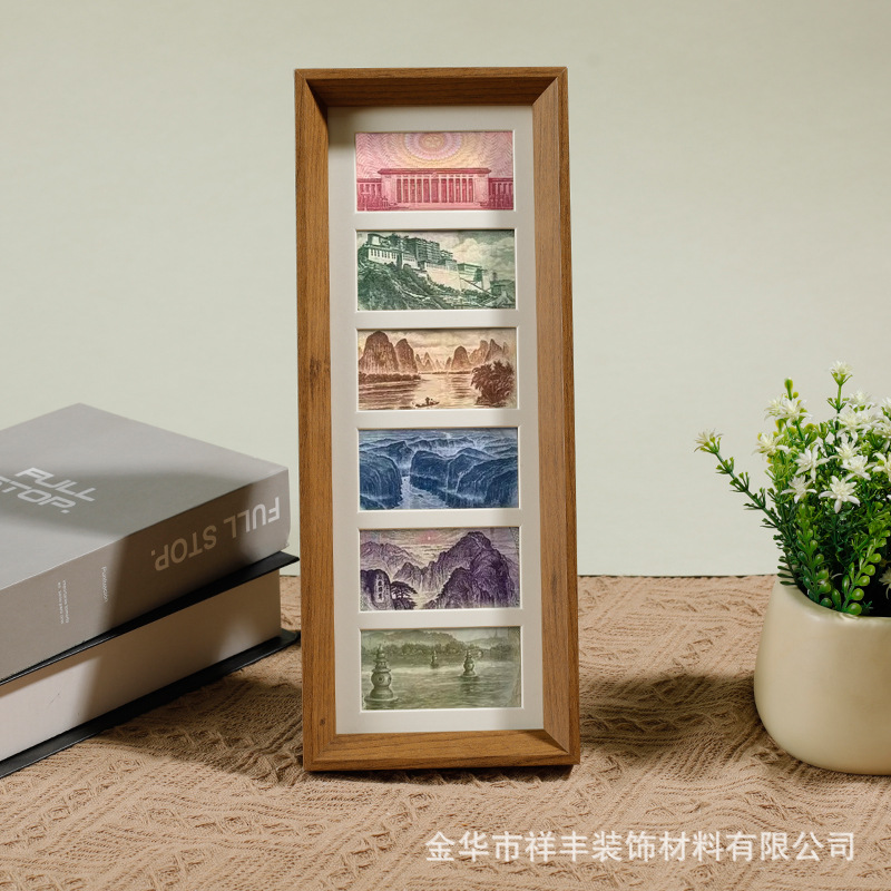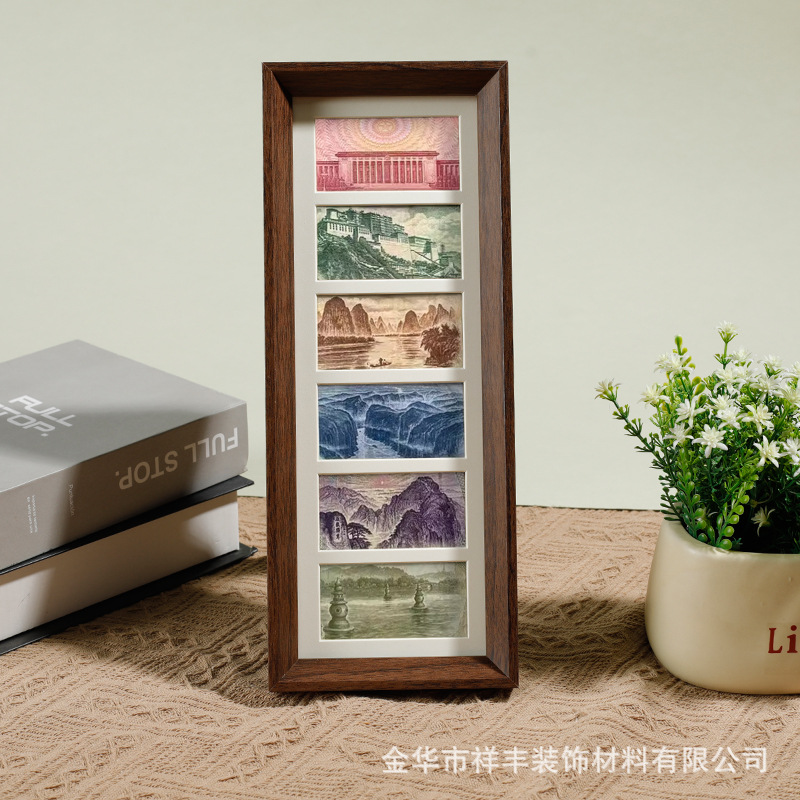 6 그리드 동전 장식 나무 사진 프레임 호두 컬러 멀티 골드 그림 프레임 나무 테이블 장식품 공장 도매스토어 가기