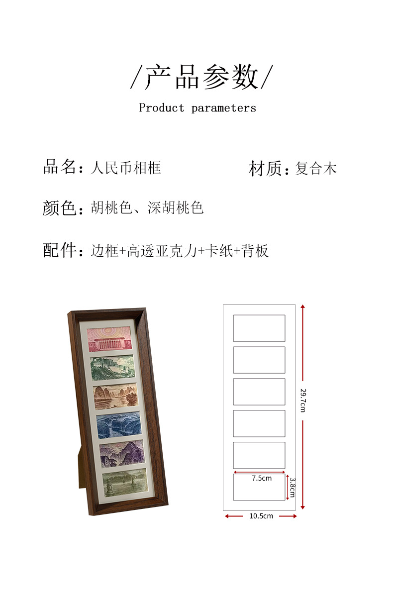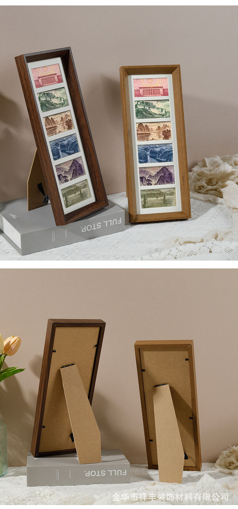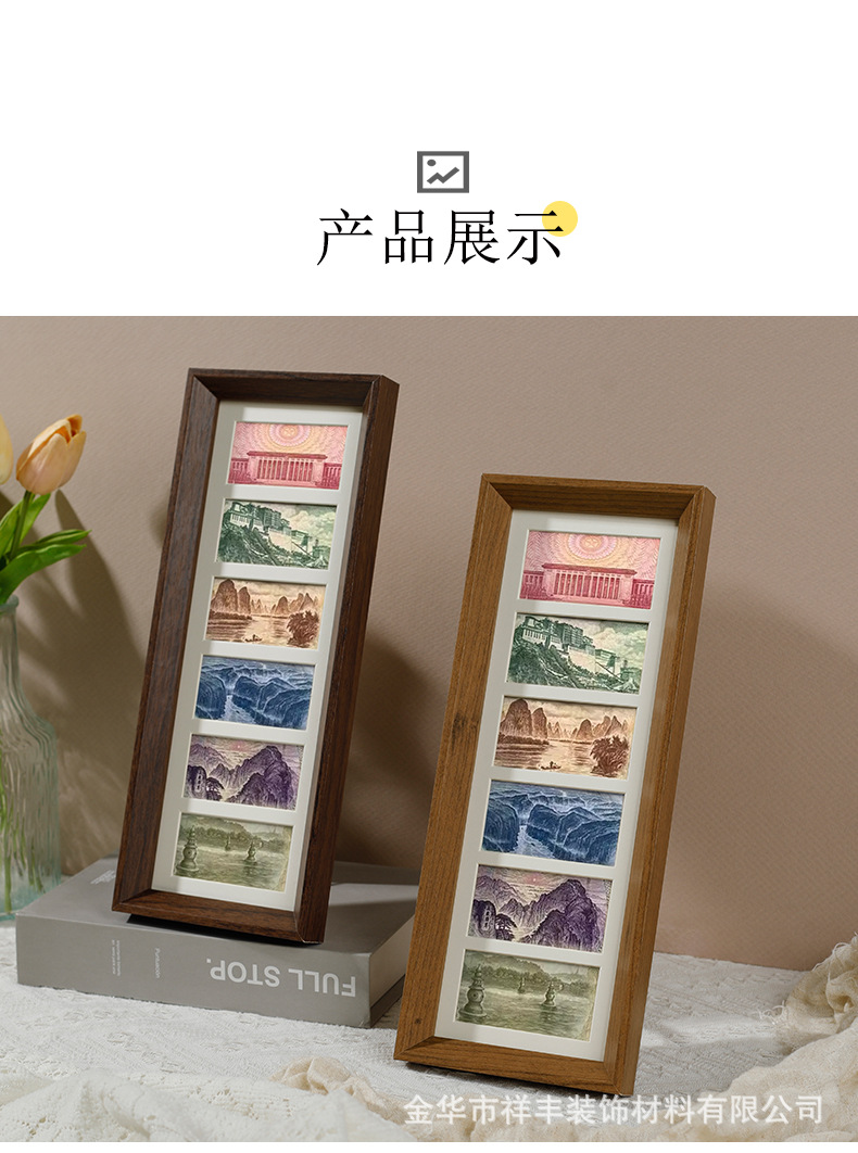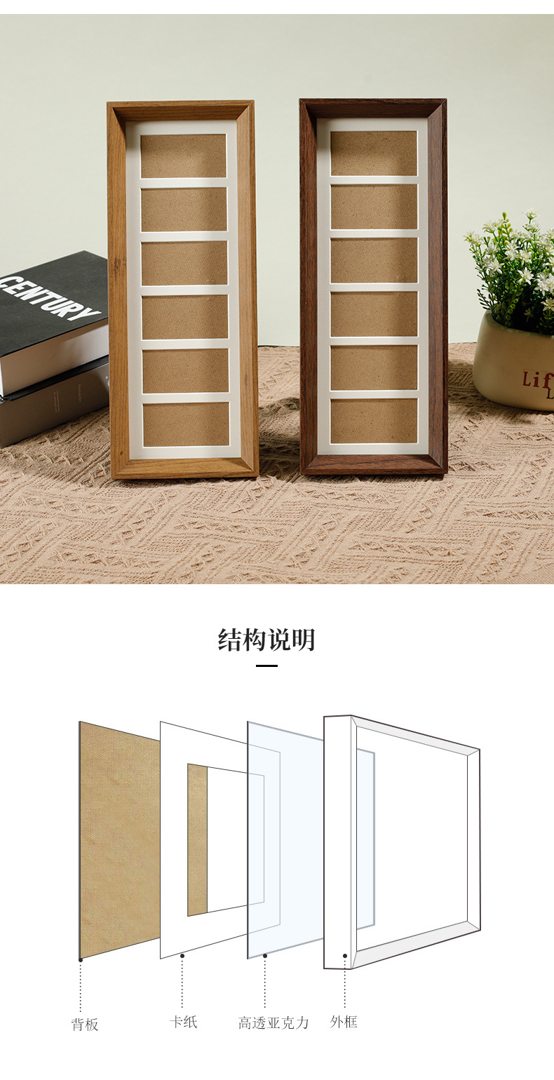 6 그리드 동전 장식 나무 사진 프레임 호두 컬러 멀티 골드 그림 프레임 나무 테이블 장식품 공장 도매스토어 가기