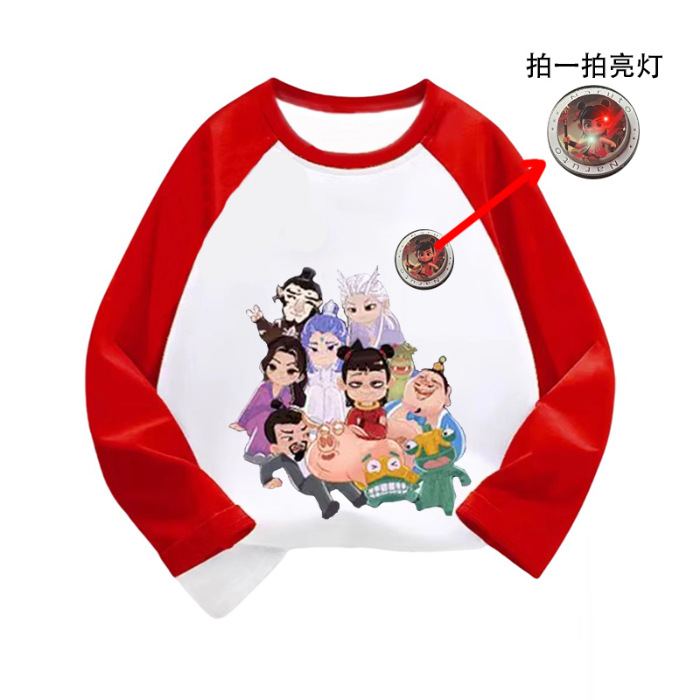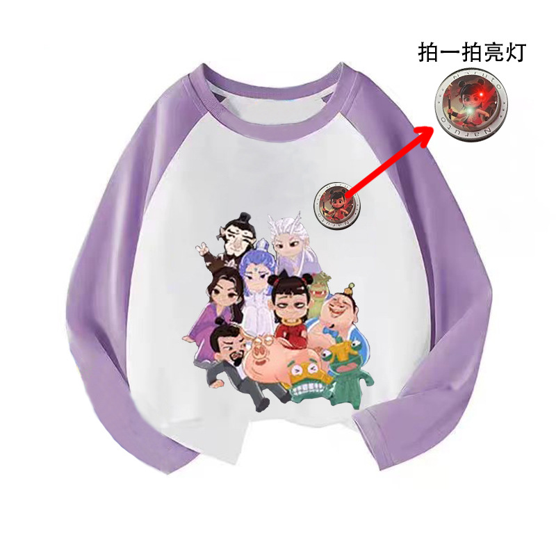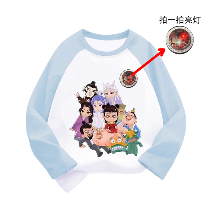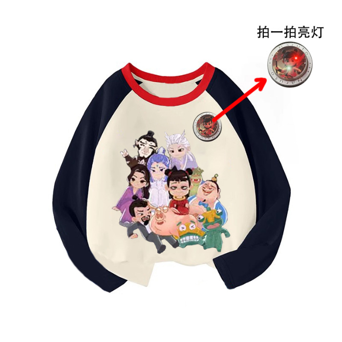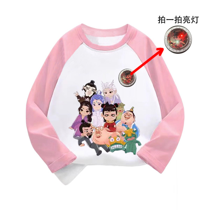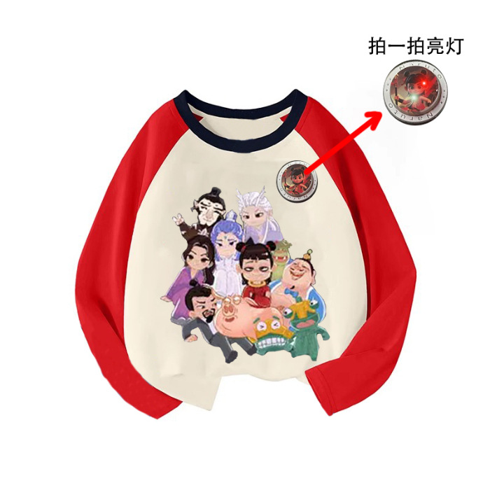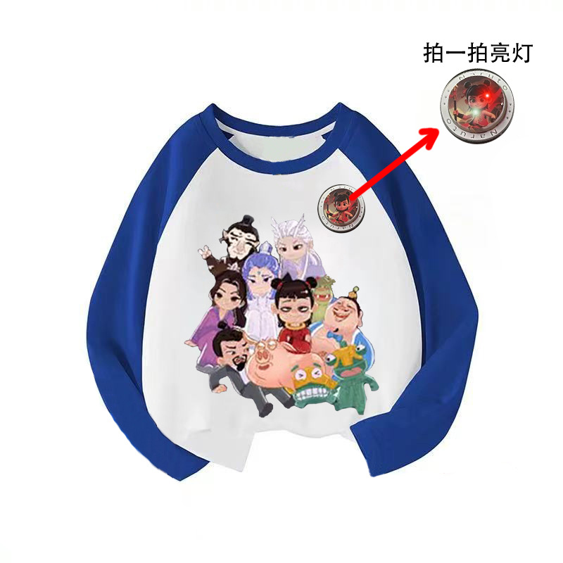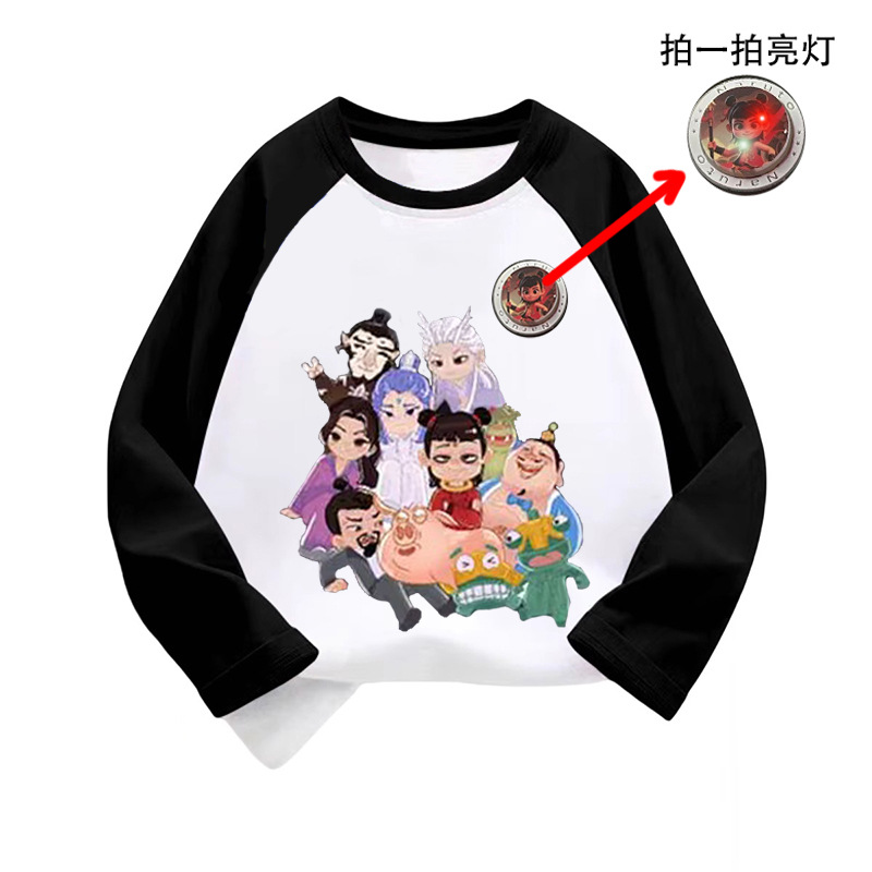라글란 소매 어린이 만화 긴팔 티셔츠 큰 어린이 면화 옷 2025 봄과 가을 새로운 외국 스타일베이스 코트스토어 가기