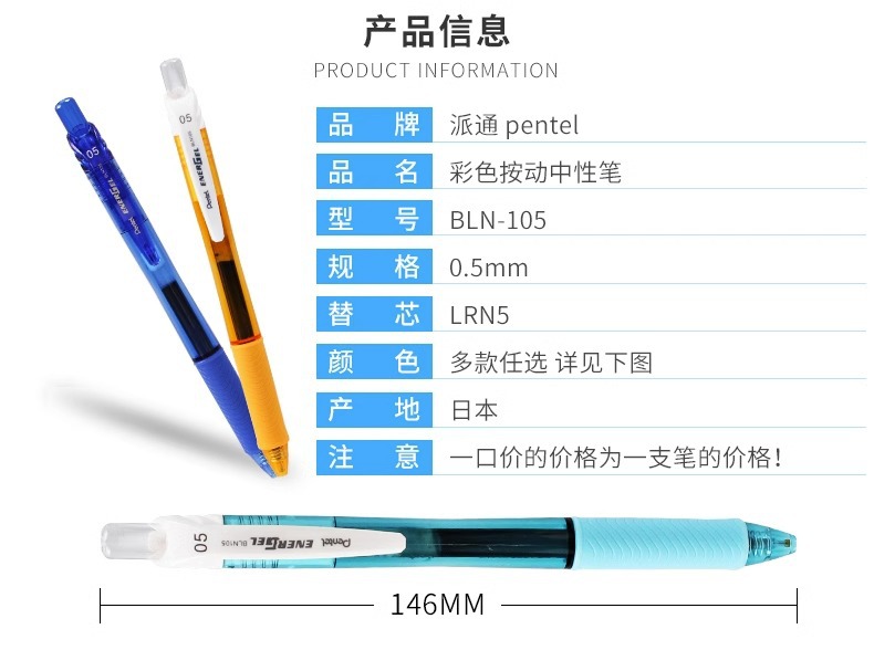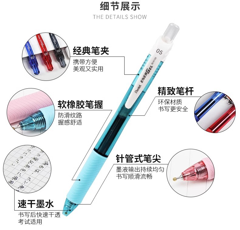 펜텔 빠른 건조 젤 펜 BLN105 학생들은 시험을위한 특수 바늘 튜브 사무실 사인 펜을 누르십시오스토어 가기