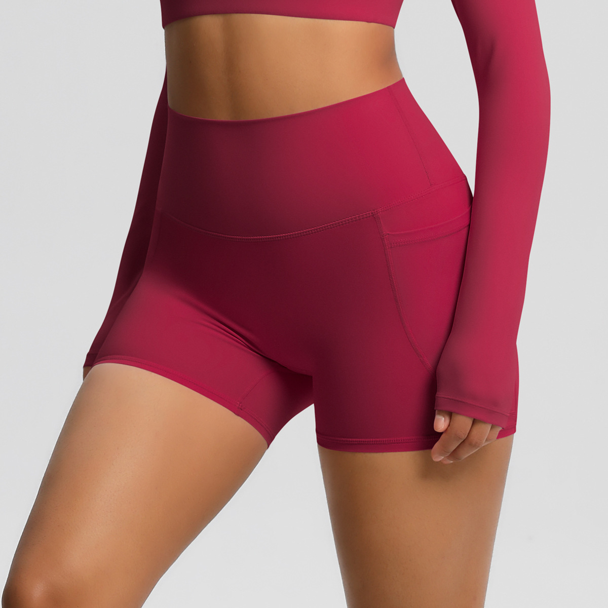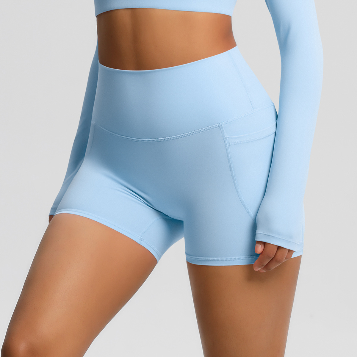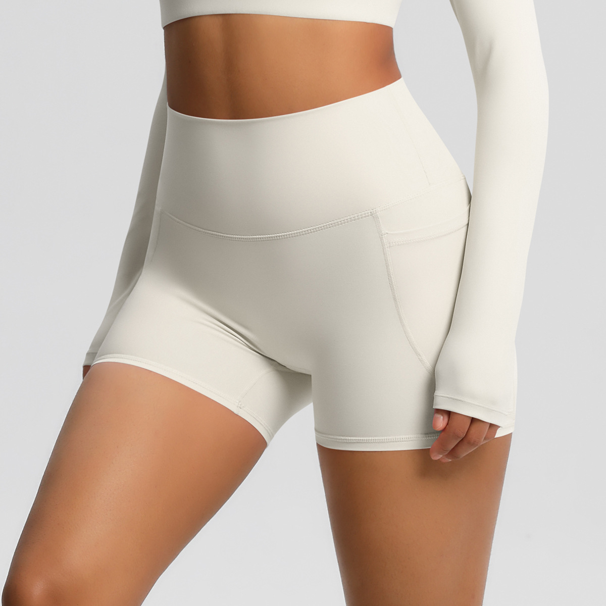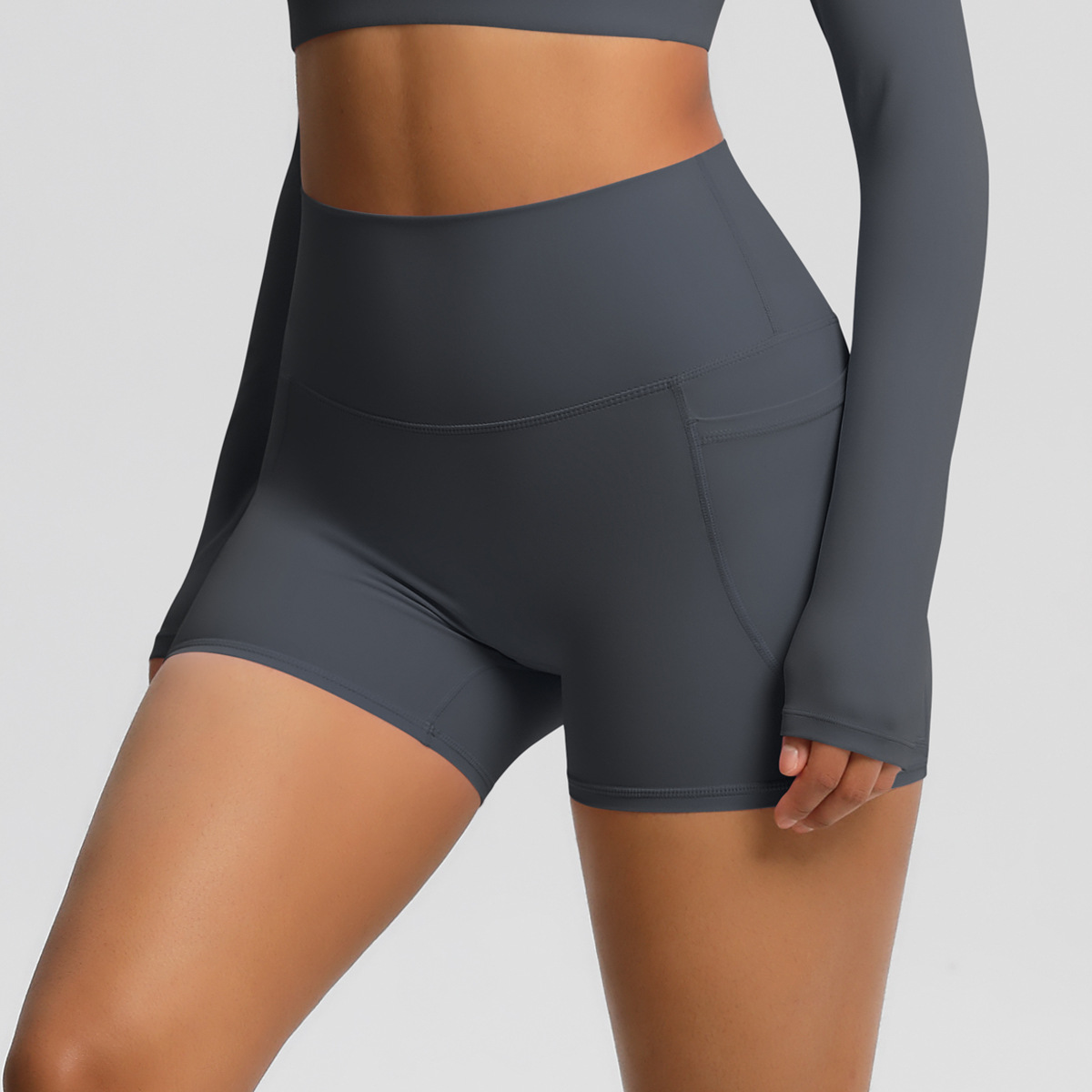 국경 간 알몸 높은 허리 요가 반바지 빠른 건조 통기성 타이트 포켓 바지 야외 사이클링 스포츠 달리기 피트니스 바지