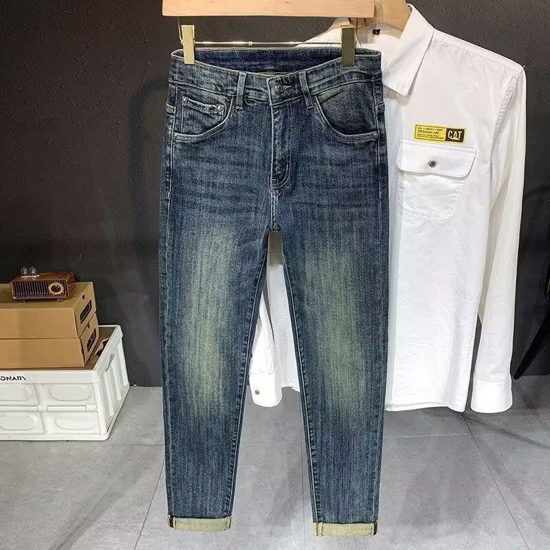청바지 남성용 블루 뉴 봄 및 가을 트렌디 브랜드 슬림 핏 슬리밍 스트레치 캐주얼 하이 엔드 트렌디 팬츠