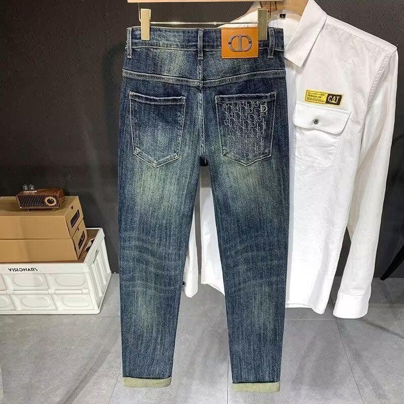 청바지 남성용 블루 뉴 봄 및 가을 트렌디 브랜드 슬림 핏 슬리밍 스트레치 캐주얼 하이 엔드 트렌디 팬츠스토어 가기