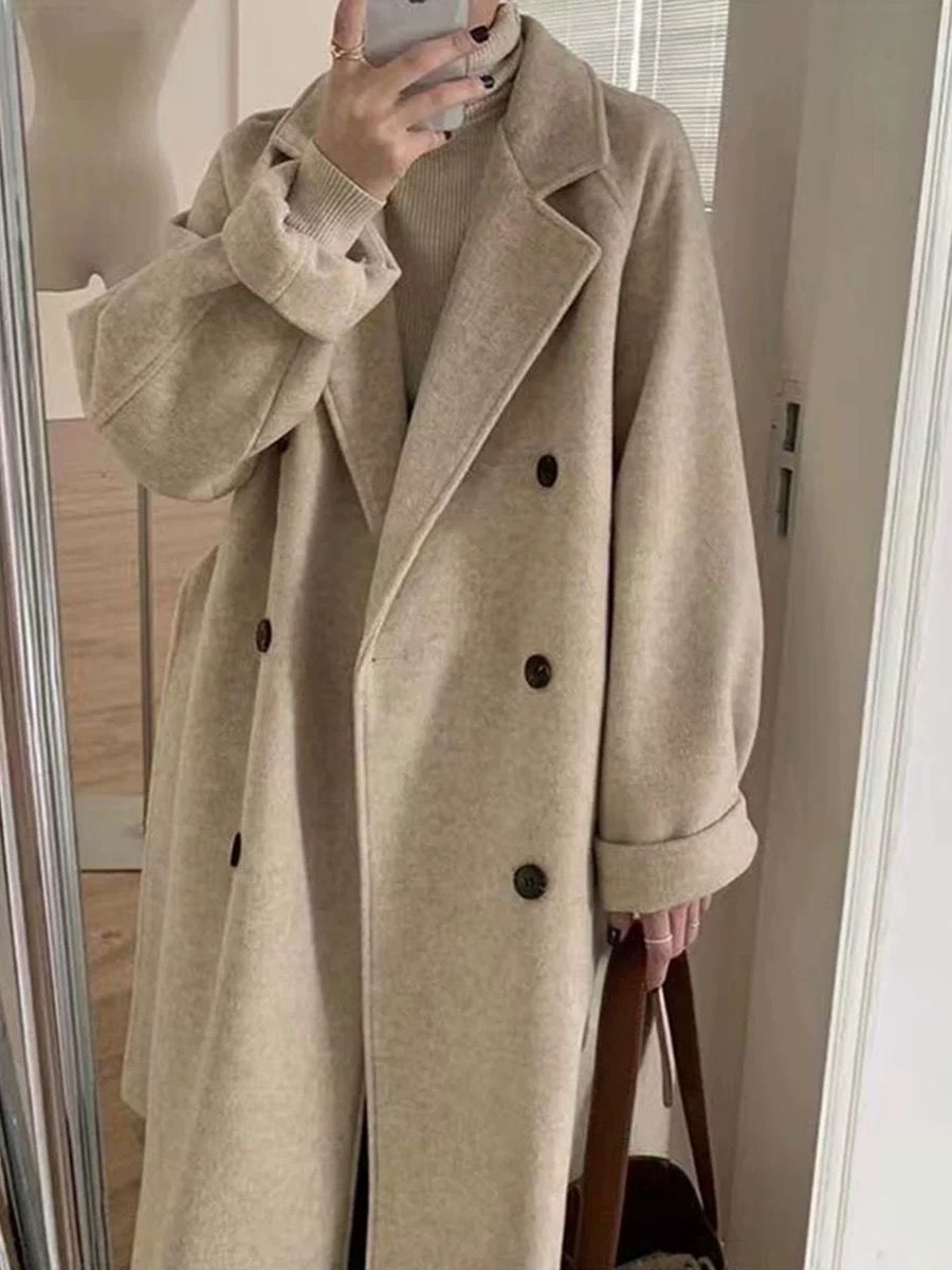 모직 코트 여성 2024 가을 겨울 신작 한국식 느슨한 슬림보기 여성용 중형 및 긴 모직 코트