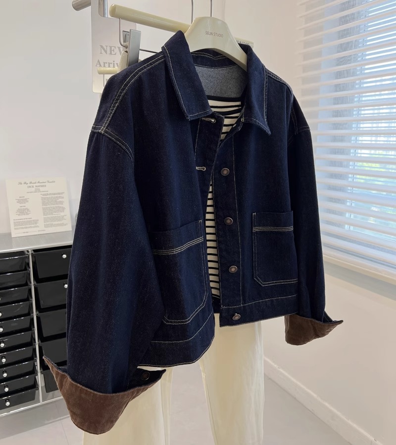 한국 스타일 BF 스타일 레트로 다크 블루 데님 코트 여성 느슨한 게으른 유니섹스 탑 재킷 2024 가을 뉴스토어 가기