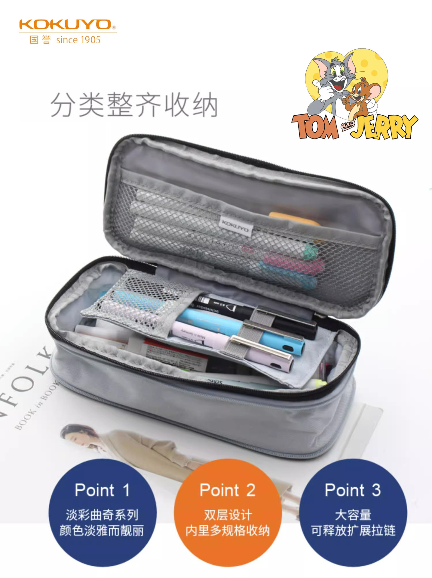 일본 고쿠유 연필 케이스 KOKUYO 고양이와 마우스 제한 DIY 대용량 학생 학습 문구 케이스 연필 가방스토어 가기