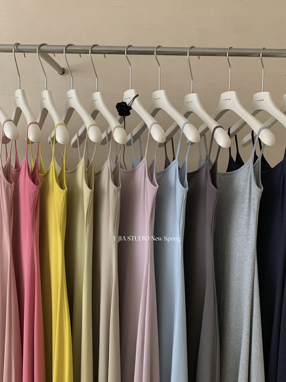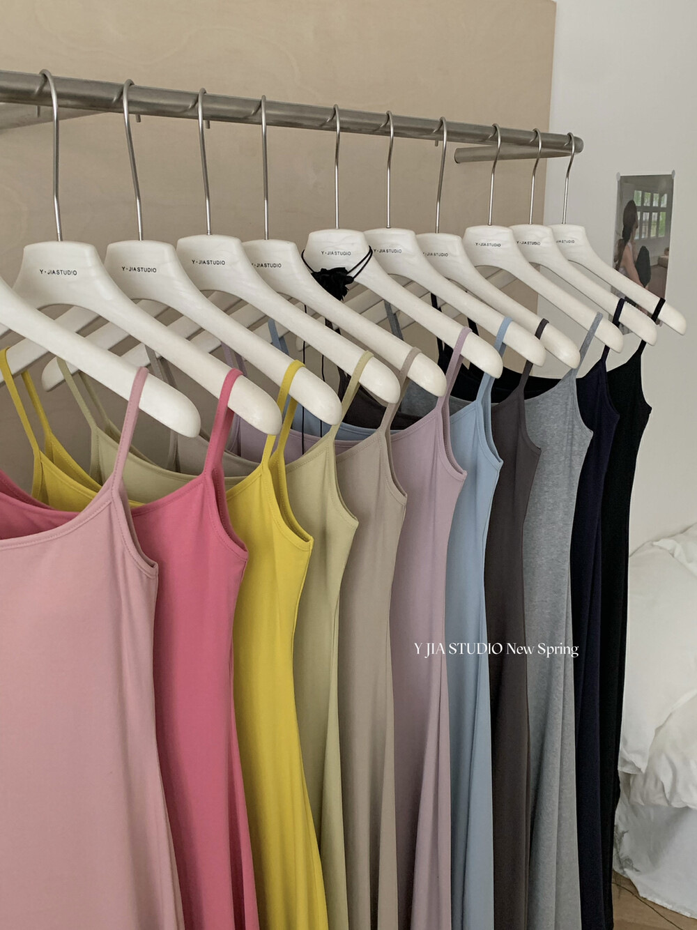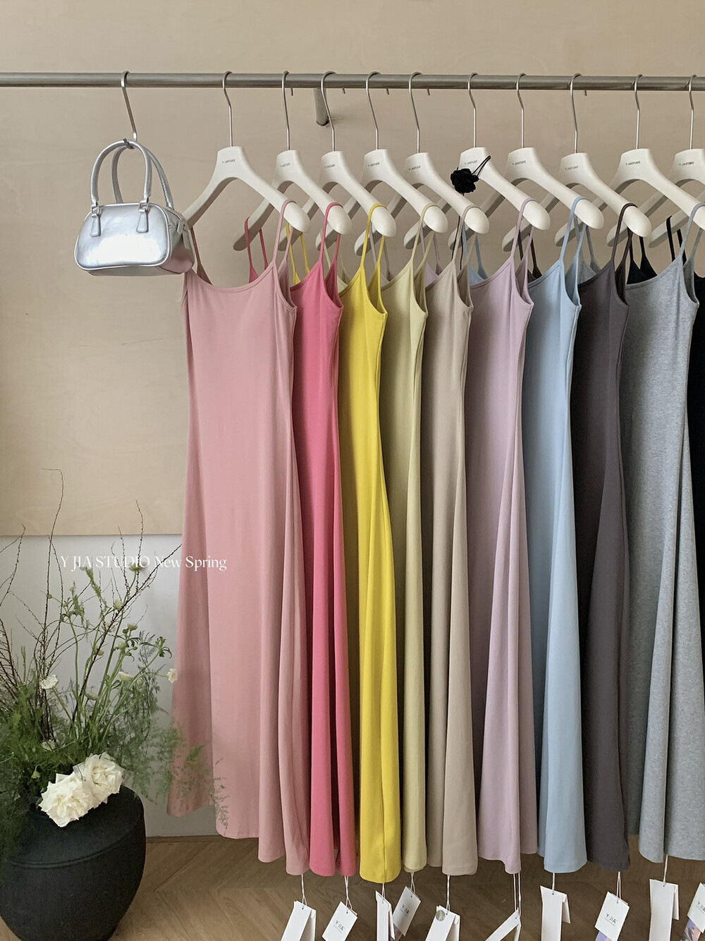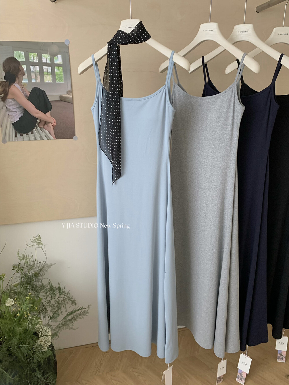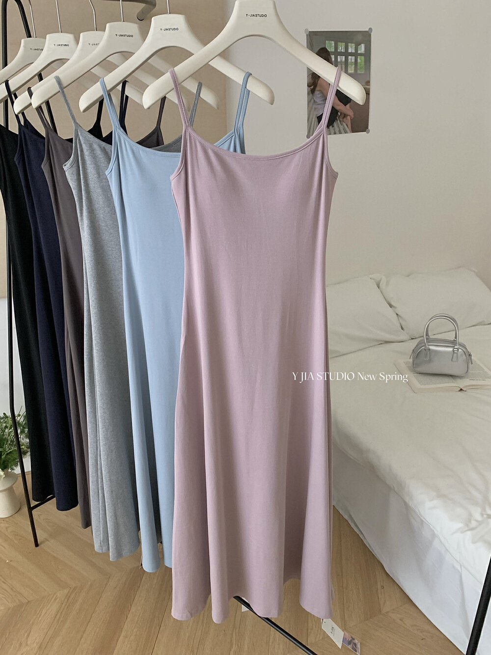 Y.JIA Iga Spice Girls, 가슴 패드 슬림 핏 슬림 핏 올 매치 슬링 원피스 여자 봄과 여름베이스 원피스스토어 가기