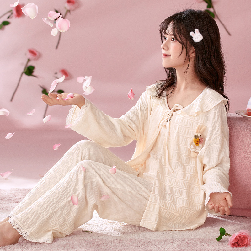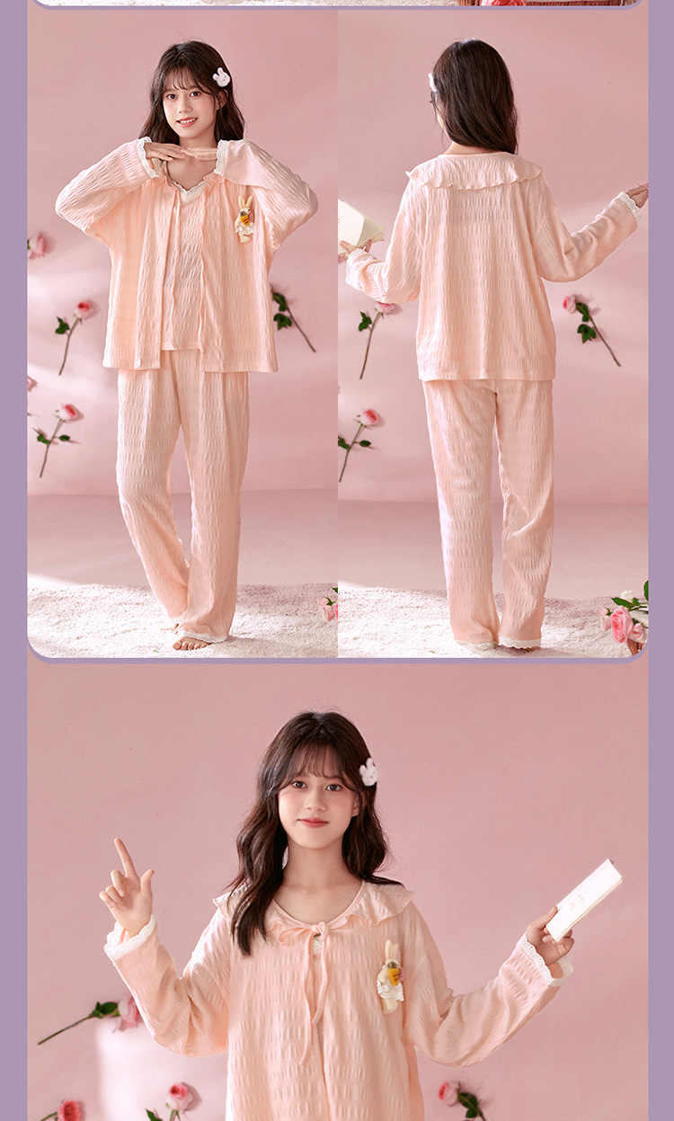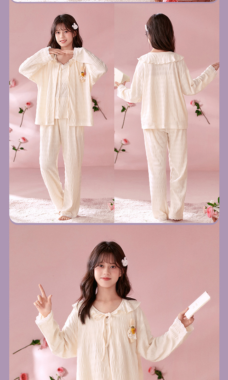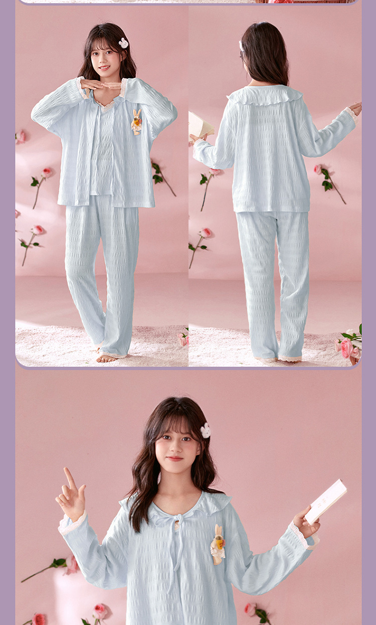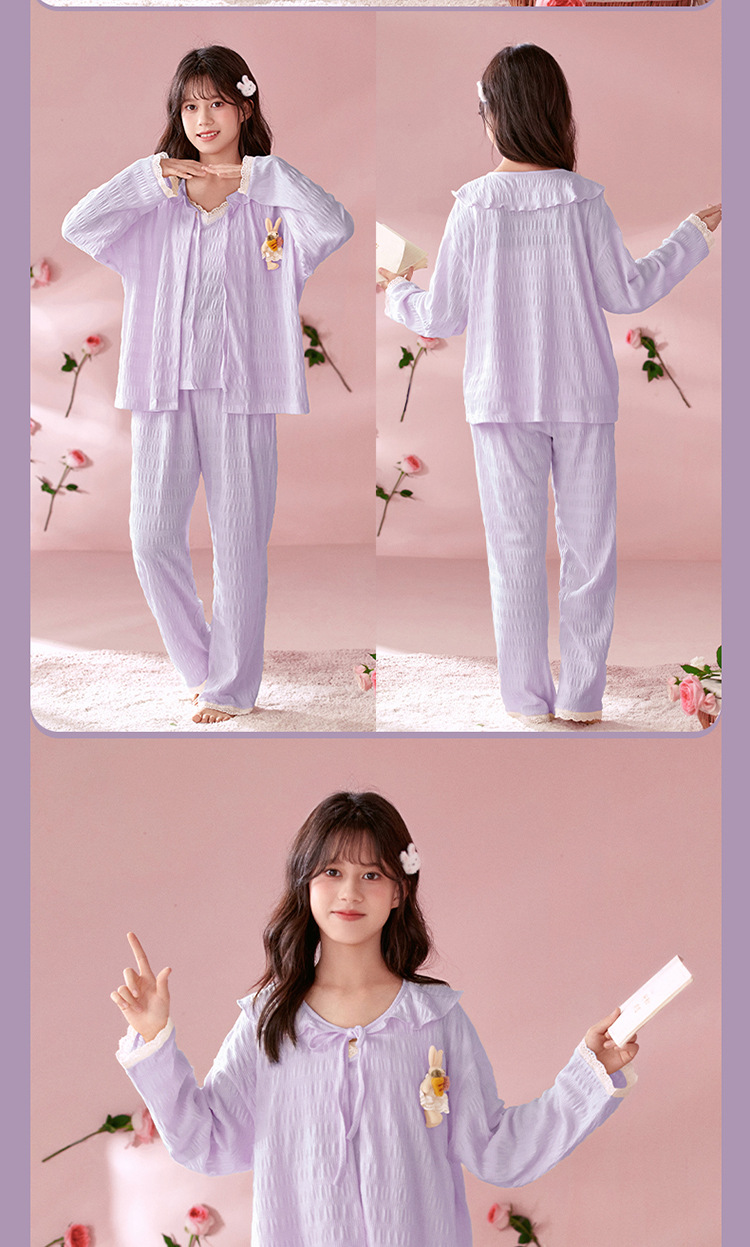 소녀 잠옷 봄과 가을 어린이 면 긴팔 궁전 공주 스타일 3 피스 세트 새로운 스타일 빅 보이 걸스 홈 옷스토어 가기