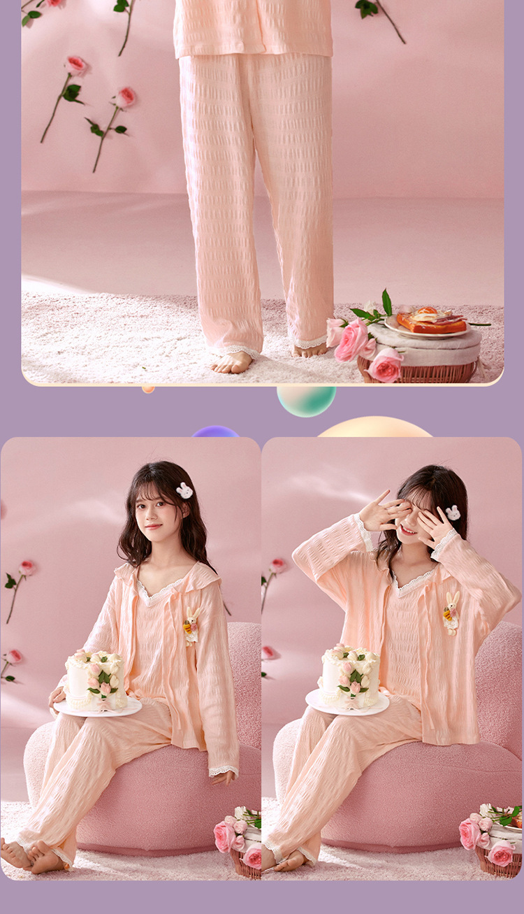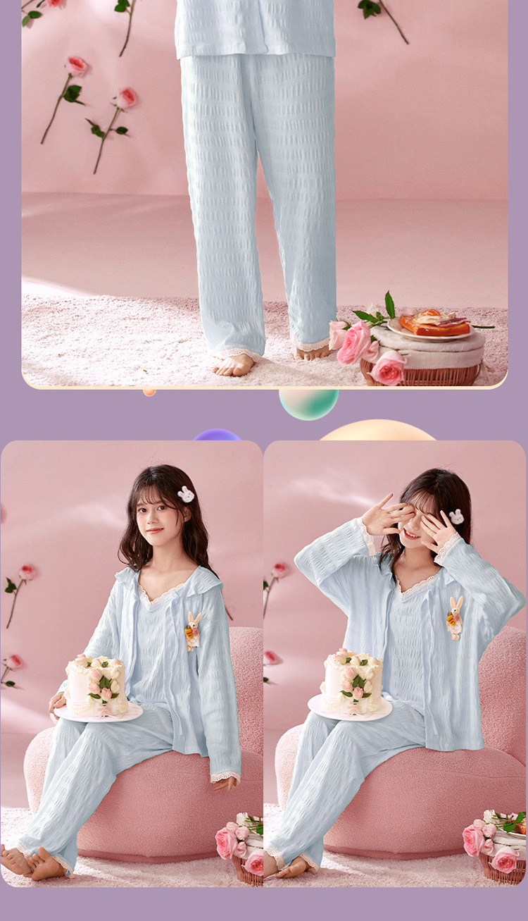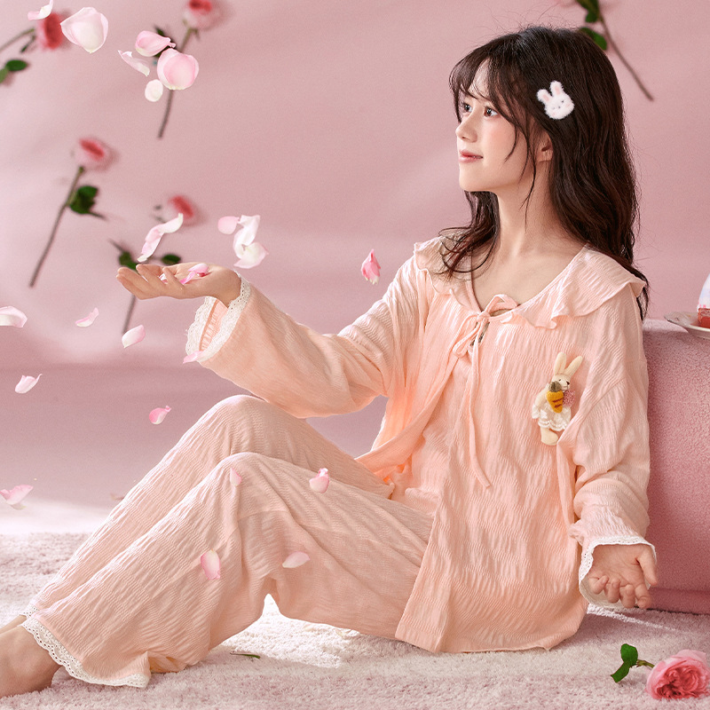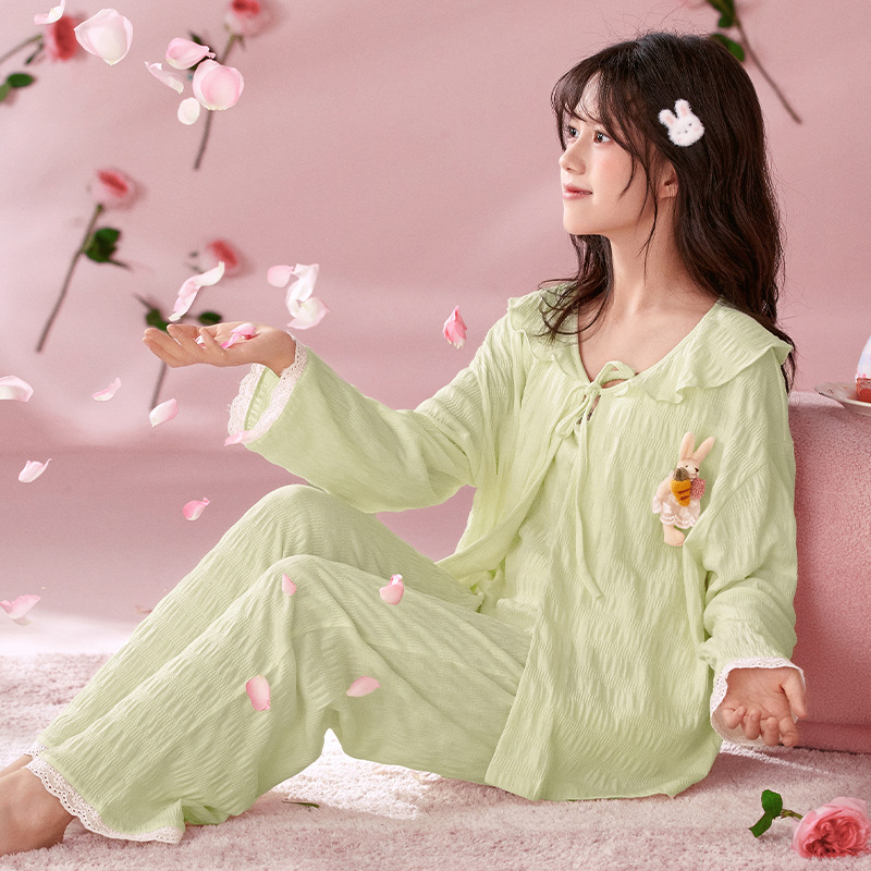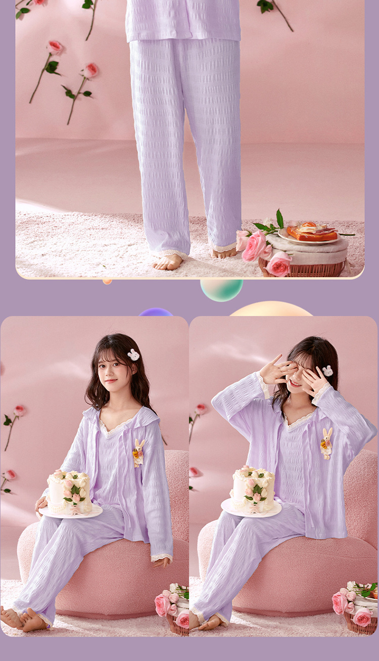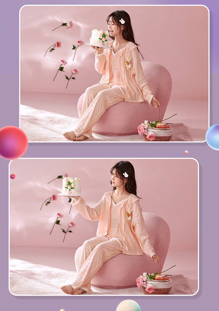 소녀 잠옷 봄과 가을 어린이 면 긴팔 궁전 공주 스타일 3 피스 세트 새로운 스타일 빅 보이 걸스 홈 옷스토어 가기