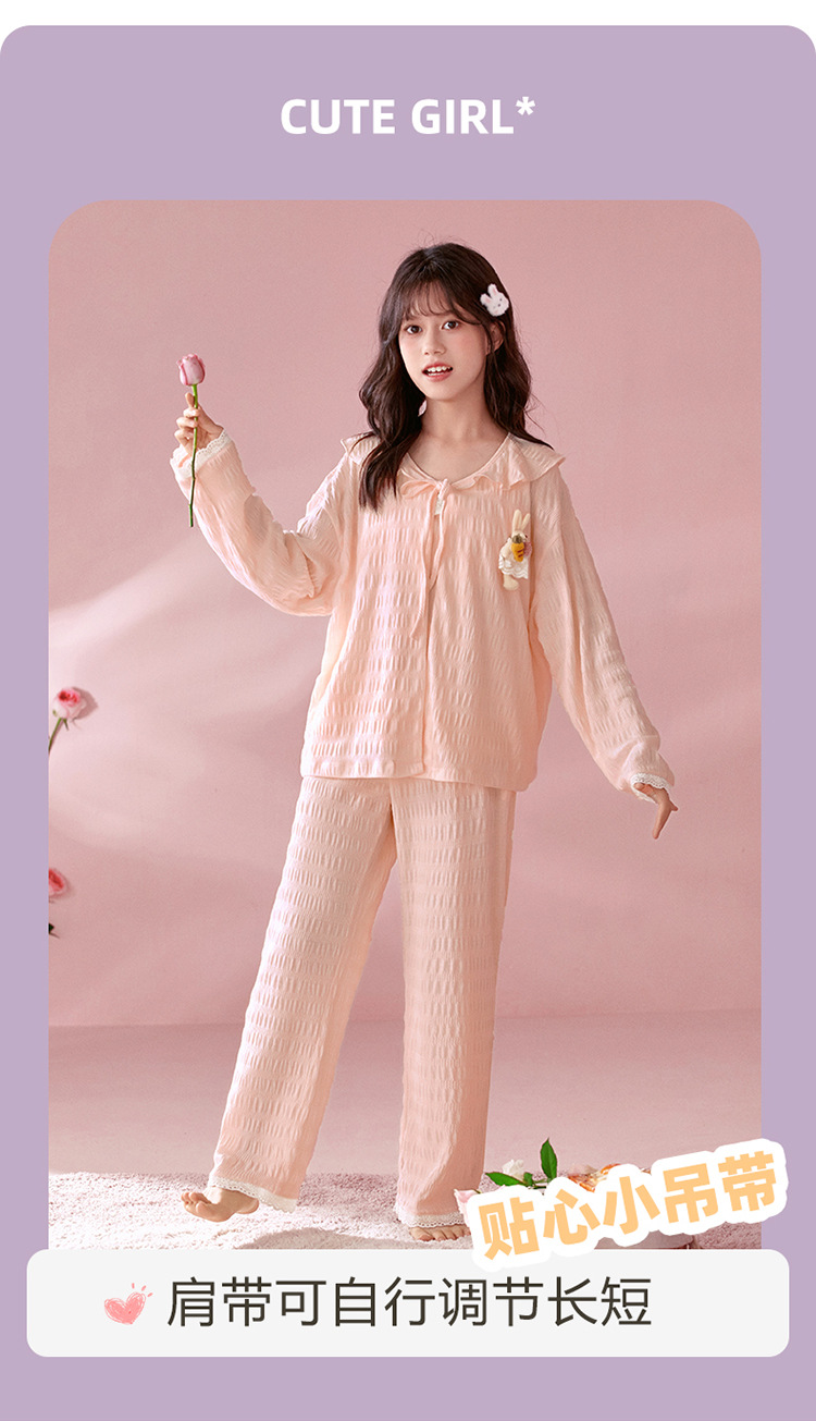 소녀 잠옷 봄과 가을 어린이 면 긴팔 궁전 공주 스타일 3 피스 세트 새로운 스타일 빅 보이 걸스 홈 옷