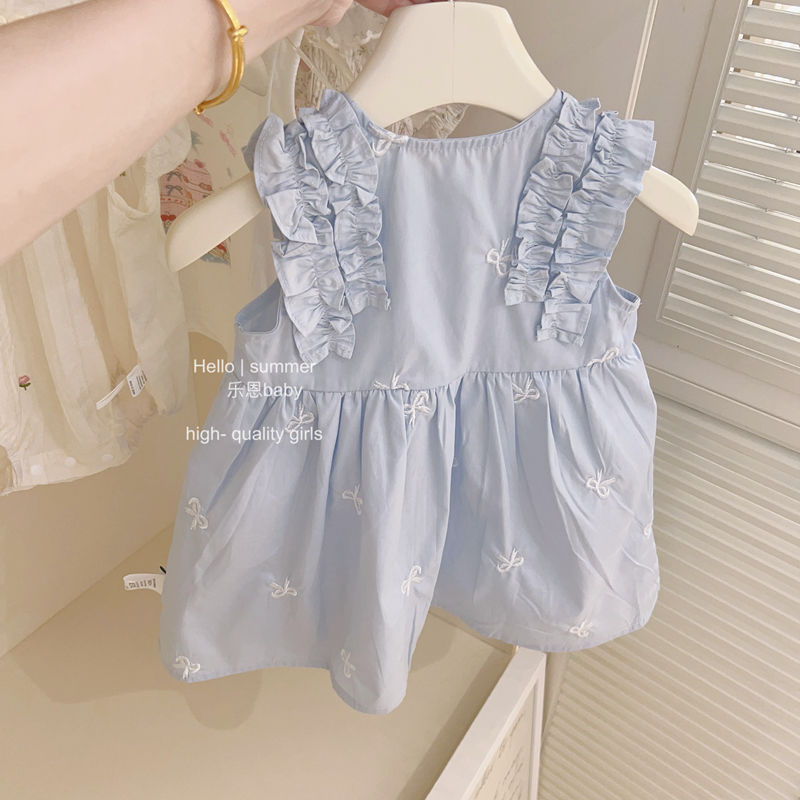여아 드레스 2025 여름 러플 프린세스 드레스 리본 어린이 신상 드레스 패션 아동복스토어 가기