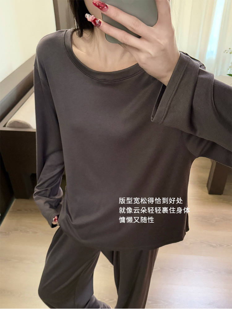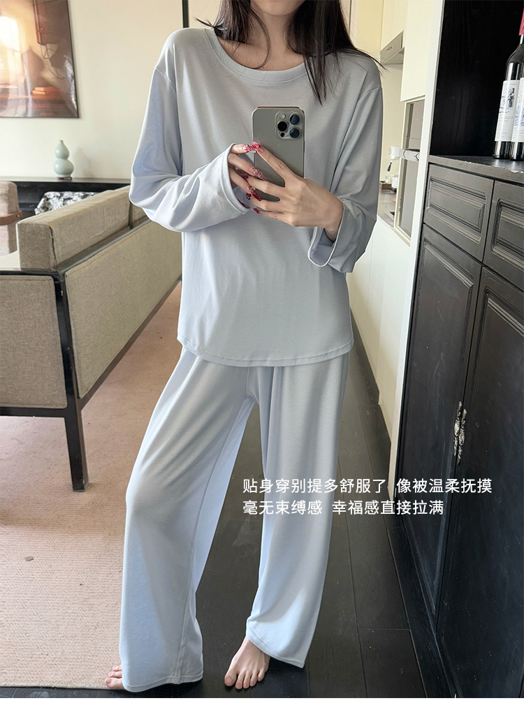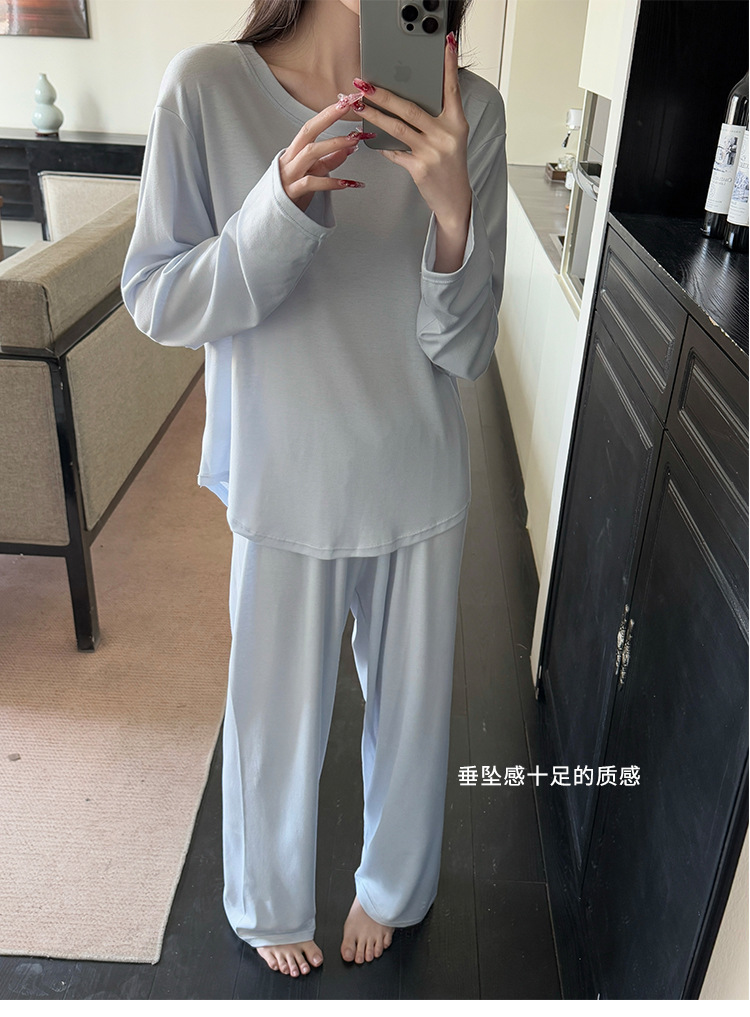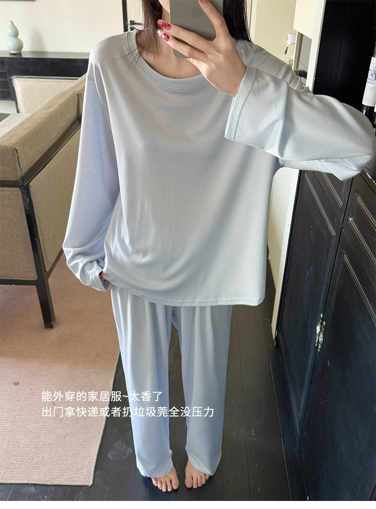 송페이 2025 새로운 잠옷 여성 피부 친화적 인 부드러운 투피스 세트 고급 긴팔 홈 의류 세트스토어 가기