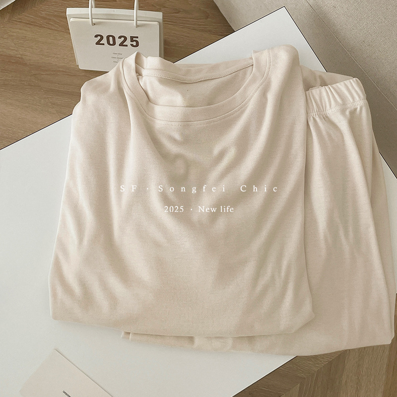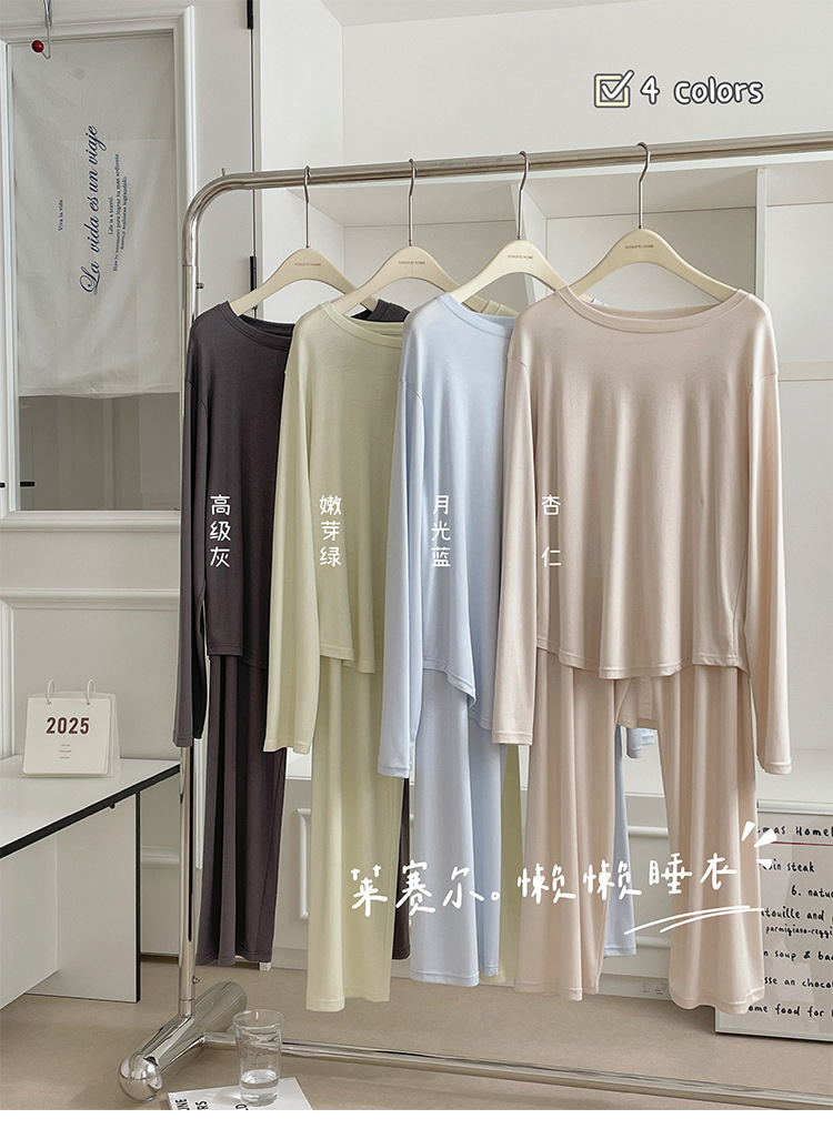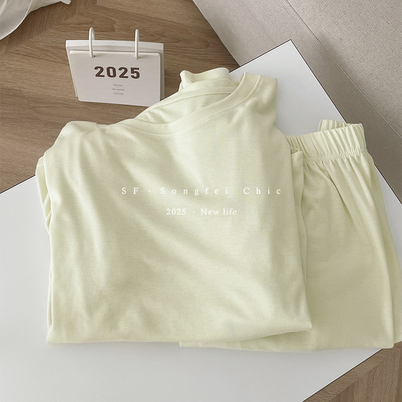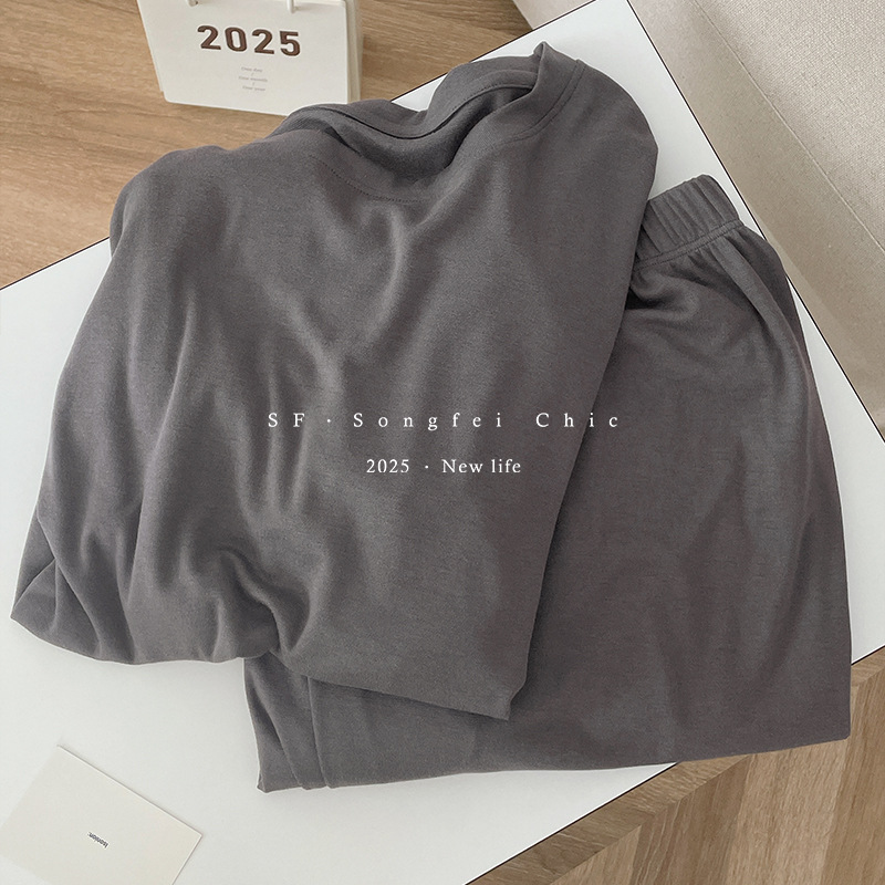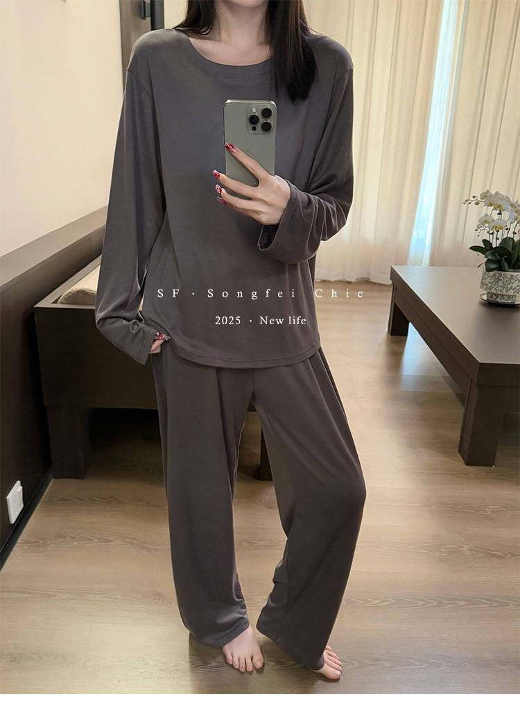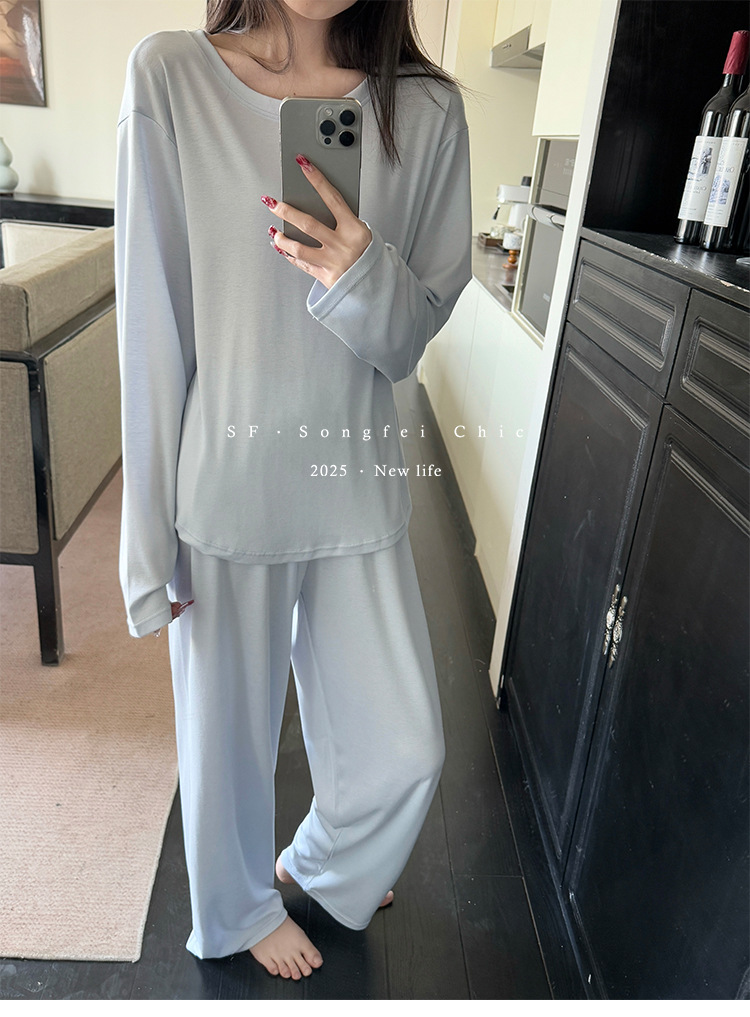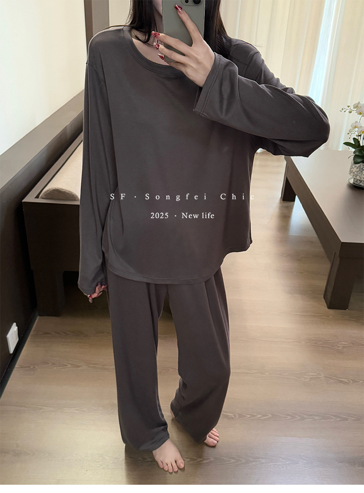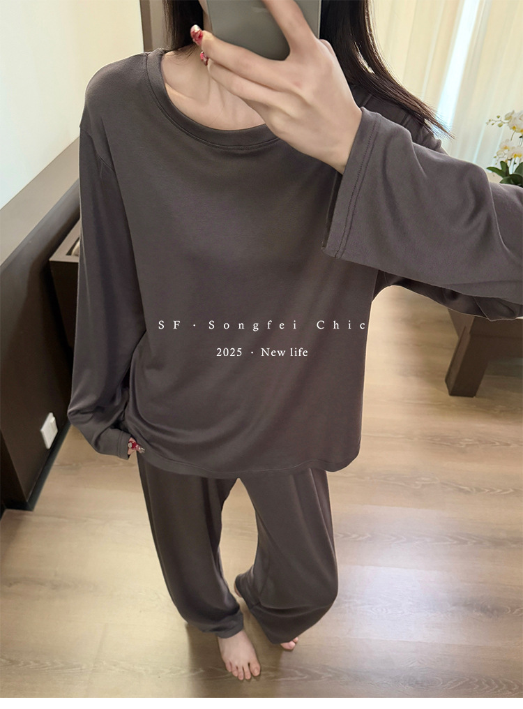 송페이 2025 새로운 잠옷 여성 피부 친화적 인 부드러운 투피스 세트 고급 긴팔 홈 의류 세트