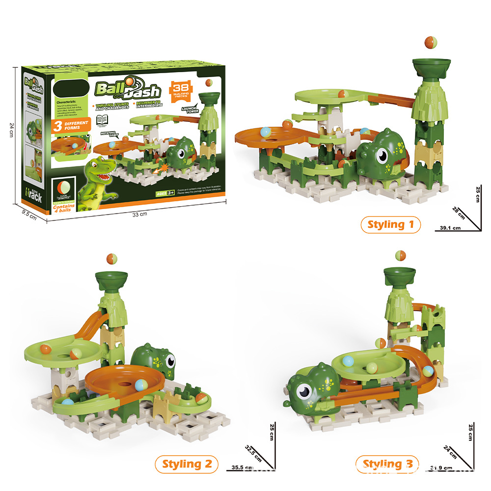 • 공룡 퍼즐 빌딩 블록 방출 공(38PCS, 3가지 모양으로 변경 가능, 상자에 구슬 4개 포함)