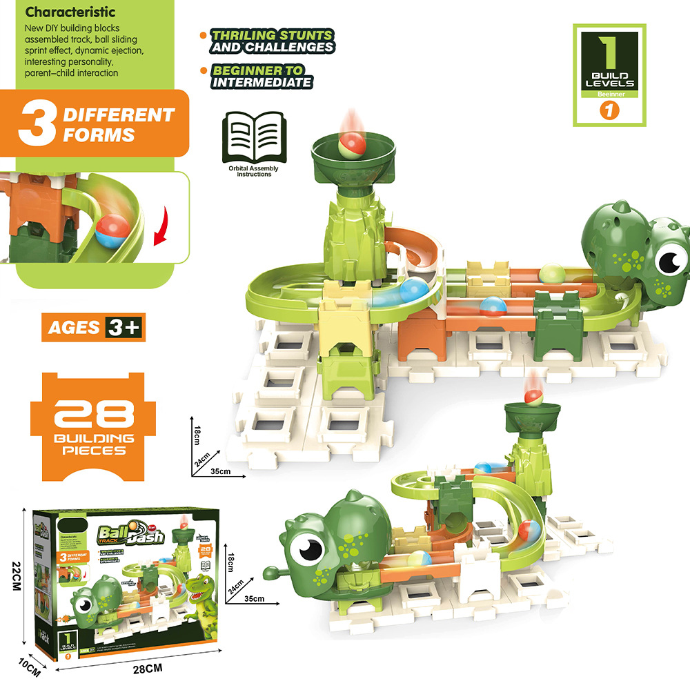 • 공룡 퍼즐 빌딩 블록 방출 공(28PCS, 3가지 모양으로 변경 가능, 상자에 구슬 4개 포함)