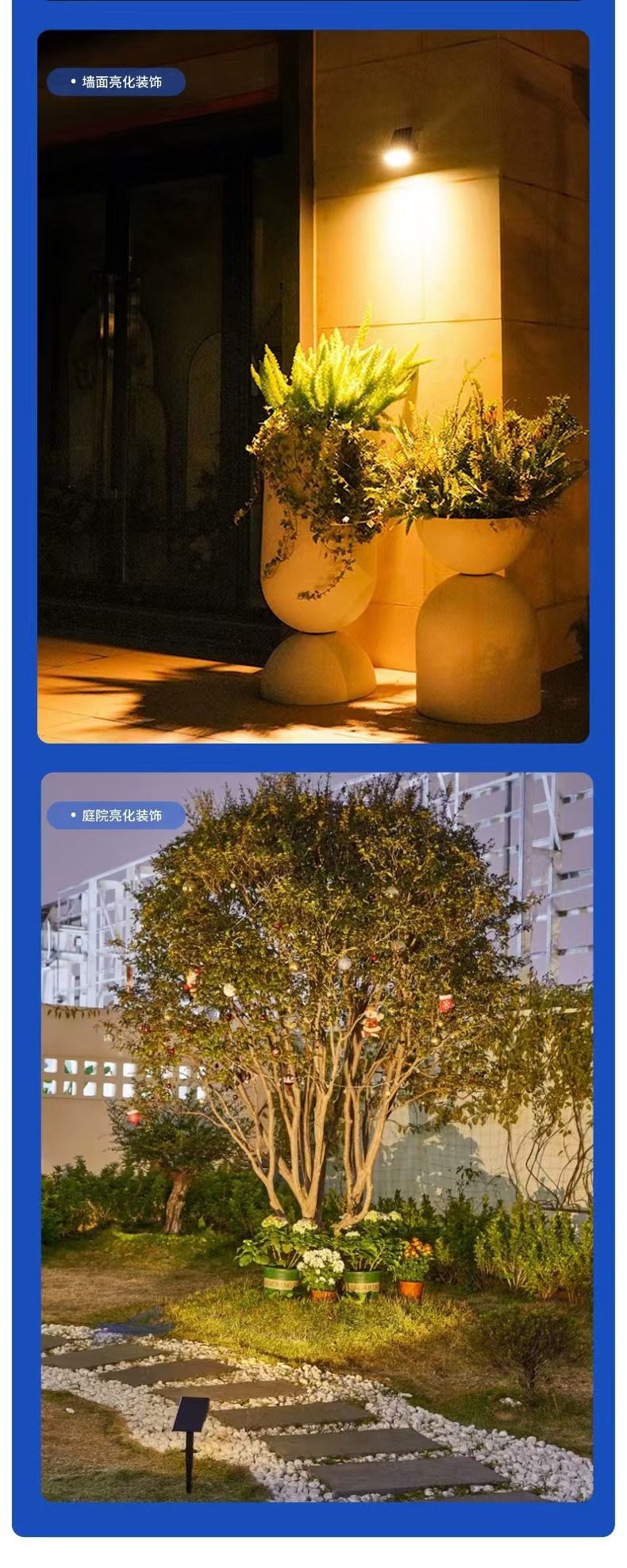 • 포커싱 버블 컬럼(따뜻한 빛) 태양광 스포트라이트, 접지 삽입 + 벽걸이 겸용