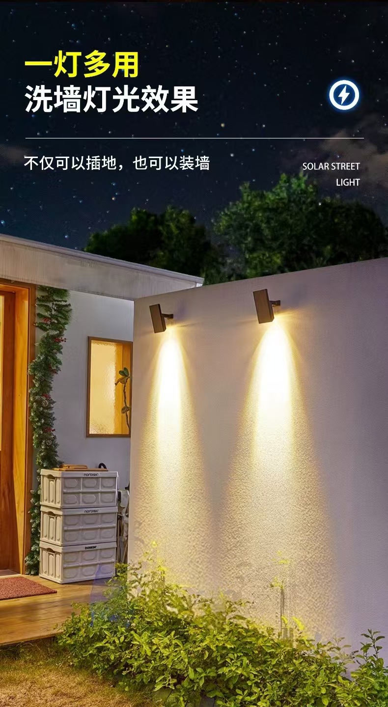 • 포커싱(따뜻한 빛) 태양광 스포트라이트, 접지 삽입 + 벽걸이 겸용
