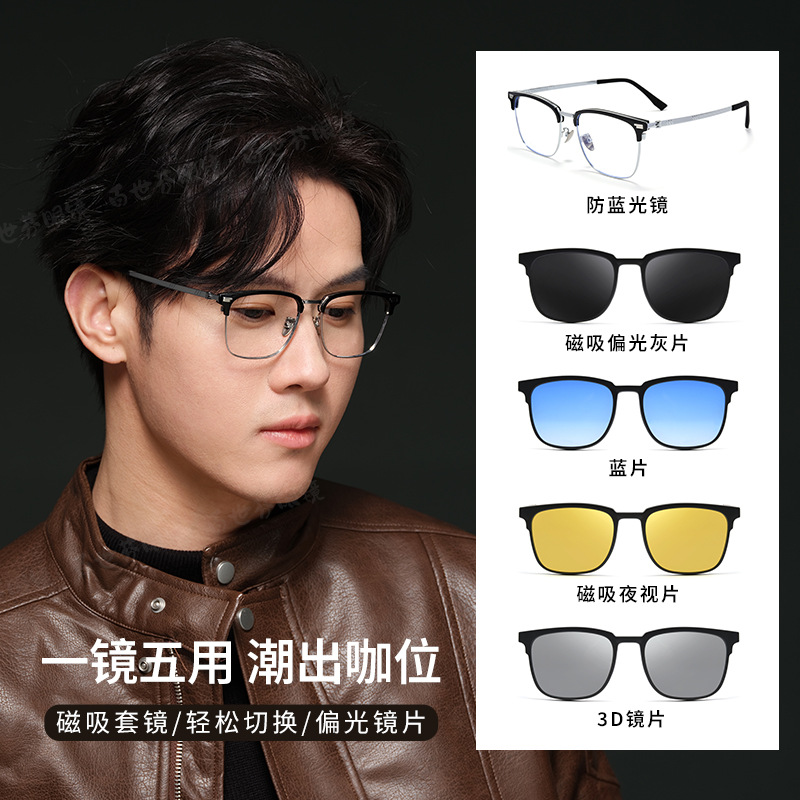 Baishifen 5 대 1 자기 안경 편광 선글라스 근시 안경 프레임 운전 선글라스 안티 UV 안경스토어 가기