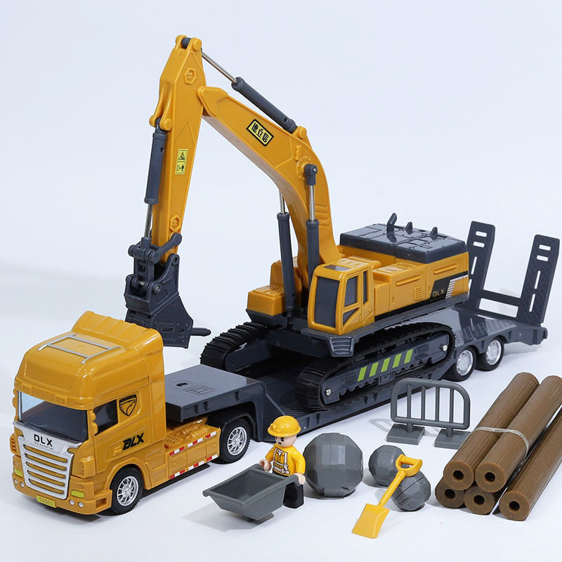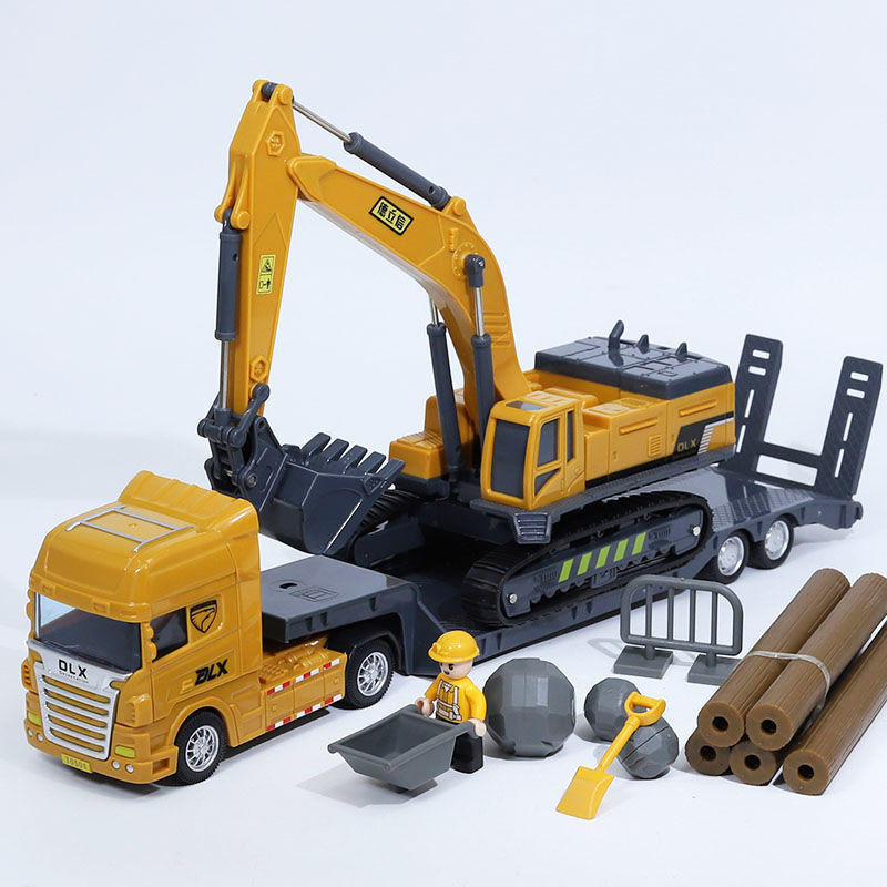 관성 트레일러 장난감 자동차 어린이 시뮬레이션 엔지니어링 자동차 대형 굴삭기 모델 굴삭기 트레일러 운송 차량스토어 가기
