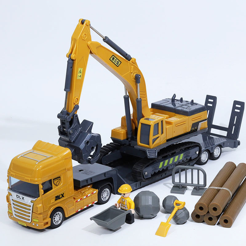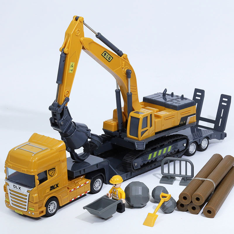 관성 트레일러 장난감 자동차 어린이 시뮬레이션 엔지니어링 자동차 대형 굴삭기 모델 굴삭기 트레일러 운송 차량