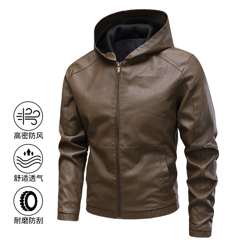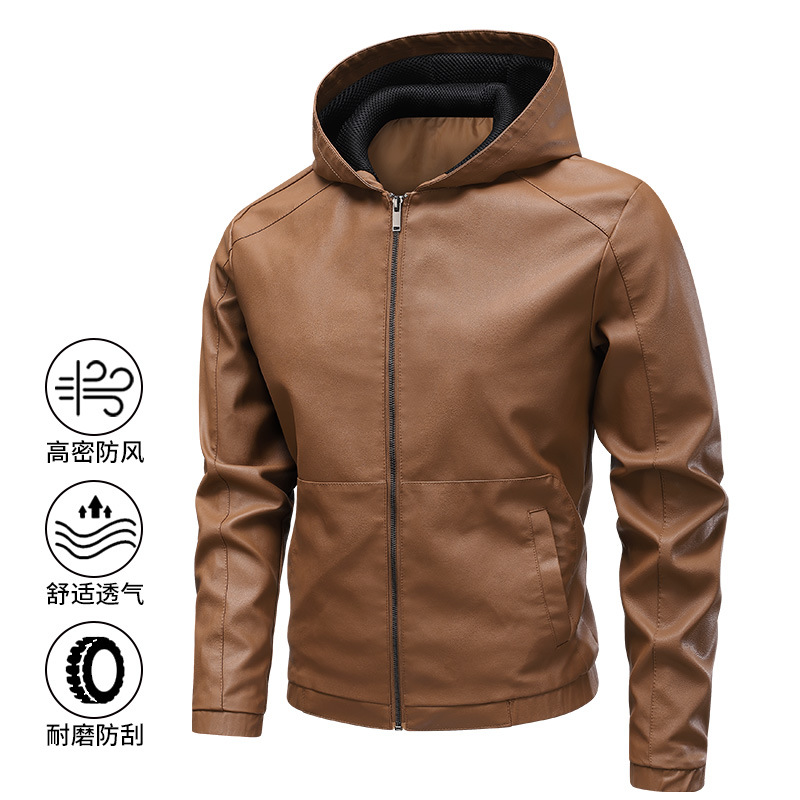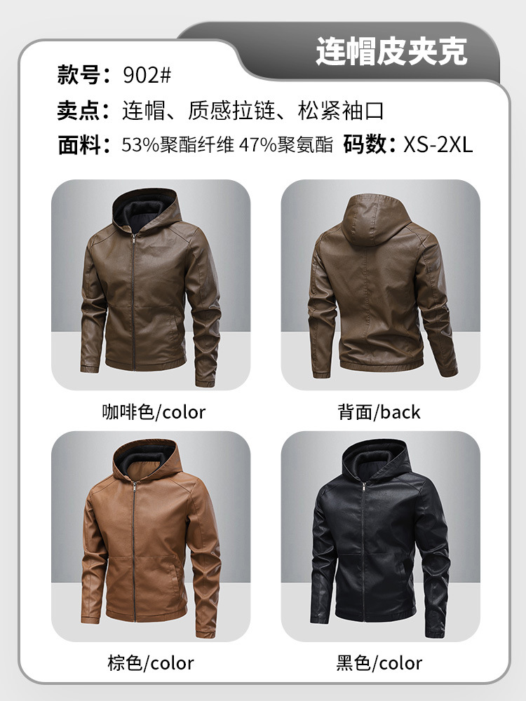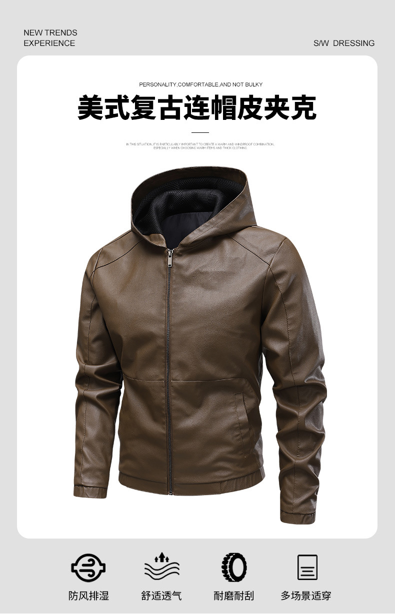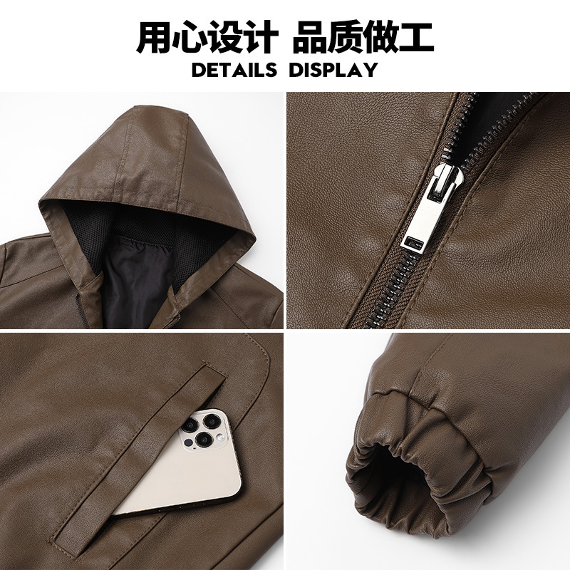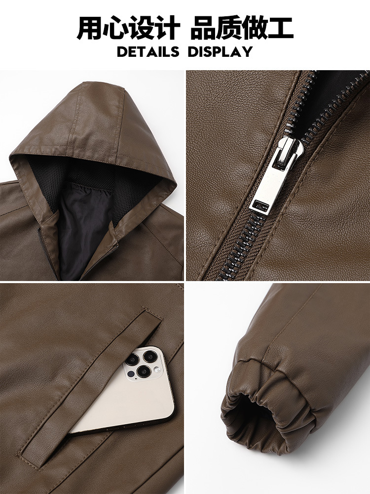새로운 도착 2025 봄과 가을 새로운 미국 스타일 레트로 후드 PU 가죽 자동차 세트 남성 청소년 캐주얼 리퍼 잘 생긴 가죽