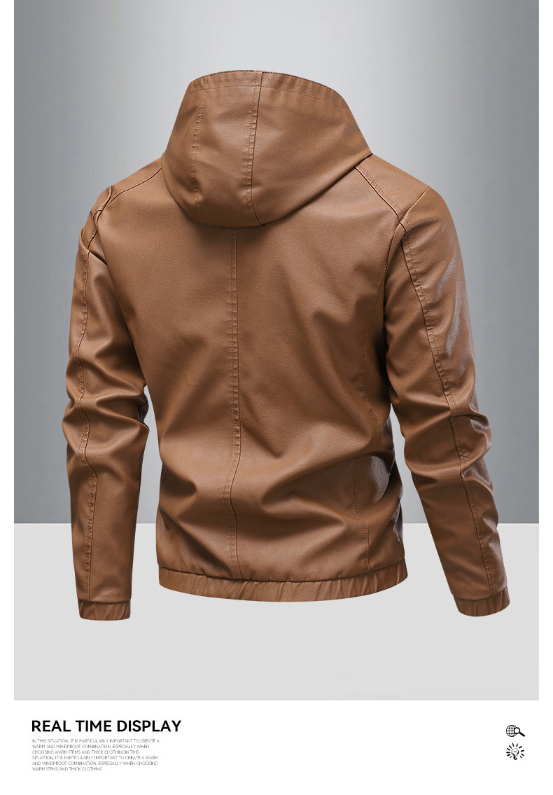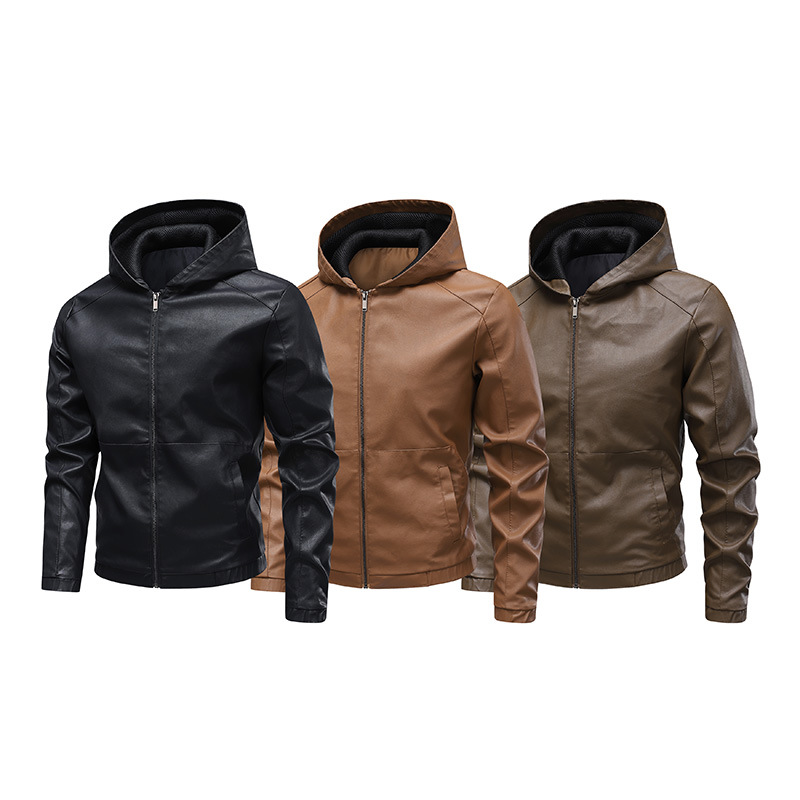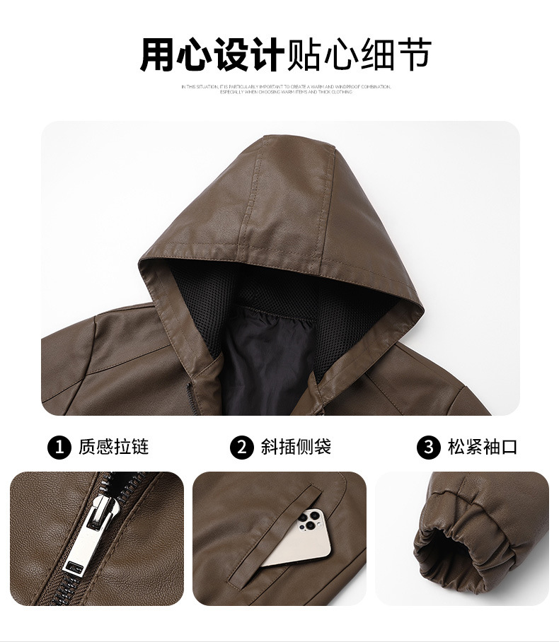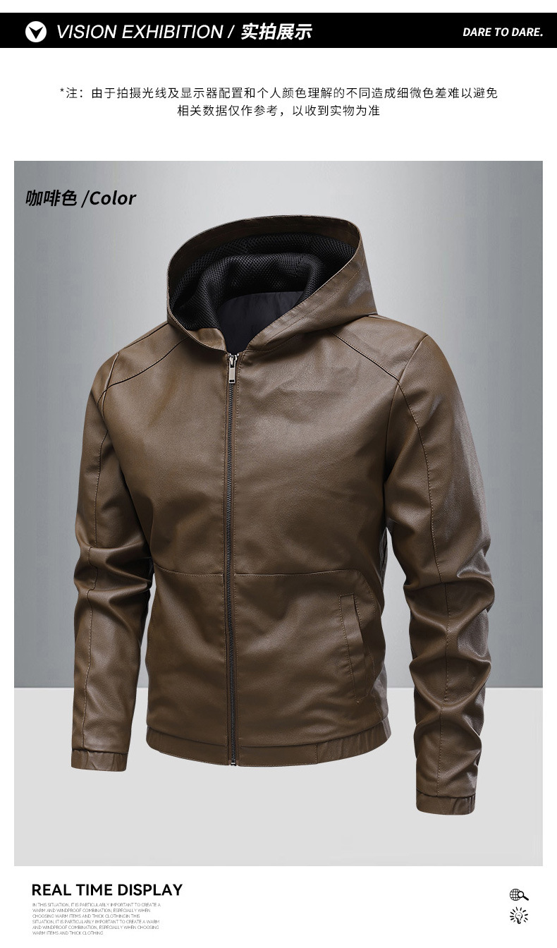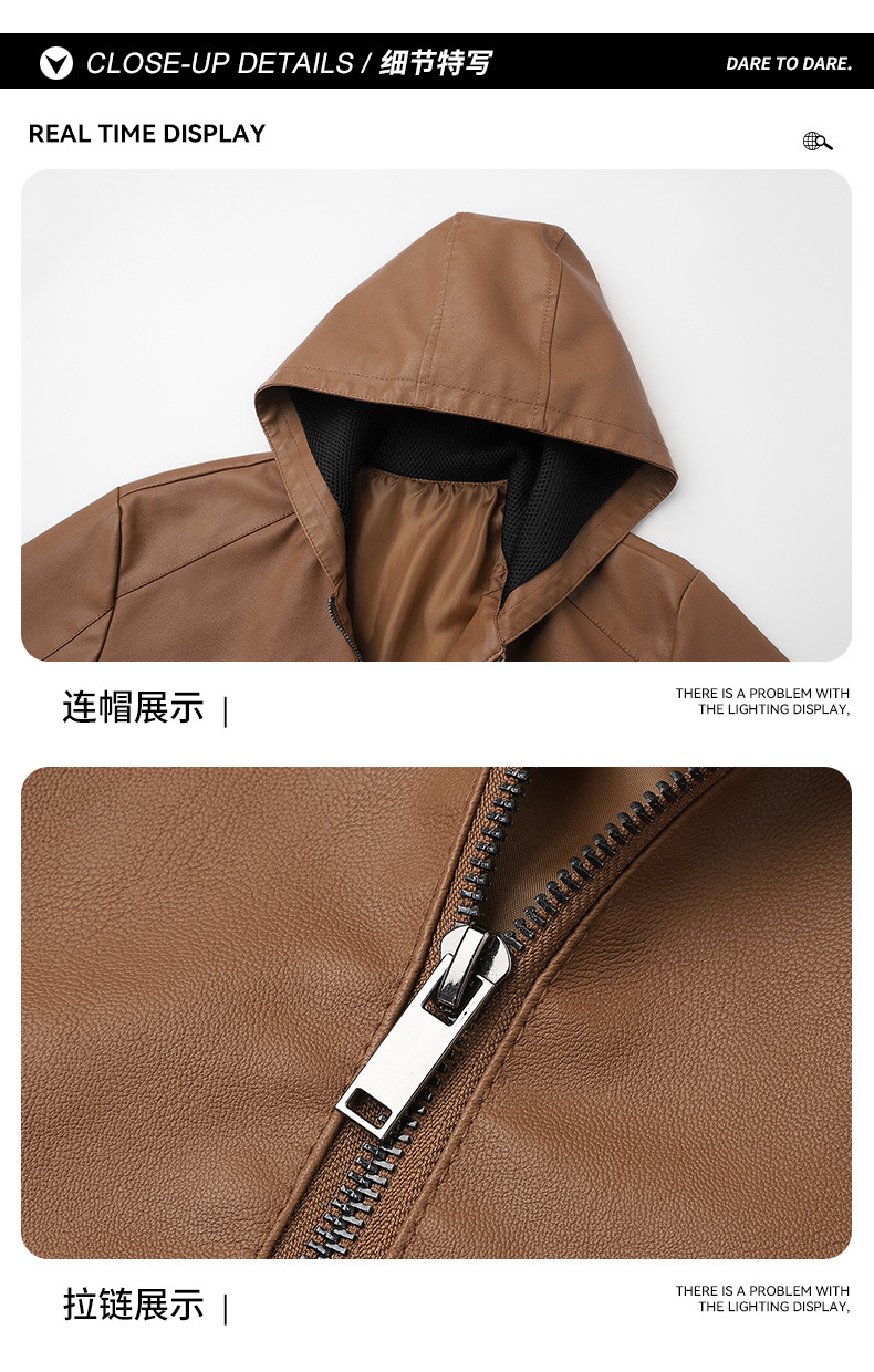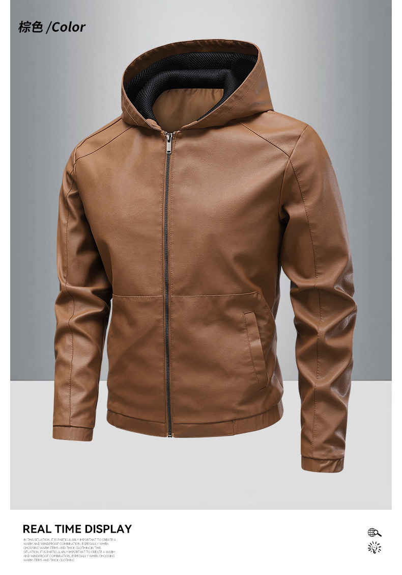 새로운 도착 2025 봄과 가을 새로운 미국 스타일 레트로 후드 PU 가죽 자동차 세트 남성 청소년 캐주얼 리퍼 잘 생긴 가죽