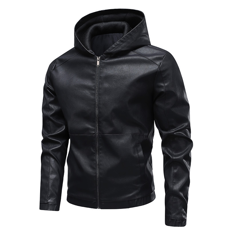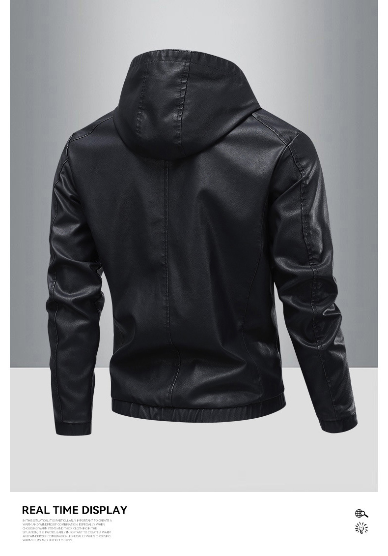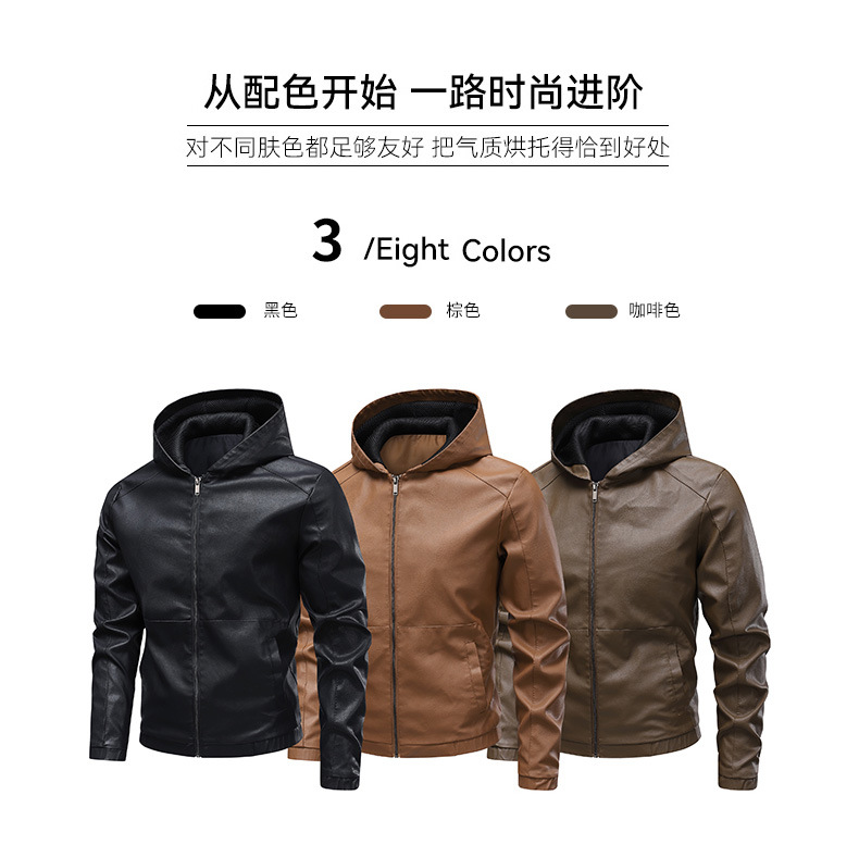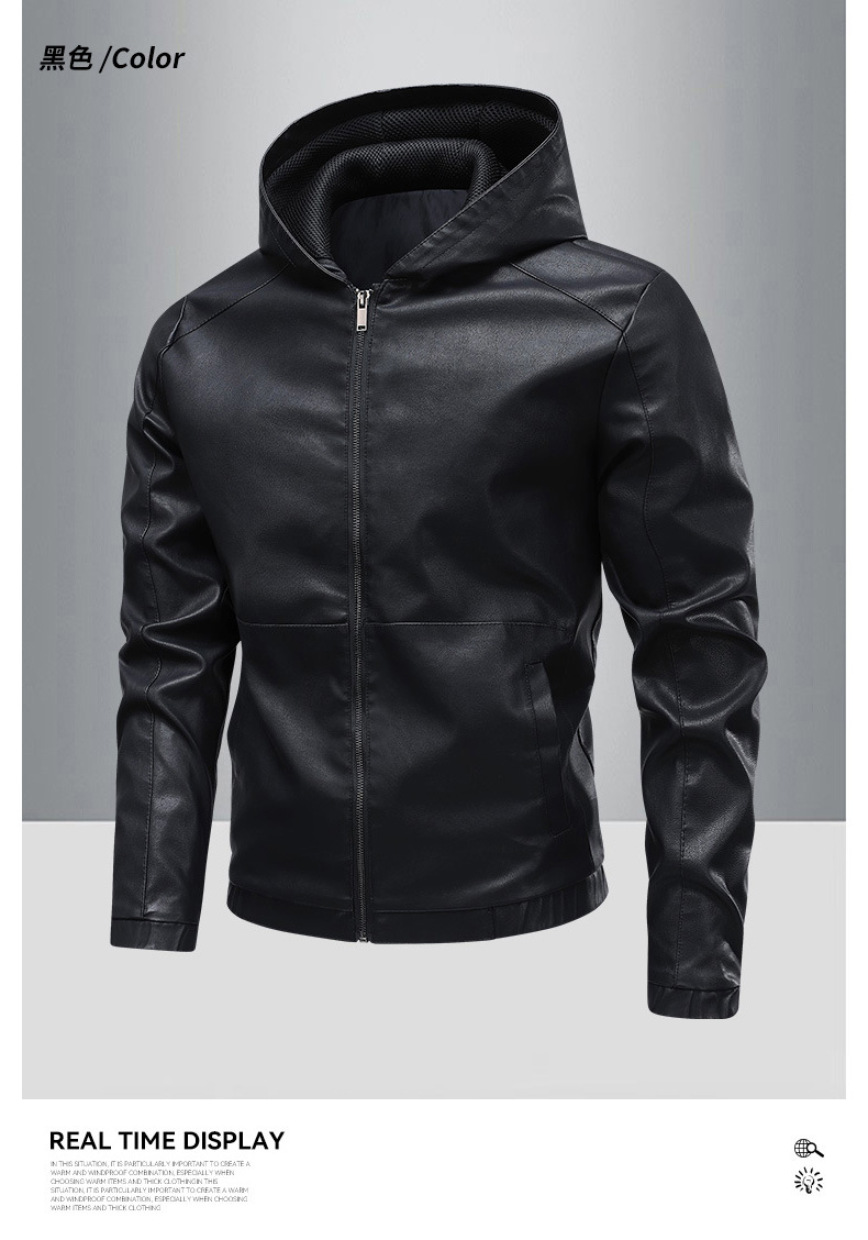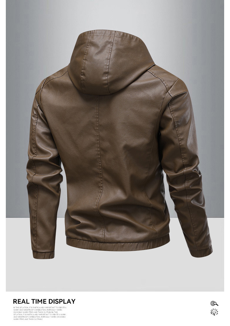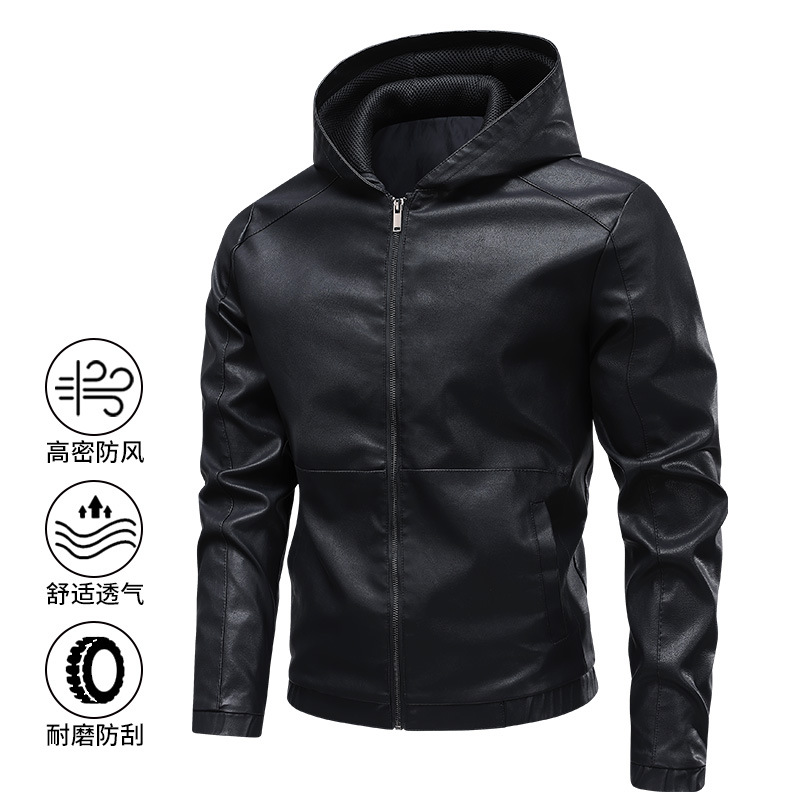새로운 도착 2025 봄과 가을 새로운 미국 스타일 레트로 후드 PU 가죽 자동차 세트 남성 청소년 캐주얼 리퍼 잘 생긴 가죽