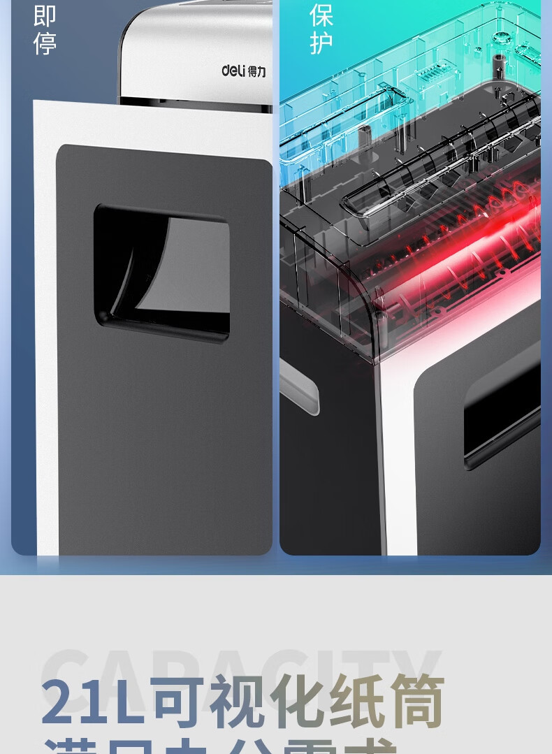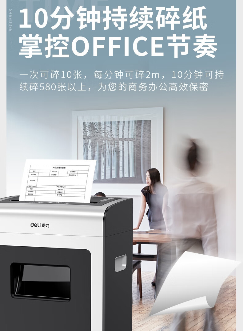 델리 9915 종이 분쇄기 독일 표준 5 등급 21L 대용량 연속 종이 분쇄 10 분 단일 종이 분쇄 10 장 도매스토어 가기