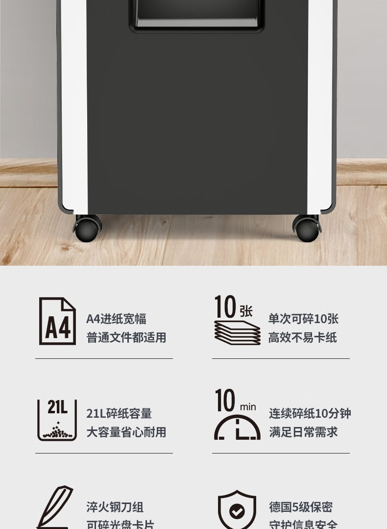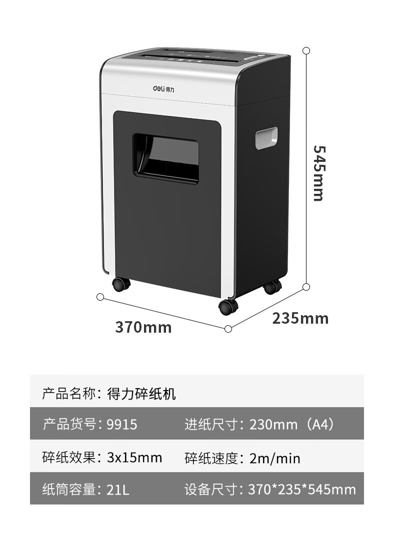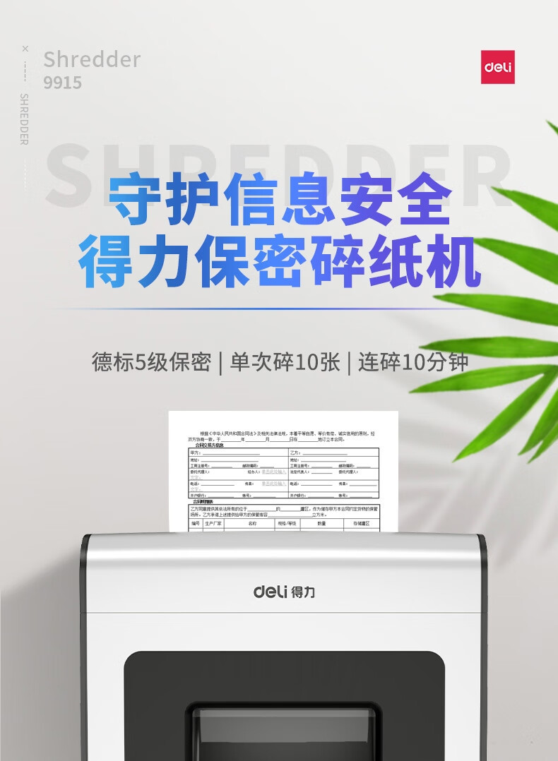 델리 9915 종이 분쇄기 독일 표준 5 등급 21L 대용량 연속 종이 분쇄 10 분 단일 종이 분쇄 10 장 도매