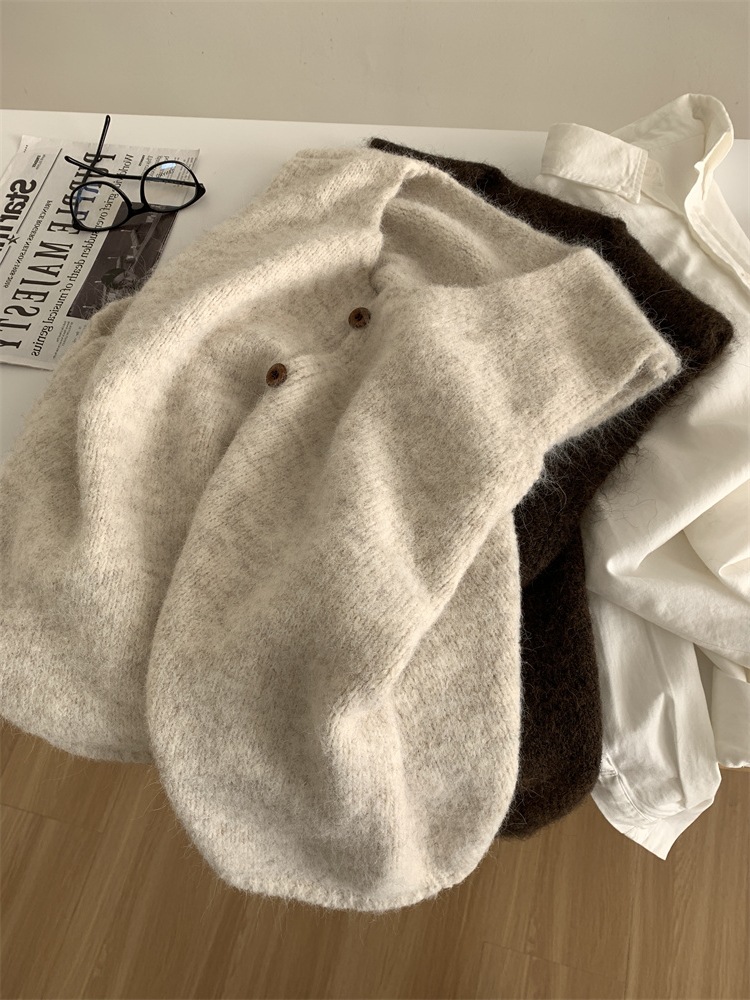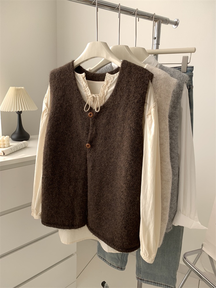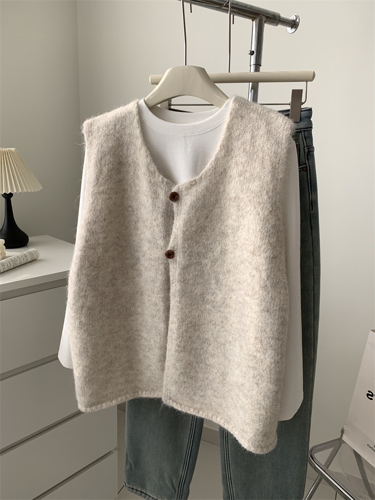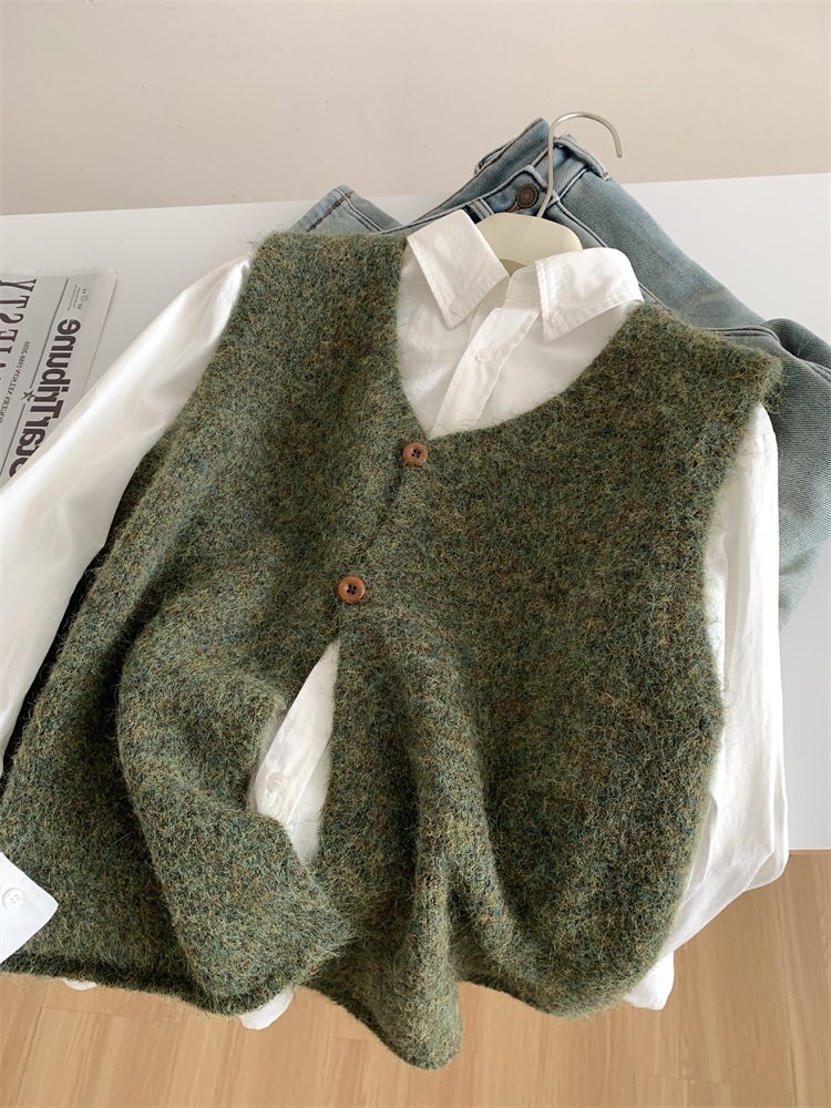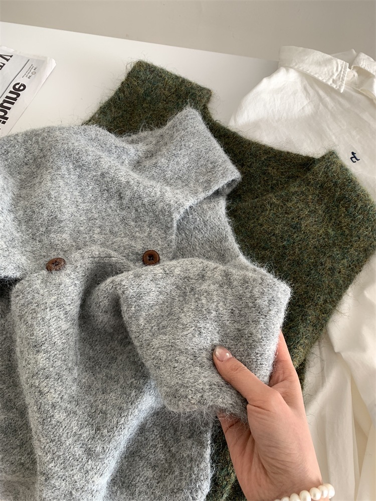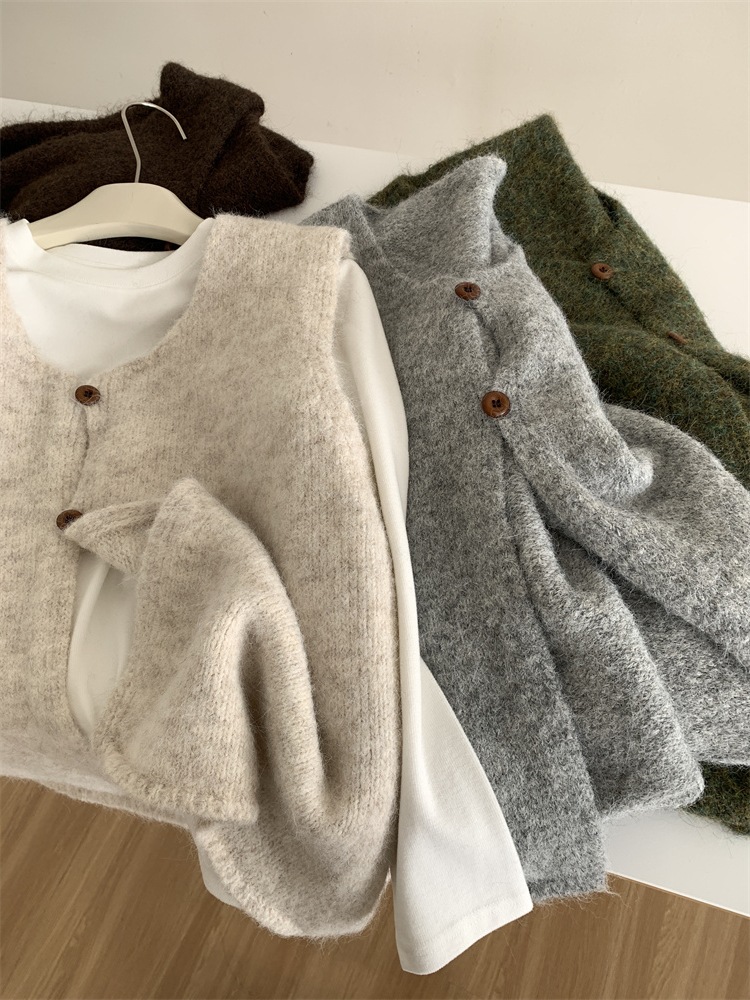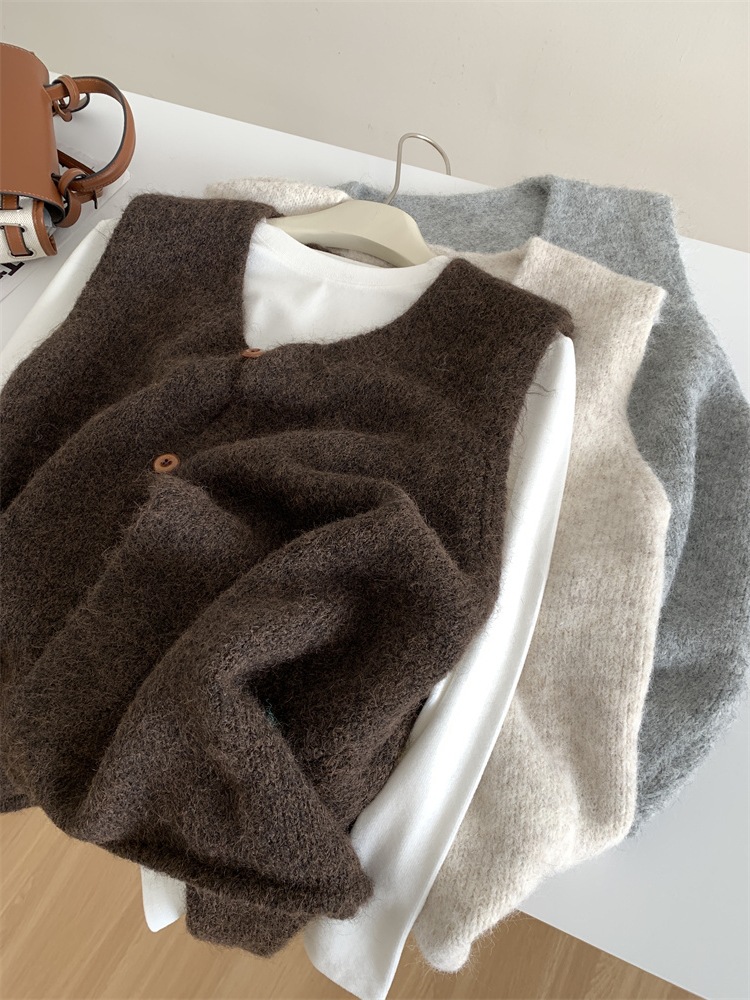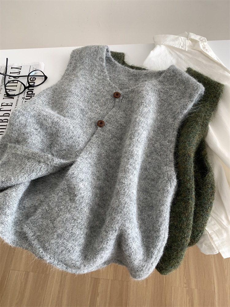 예술적 레트로 플러시 투버튼 양모 니트 조끼 여성 25 스프링 스택 민소매 스플릿 스웨터 조끼