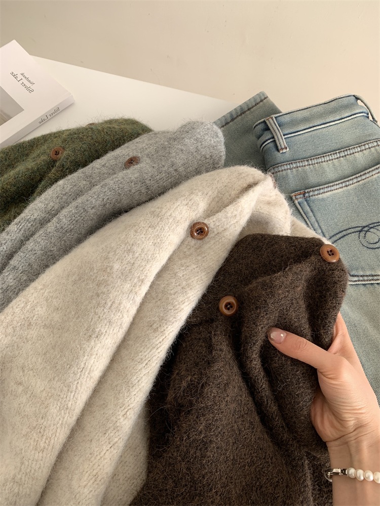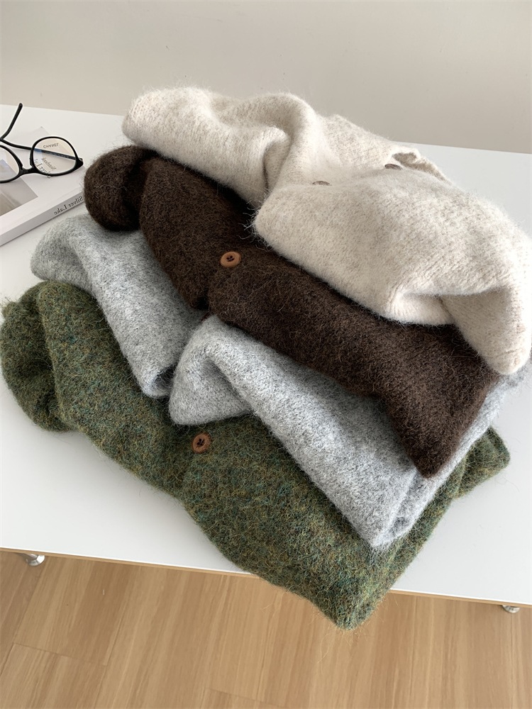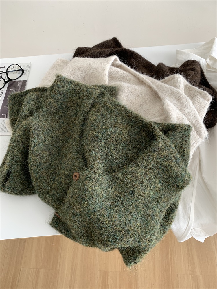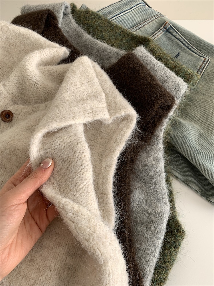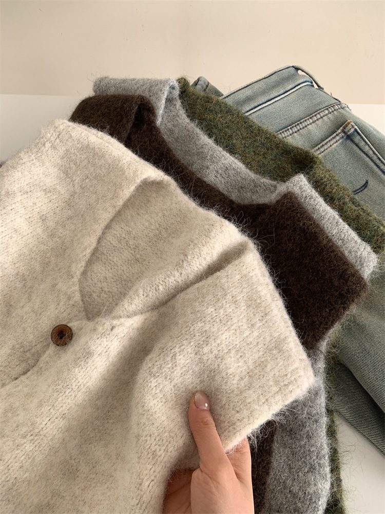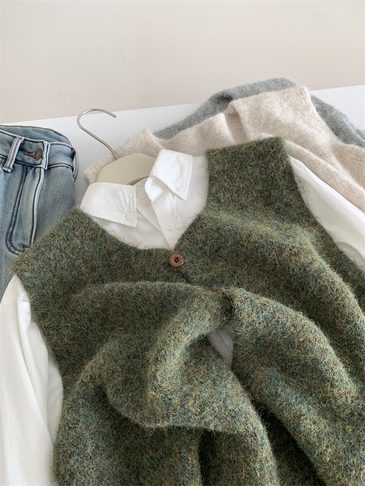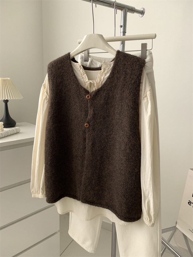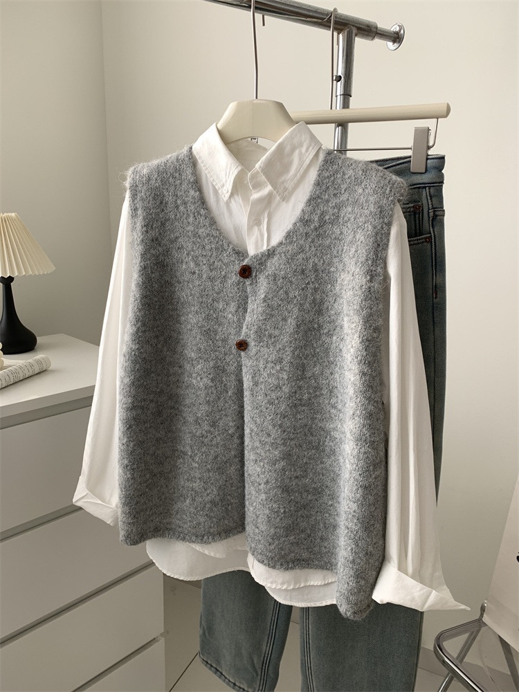 예술적 레트로 플러시 투버튼 양모 니트 조끼 여성 25 스프링 스택 민소매 스플릿 스웨터 조끼