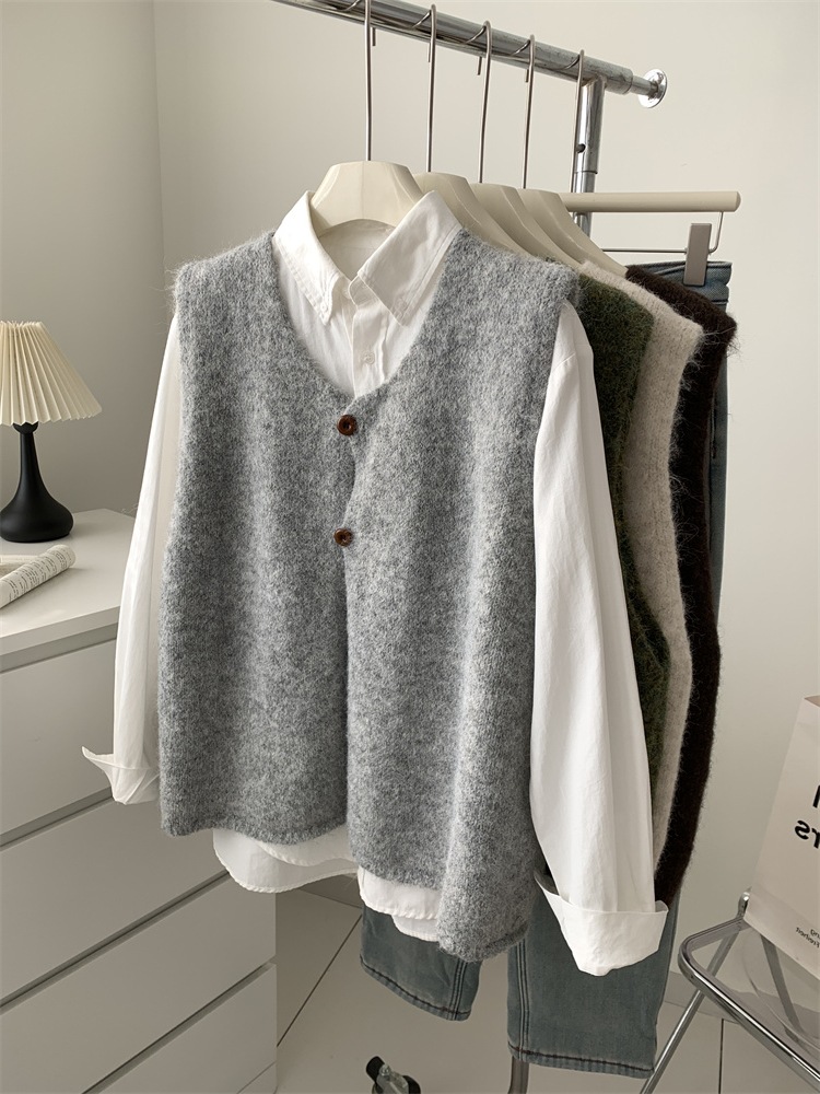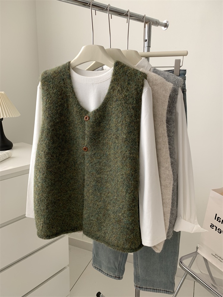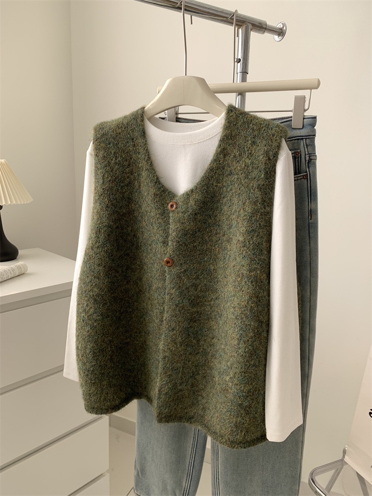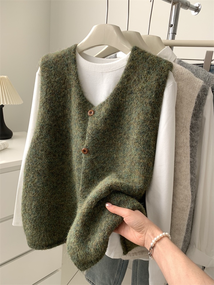 예술적 레트로 플러시 투버튼 양모 니트 조끼 여성 25 스프링 스택 민소매 스플릿 스웨터 조끼스토어 가기
