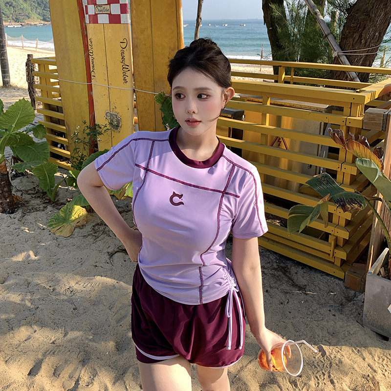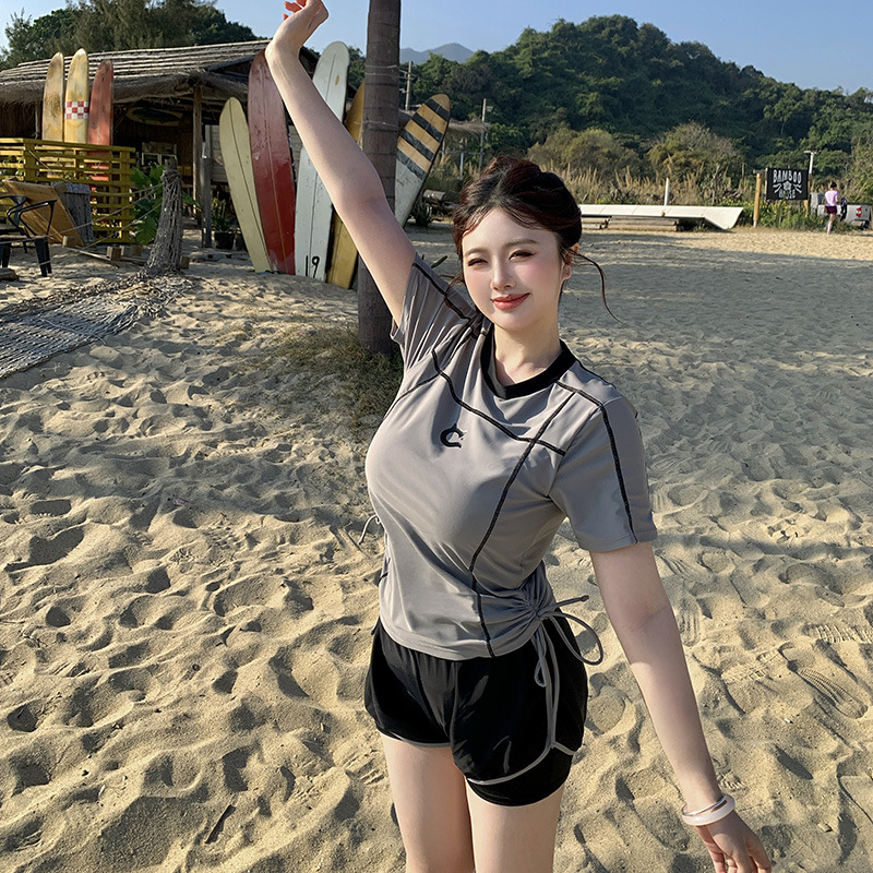 대비색상의 큰 사이즈 수영복, 뚱뚱한 여성을 위한 200파운드 분리형 수영복, 보수적인 온천용 배를 가리는 슬림한 반바지 스포츠 수영복스토어 가기