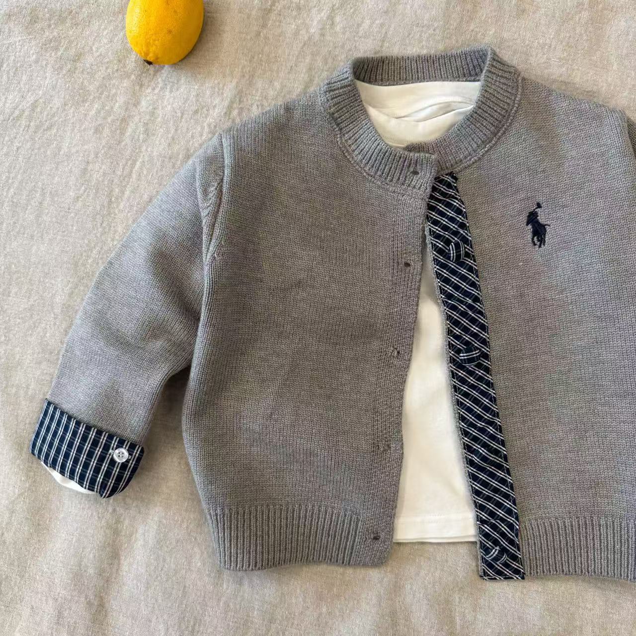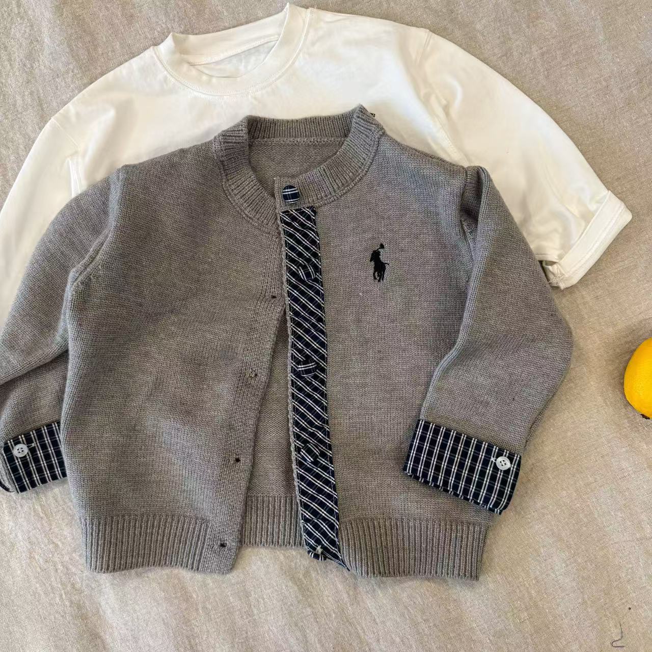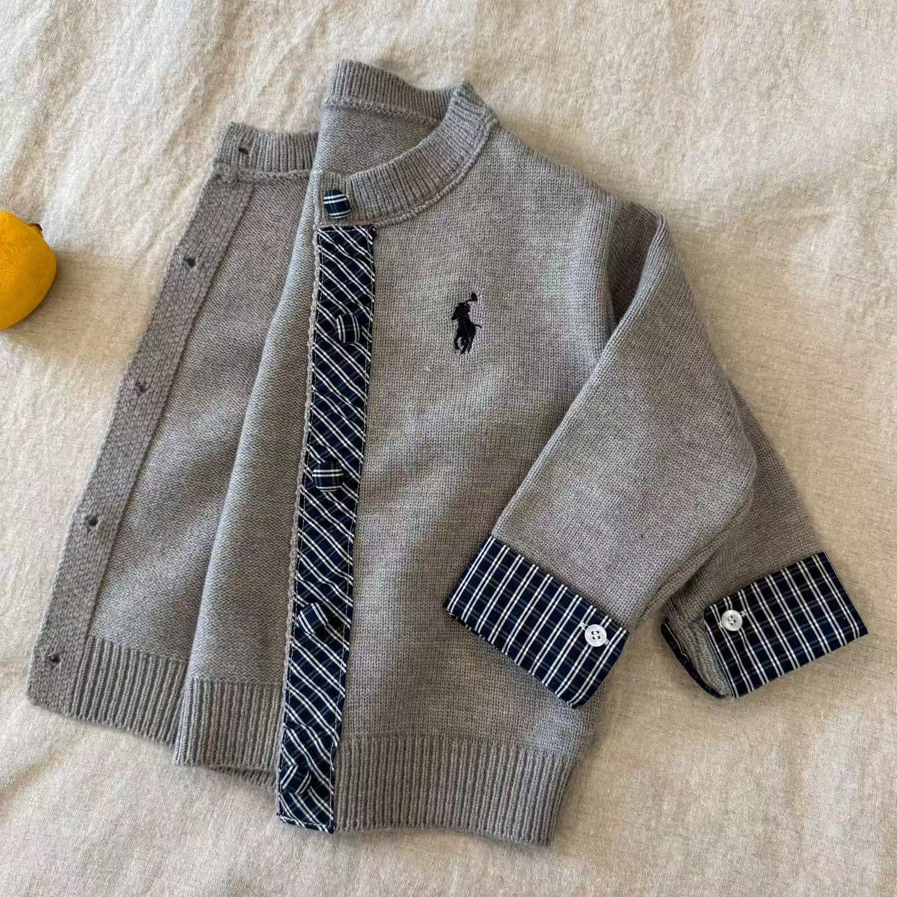 아동 스웨터 2025 가을 아동 의류 새로운 스타일 소년과 소녀 패션 대비 색상 자수 아기 니트 카디건 유행스토어 가기