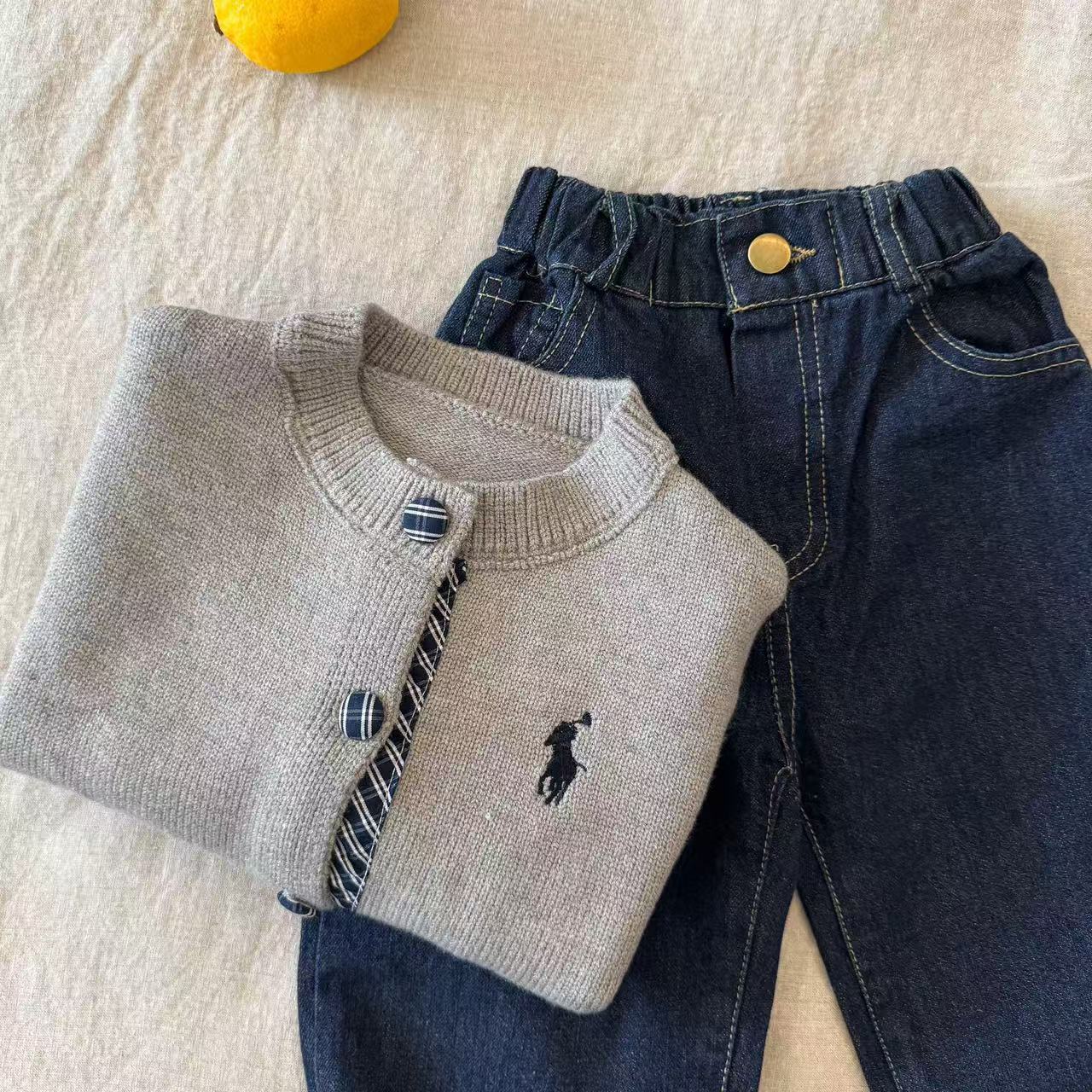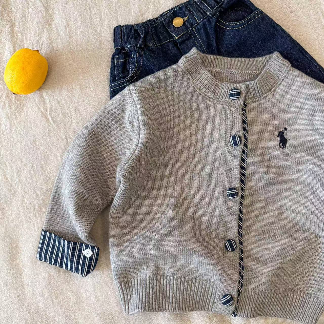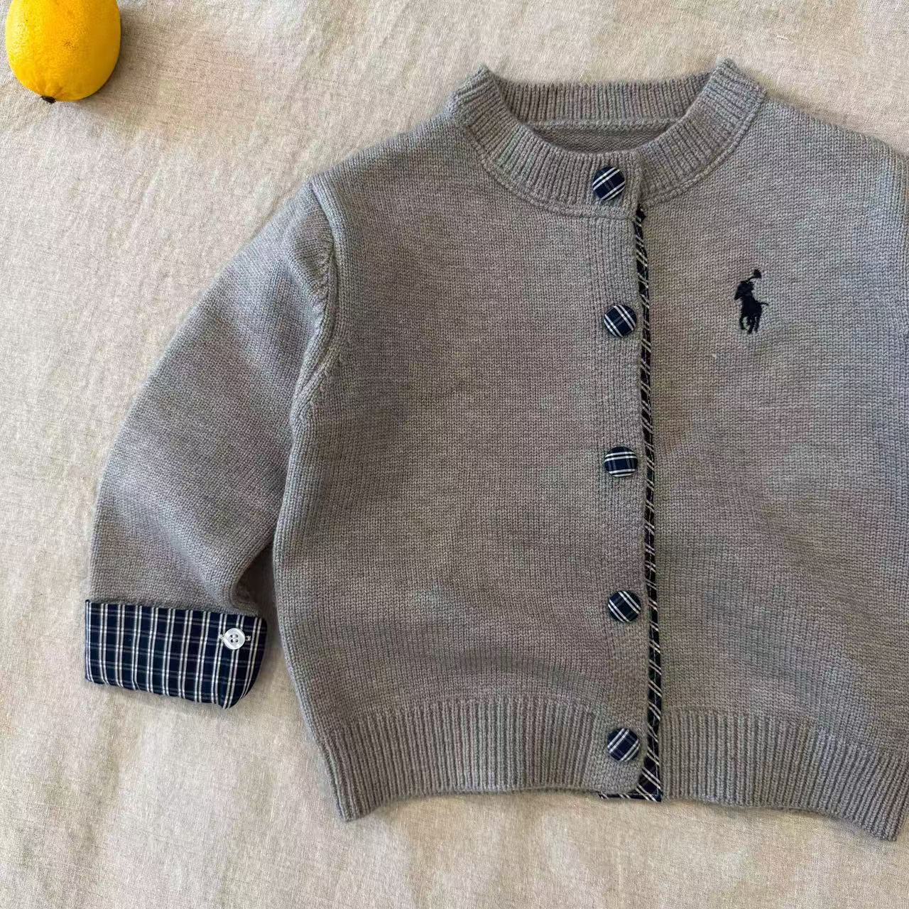 아동 스웨터 2025 가을 아동 의류 새로운 스타일 소년과 소녀 패션 대비 색상 자수 아기 니트 카디건 유행