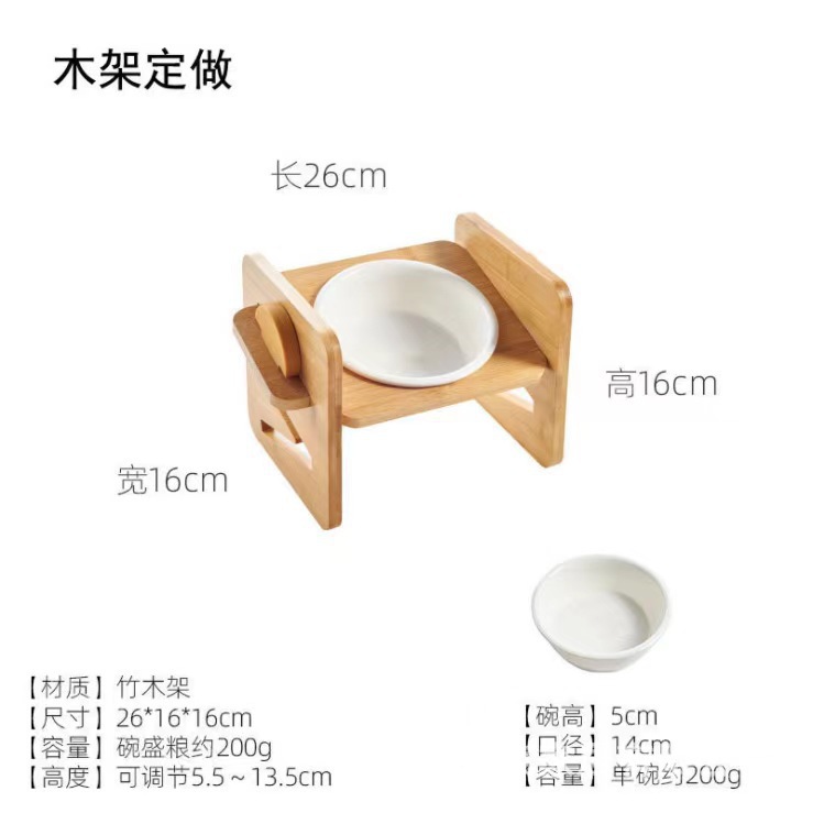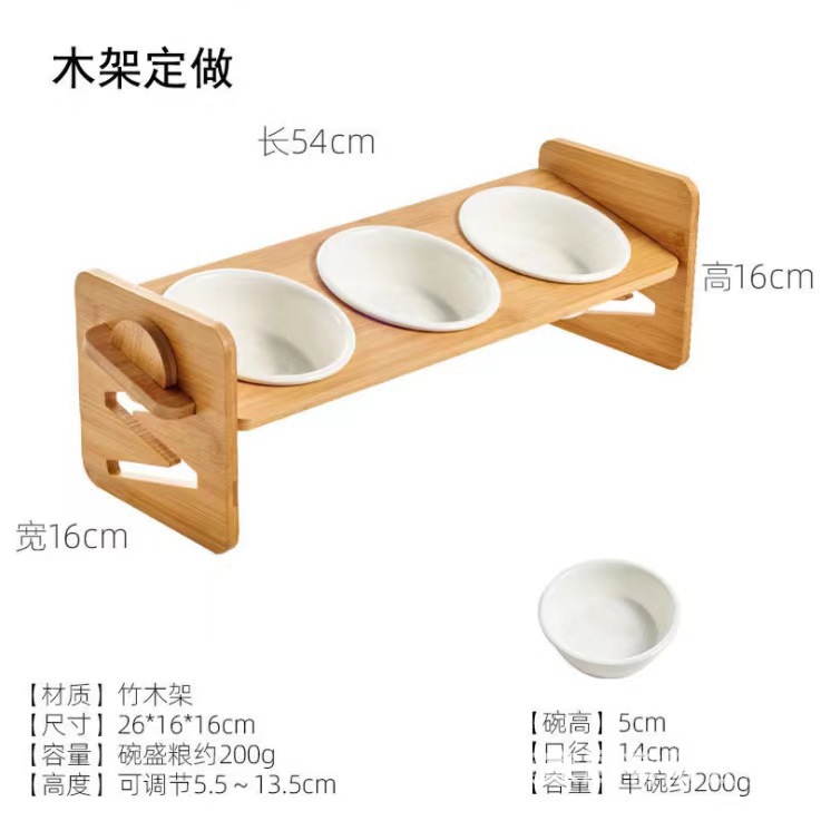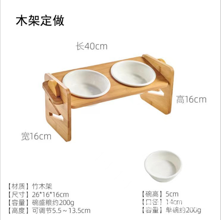 애완 동물 그릇 세라믹 고양이 그릇 경사 입 보호 자궁 경부 척추 고양이 먹이 그릇 애완 동물 개 그릇 조정 가능한 대나무 랙 애완 동물 더블 그릇