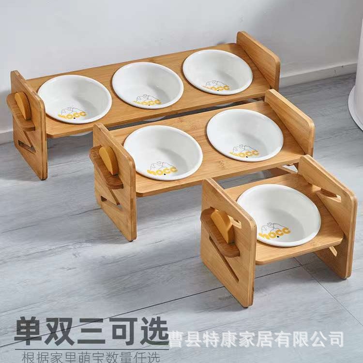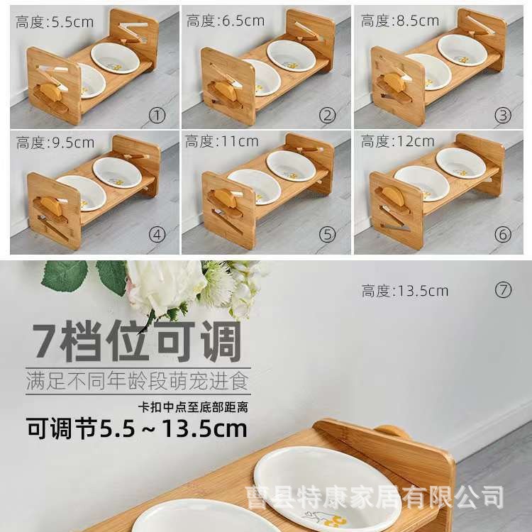 애완 동물 그릇 세라믹 고양이 그릇 경사 입 보호 자궁 경부 척추 고양이 먹이 그릇 애완 동물 개 그릇 조정 가능한 대나무 랙 애완 동물 더블 그릇스토어 가기
