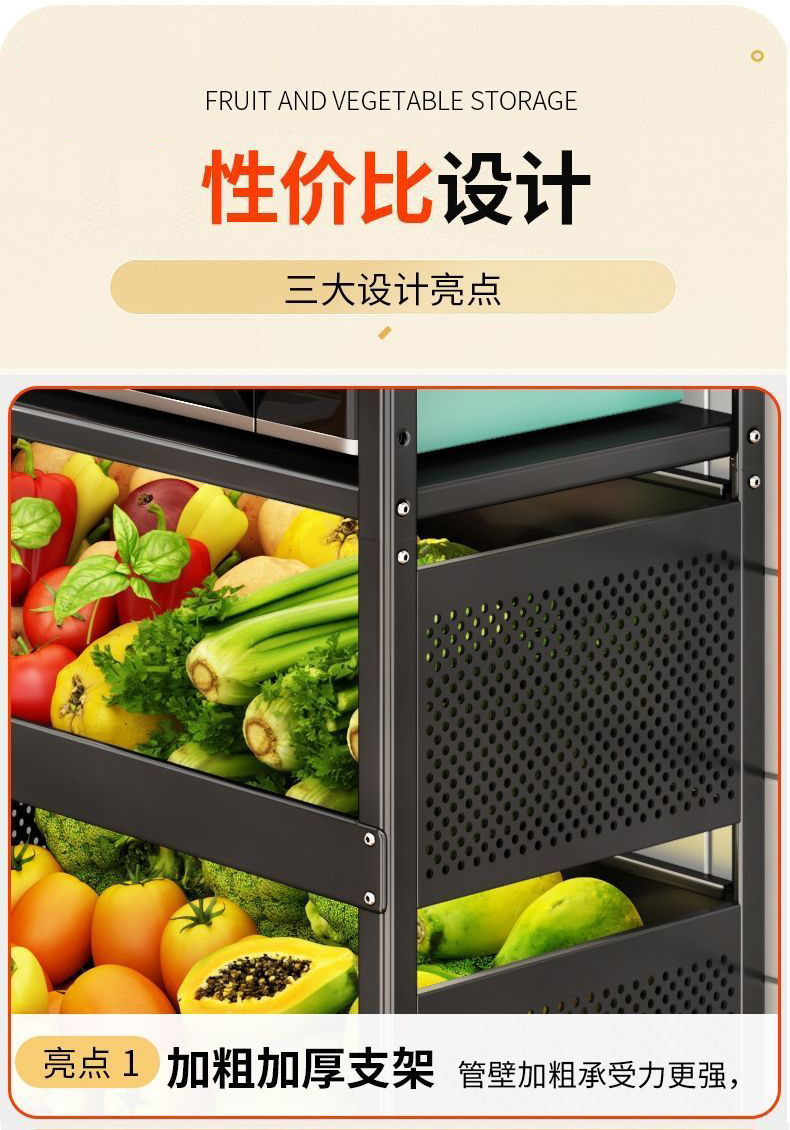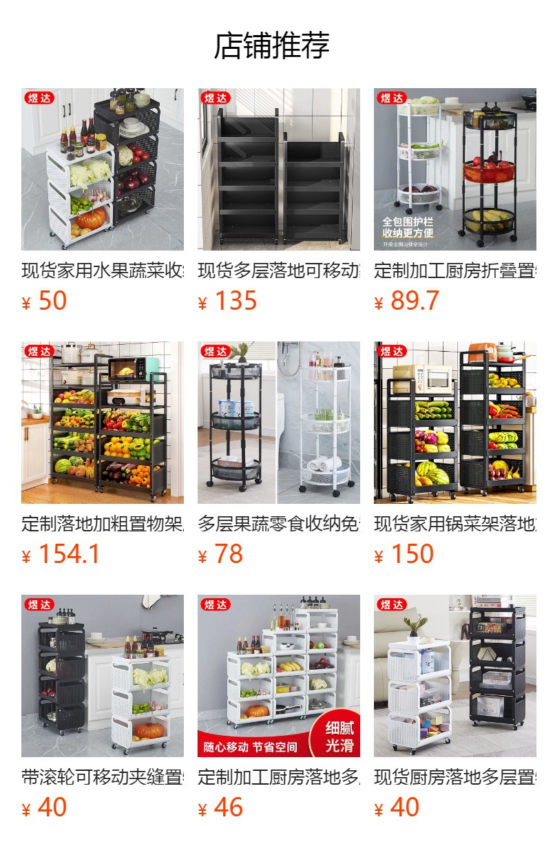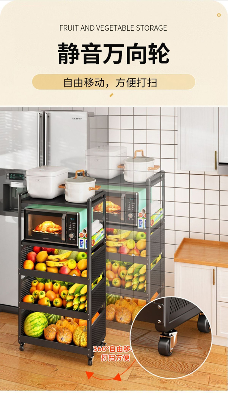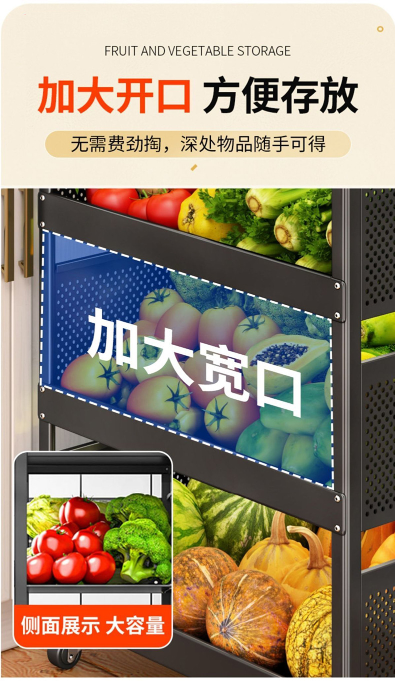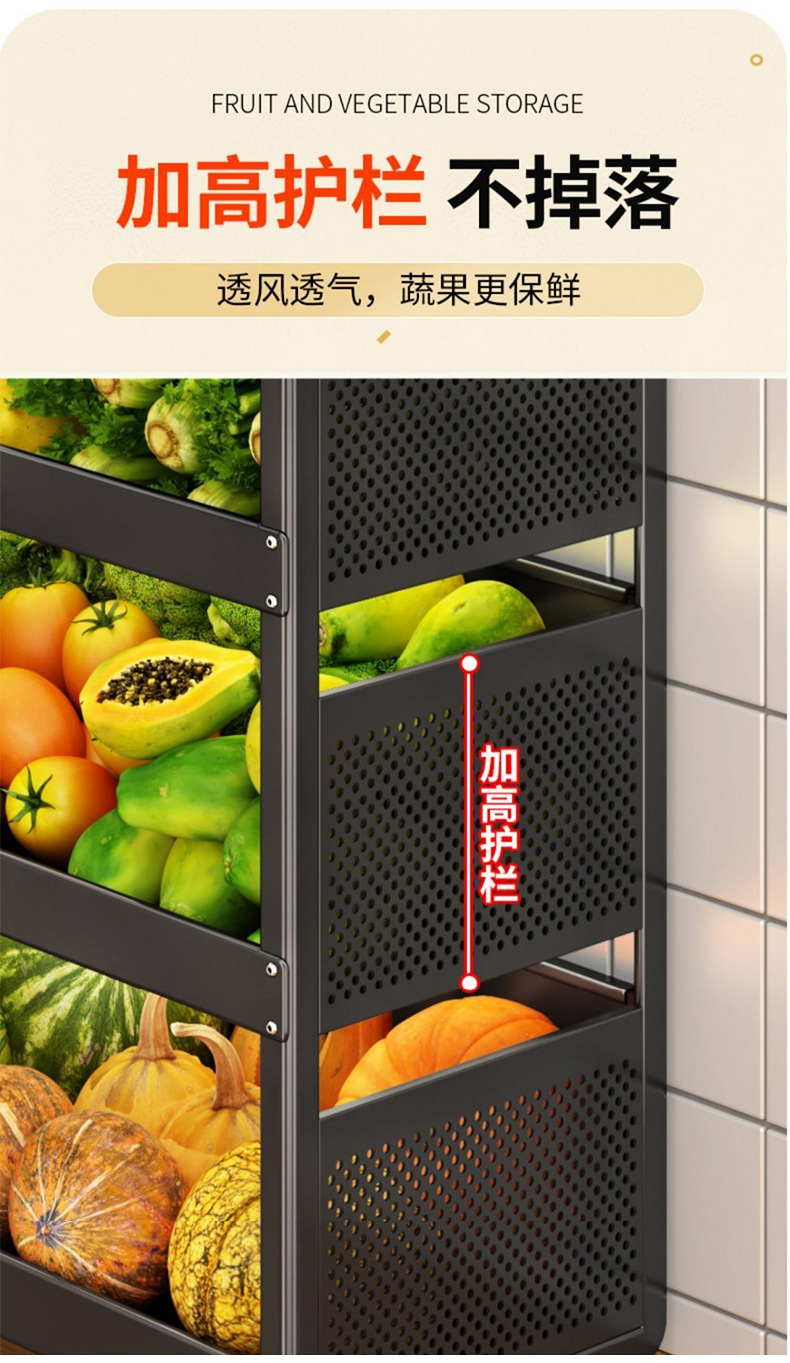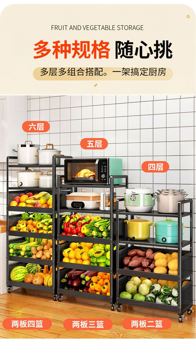 재고 다층 바닥 서 움직일 수 있는 가정용 냄비 야채 랙 야채 저장 랙 굵은 주방 랙 도매스토어 가기