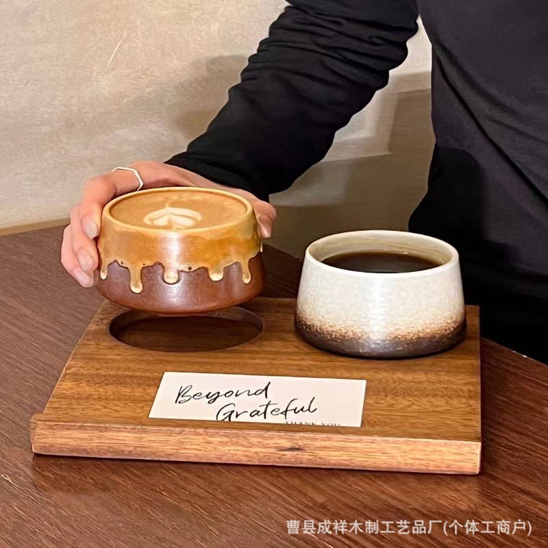 빈티지 나무 카페 3 홀 음료 3 칸 단단한 나무 커피 트레이 1 콩 3 음료 상업 시식 나무 트레이스토어 가기