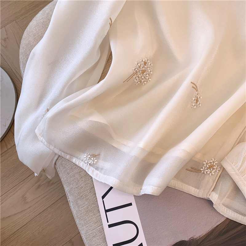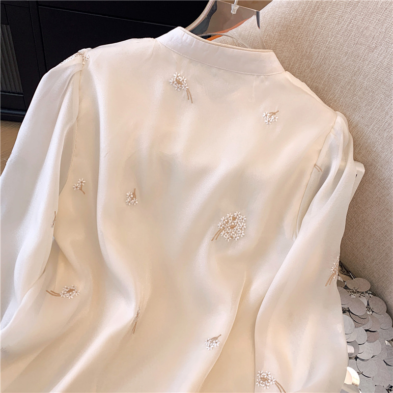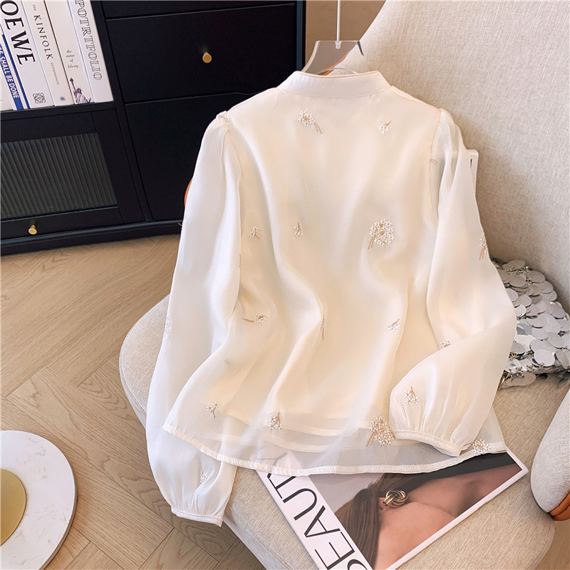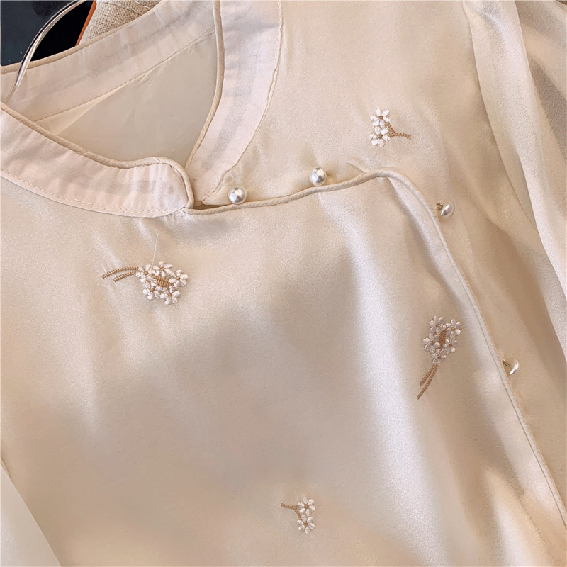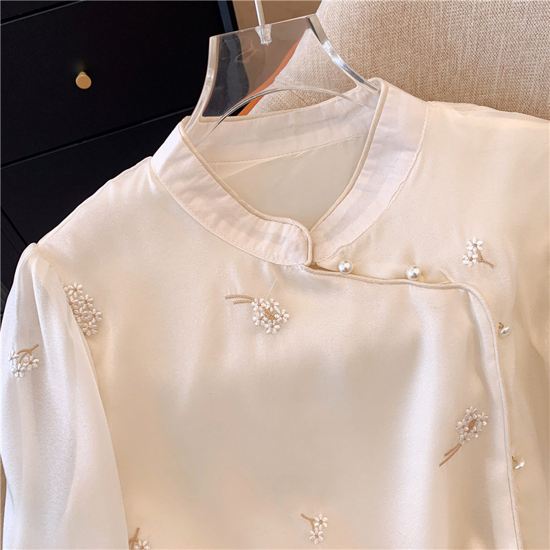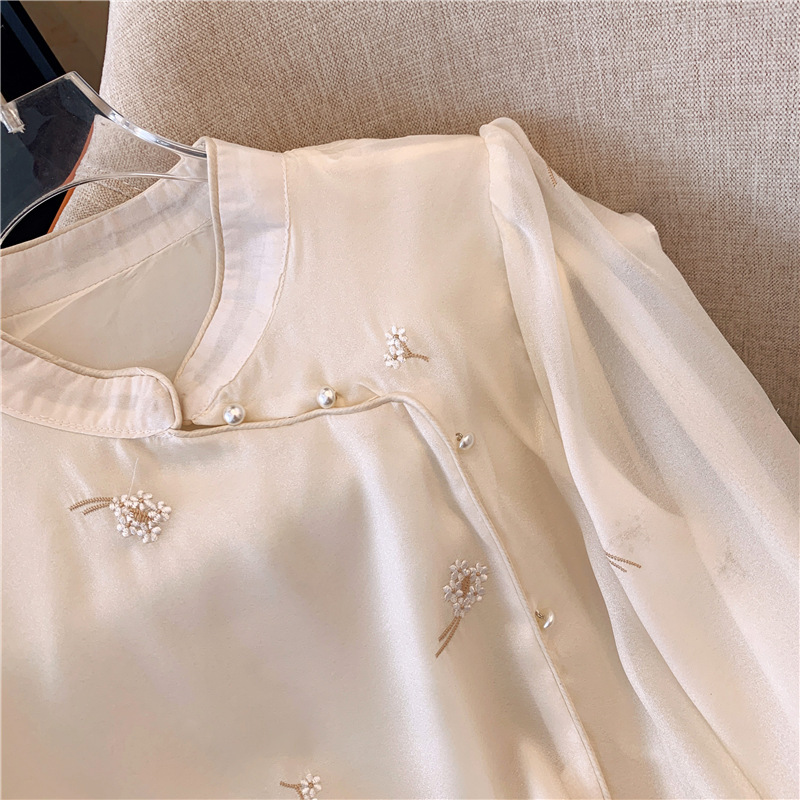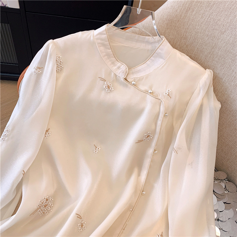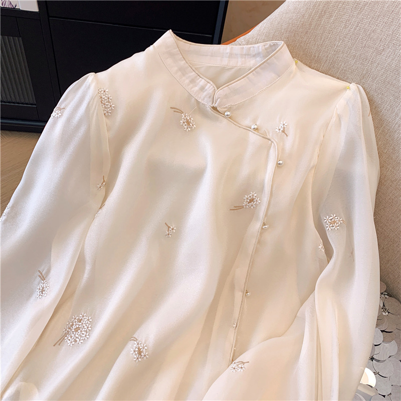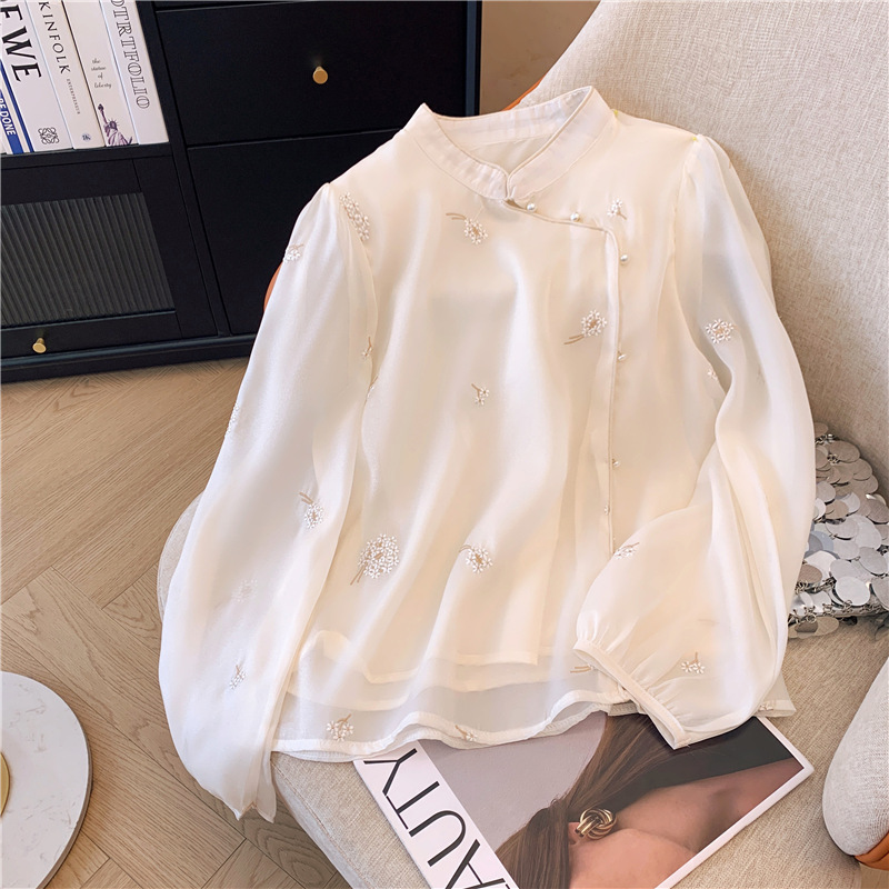 2025 년 초 봄 새로운 중국 스타일 개선 된 스타일 수놓은 쉬폰 셔츠 여성용 긴팔 셔츠
