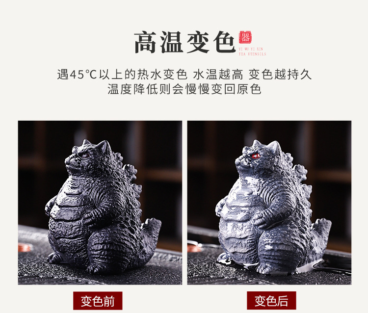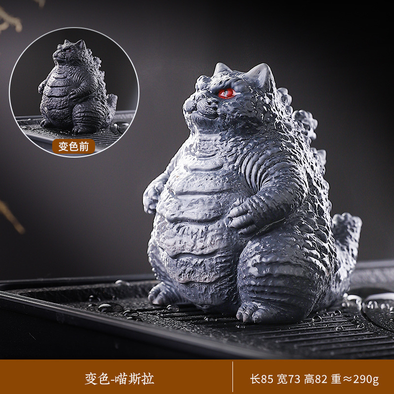 만화 스타일의 새로운 고양이 머리 모양의 고질라, 색깔이 변하는 티 펫 장식품, 티 테이블 장식, 쿵푸 차 세트 액세서리 인형스토어 가기