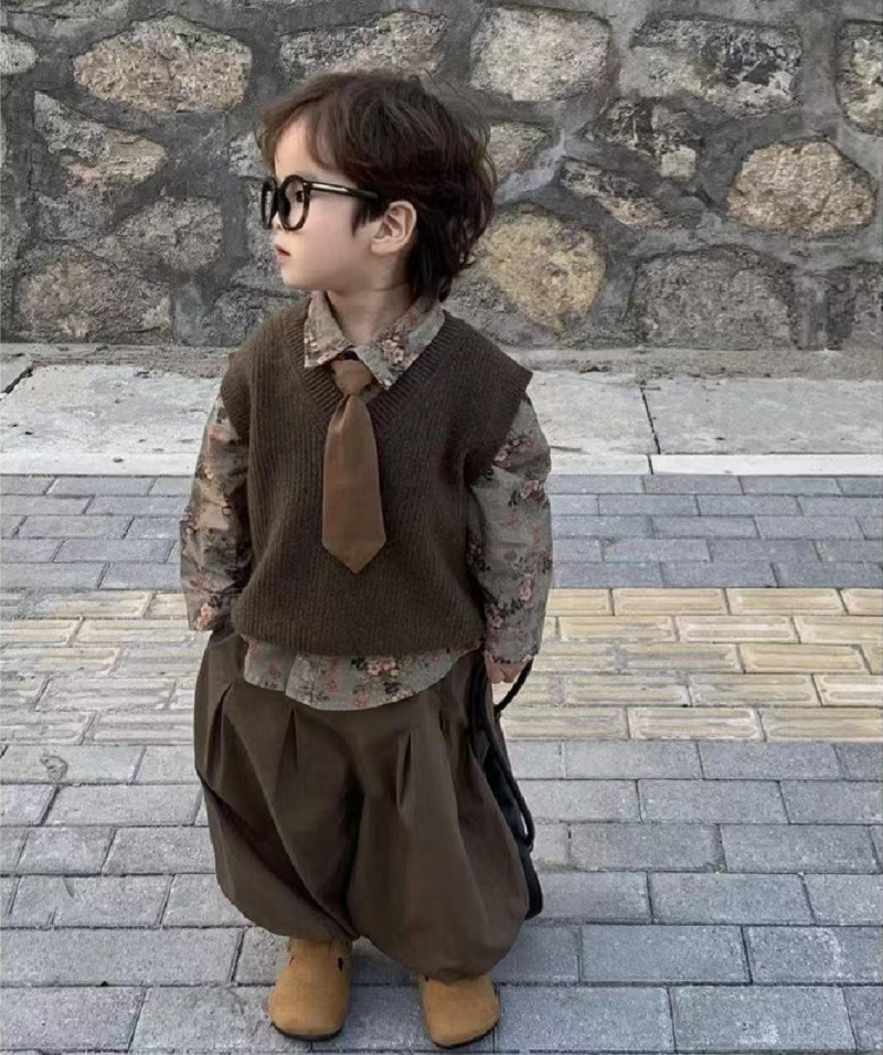 소년의 봄 가을 세트 2025 새로운 어린이 한국식 봄 가을 아기 셔츠 스웨터 조끼 트렌디 한 3 피스 세트스토어 가기