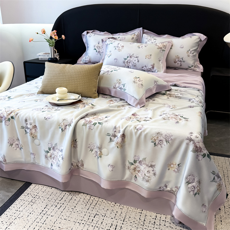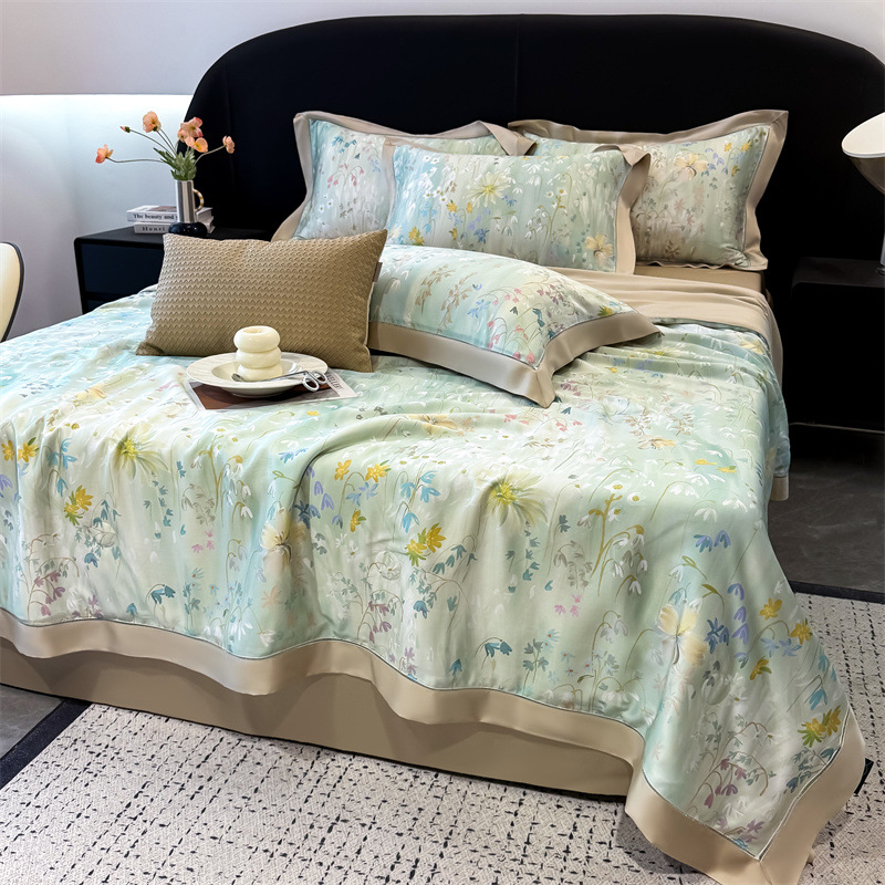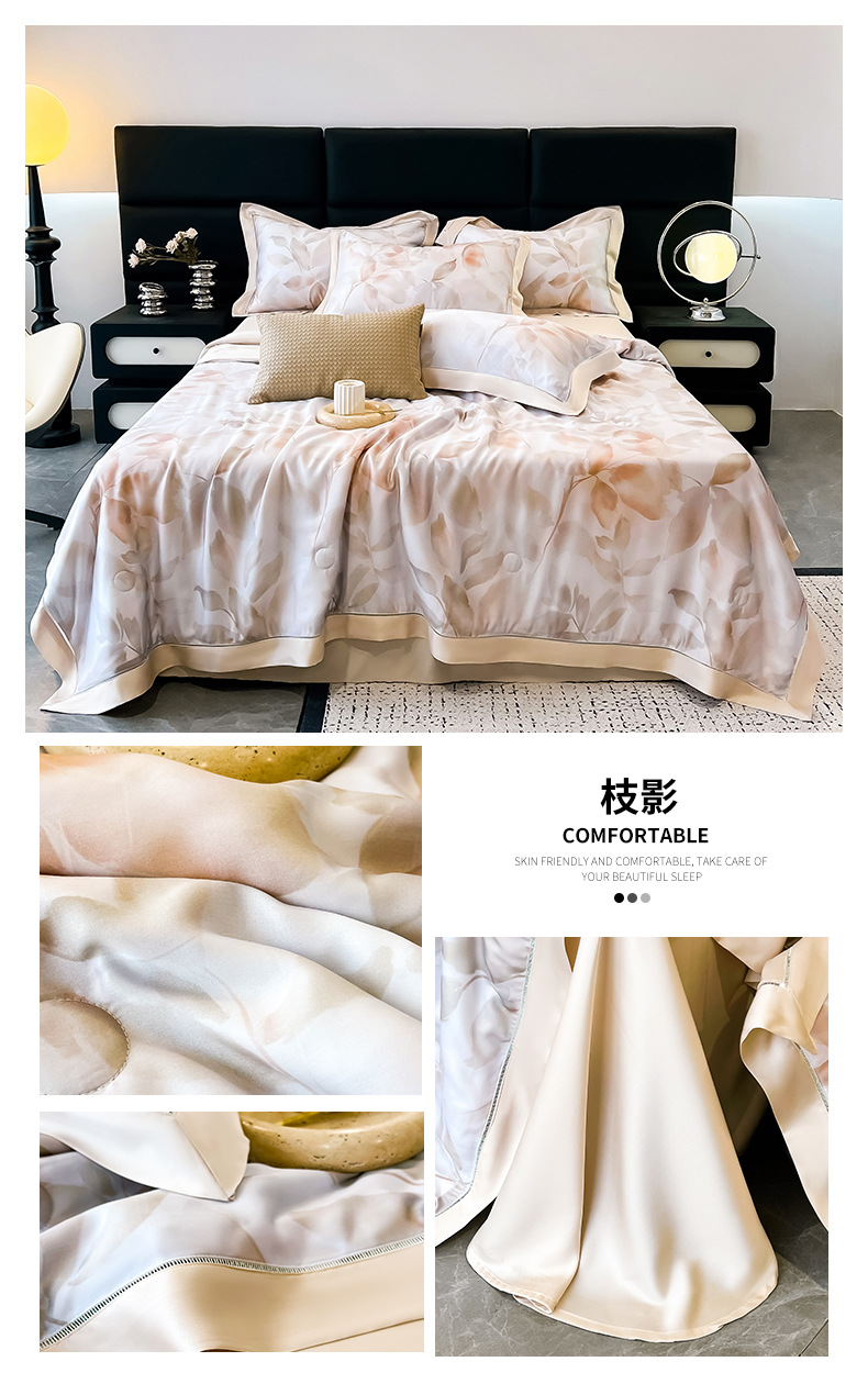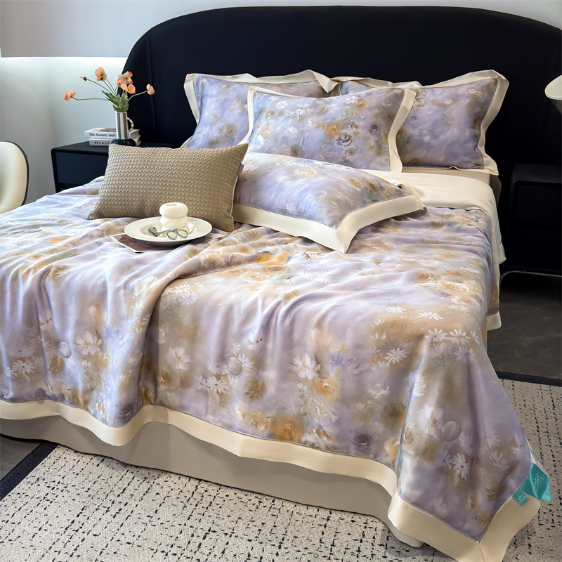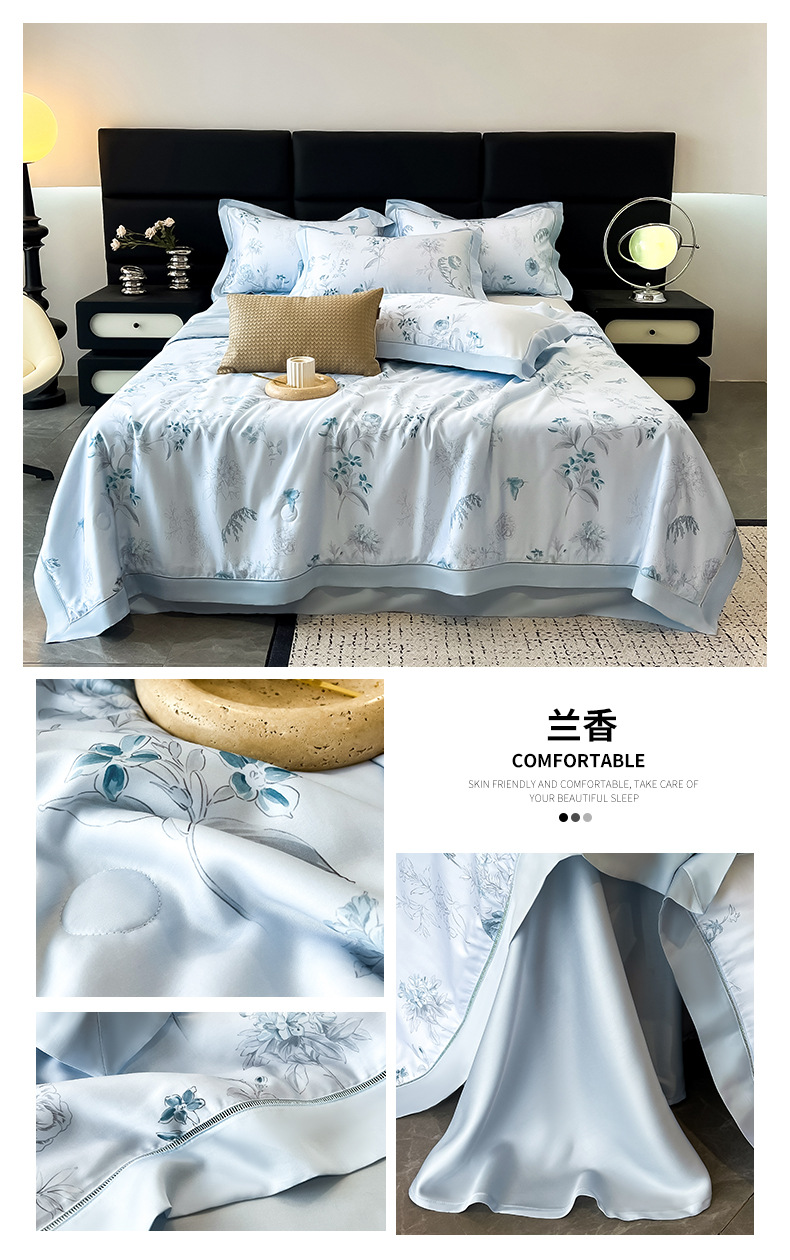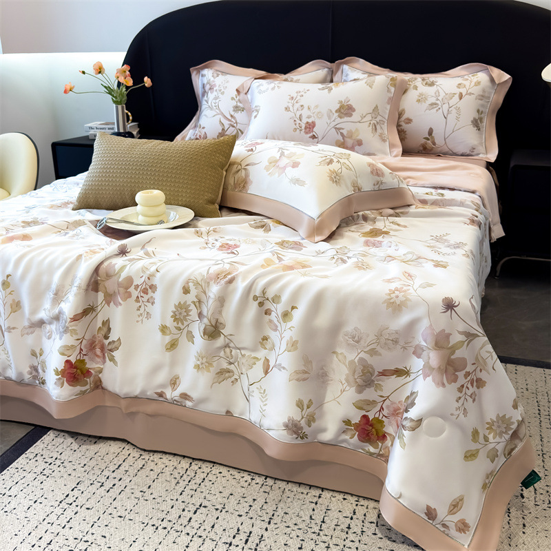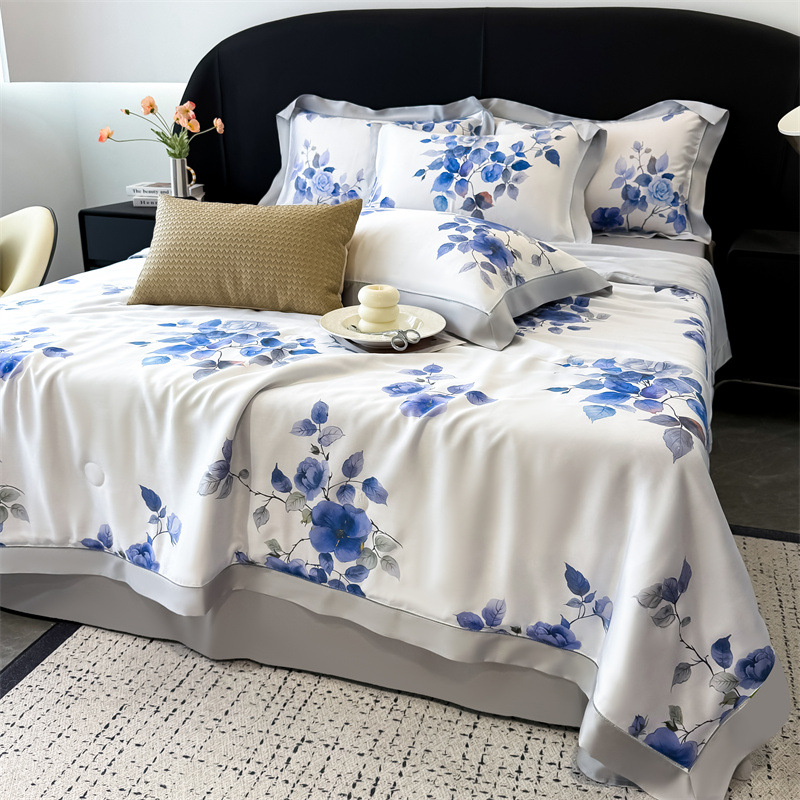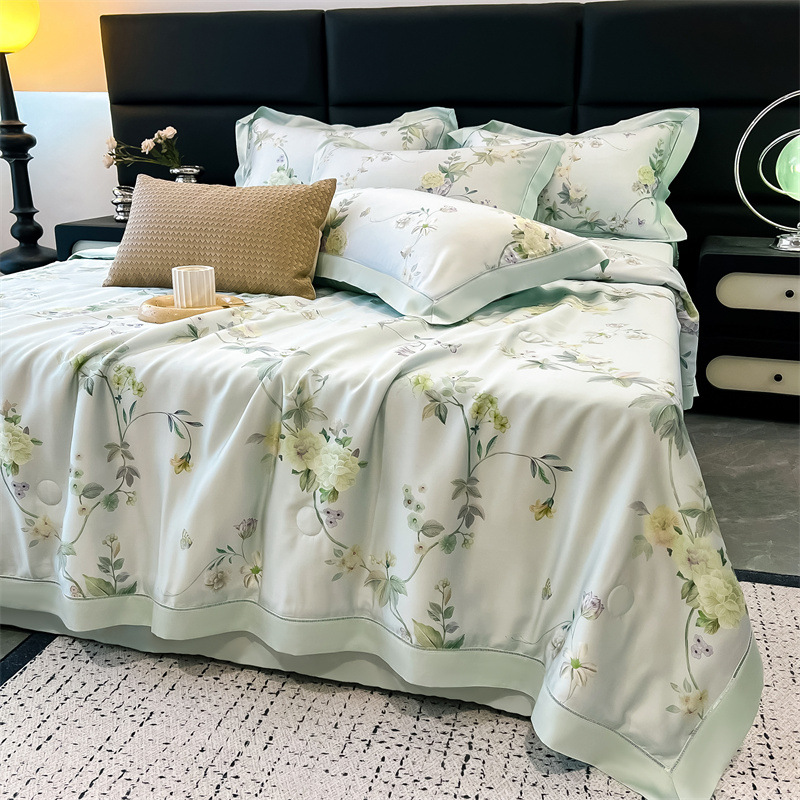 Lyocell 양면 Lanjing Tencel 여름 이불 에어컨 이불 여름 시원한 이불 4 조각 여름 잠자는 벌거 벗은 얼음 실크 얇은 이불