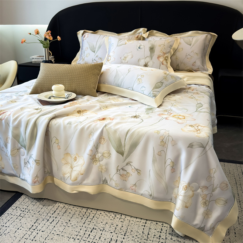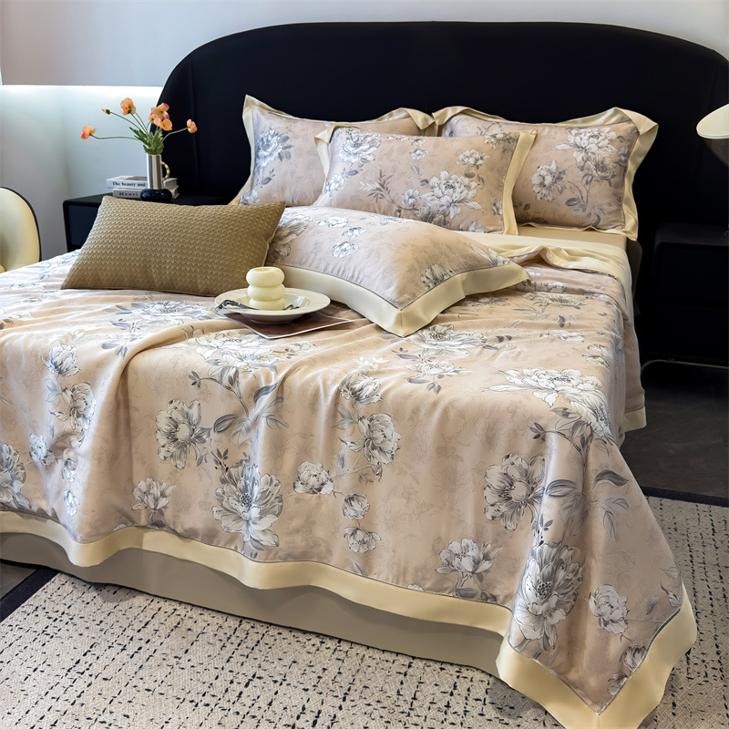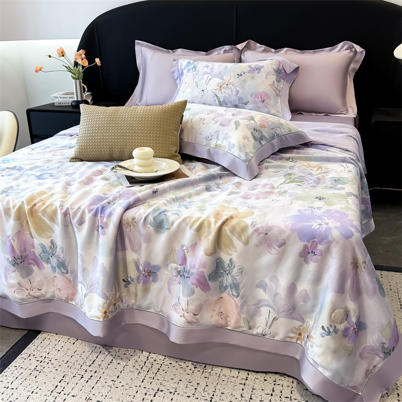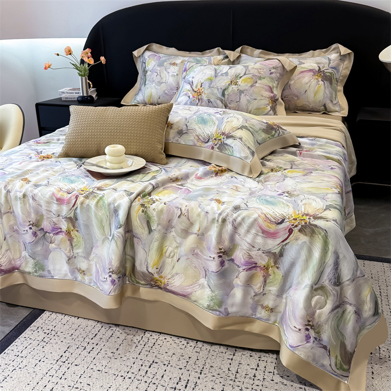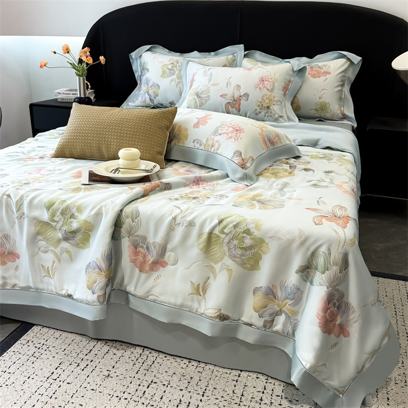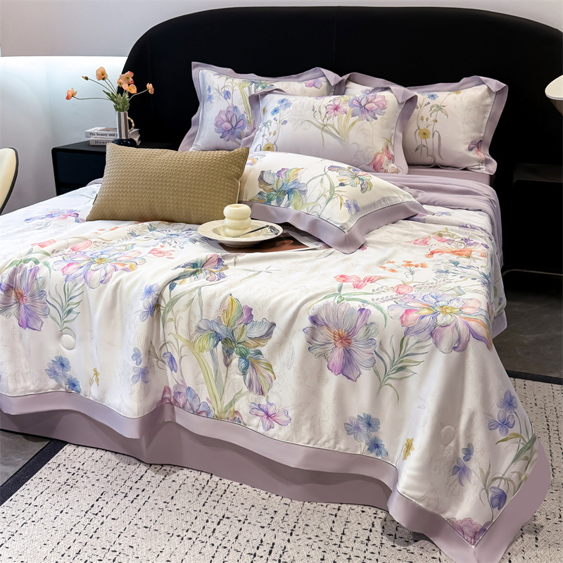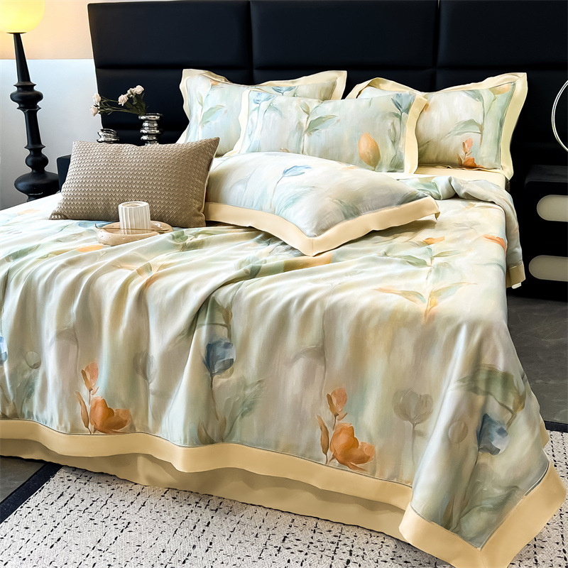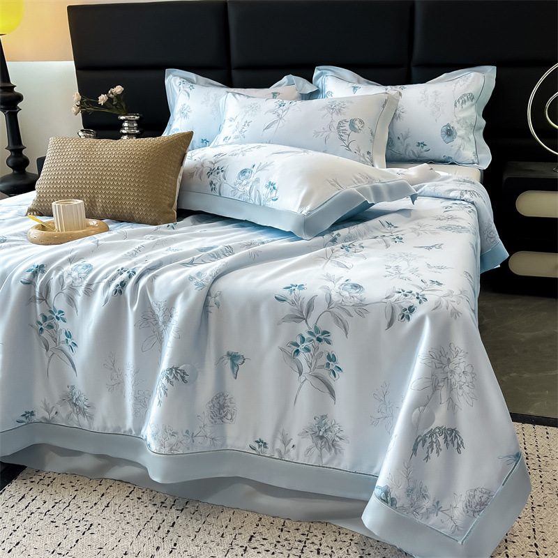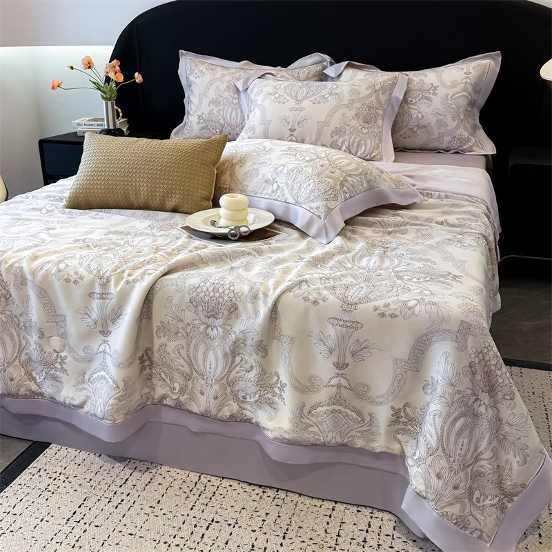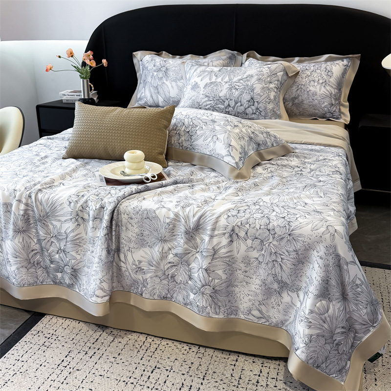 Lyocell 양면 Lanjing Tencel 여름 이불 에어컨 이불 여름 시원한 이불 4 조각 여름 잠자는 벌거 벗은 얼음 실크 얇은 이불