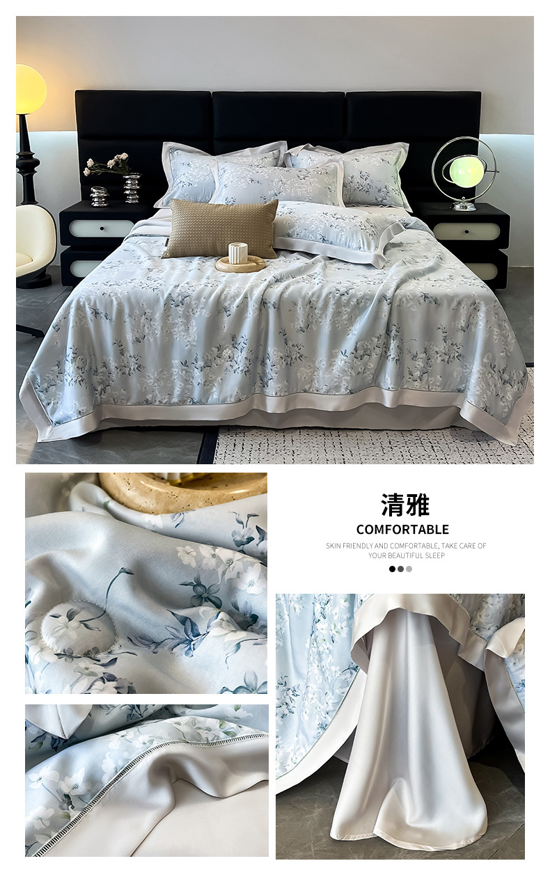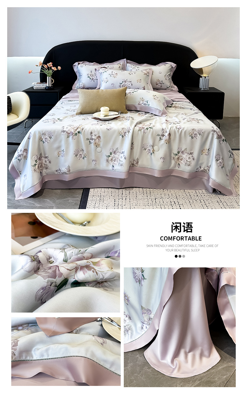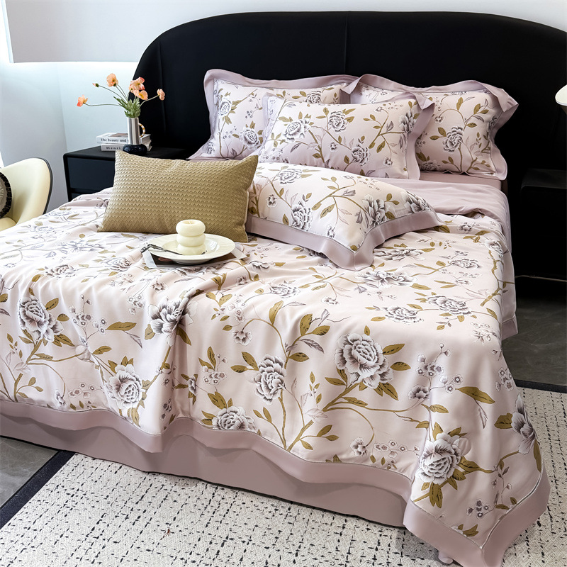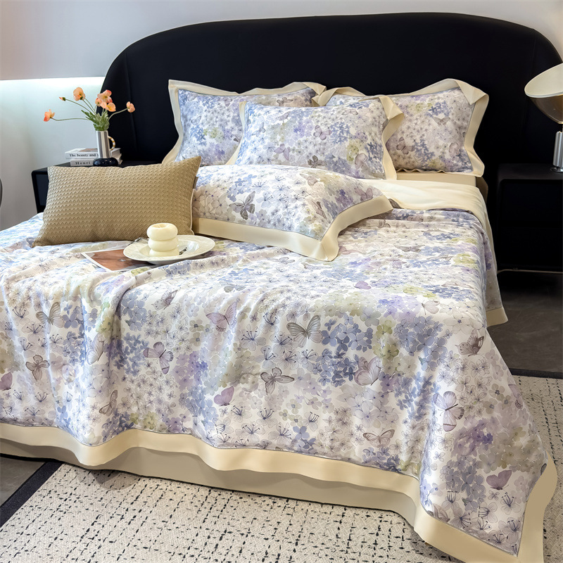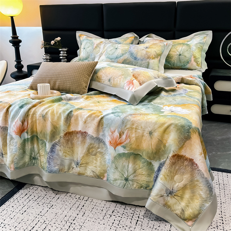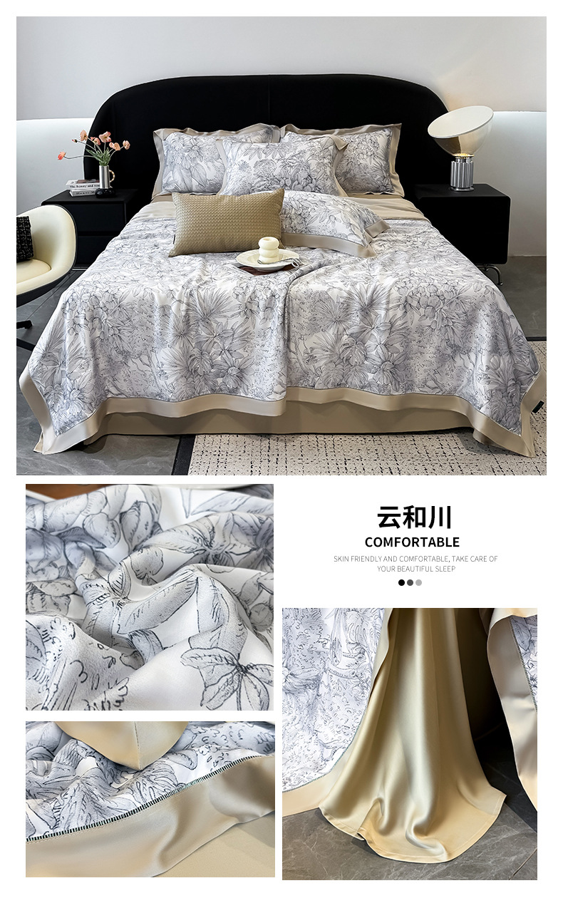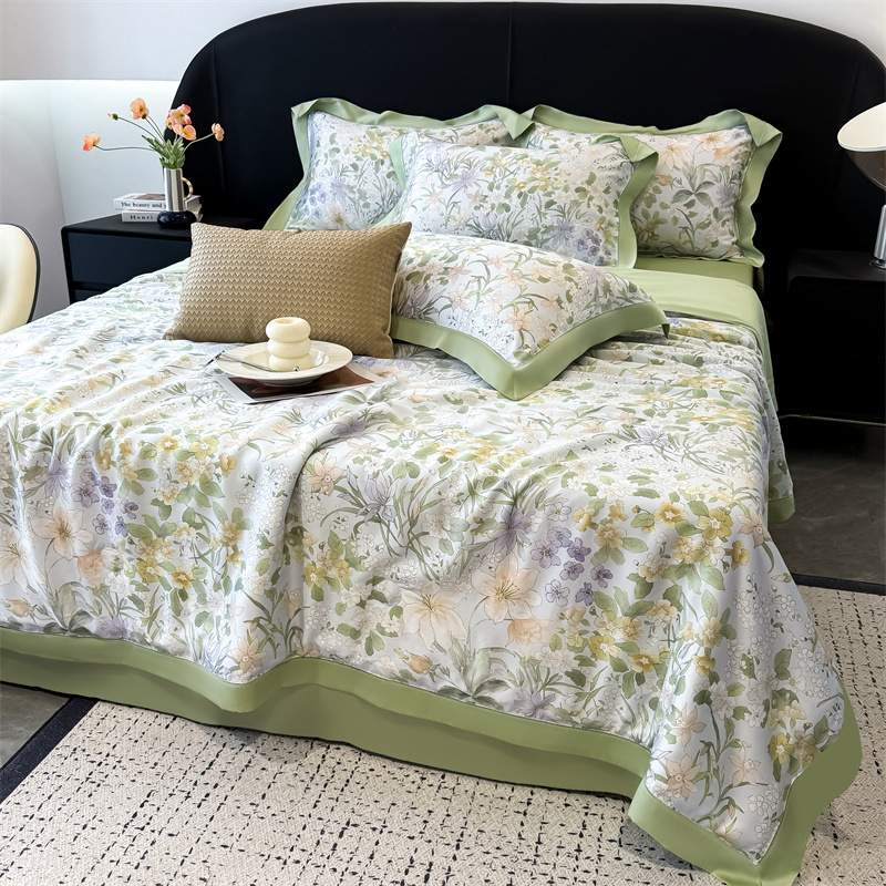 Lyocell 양면 Lanjing Tencel 여름 이불 에어컨 이불 여름 시원한 이불 4 조각 여름 잠자는 벌거 벗은 얼음 실크 얇은 이불