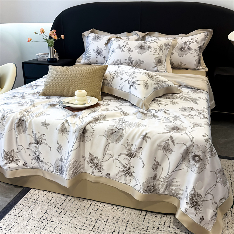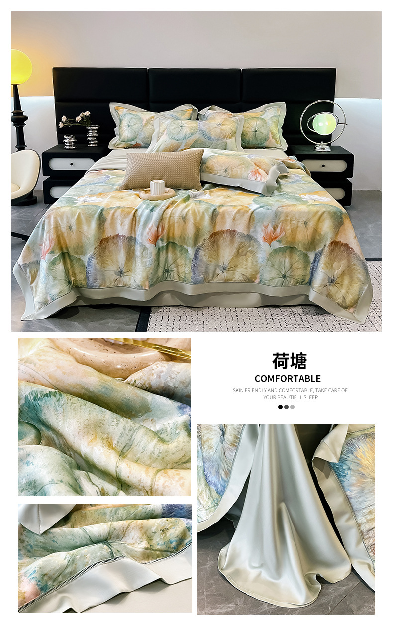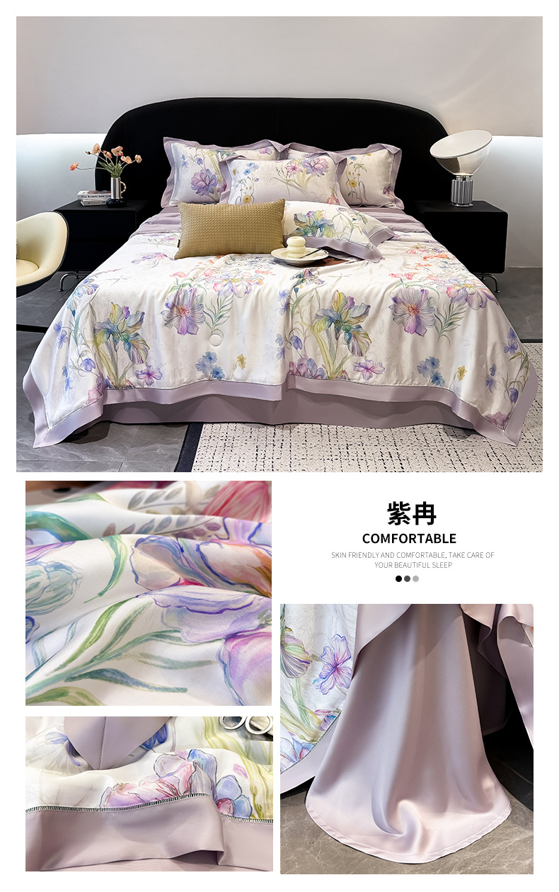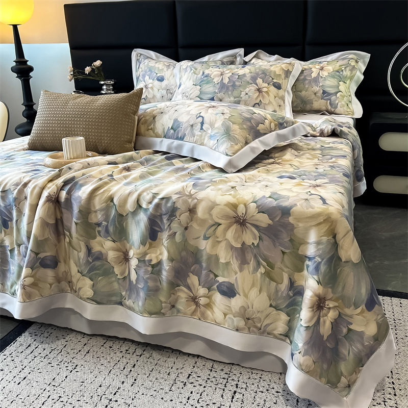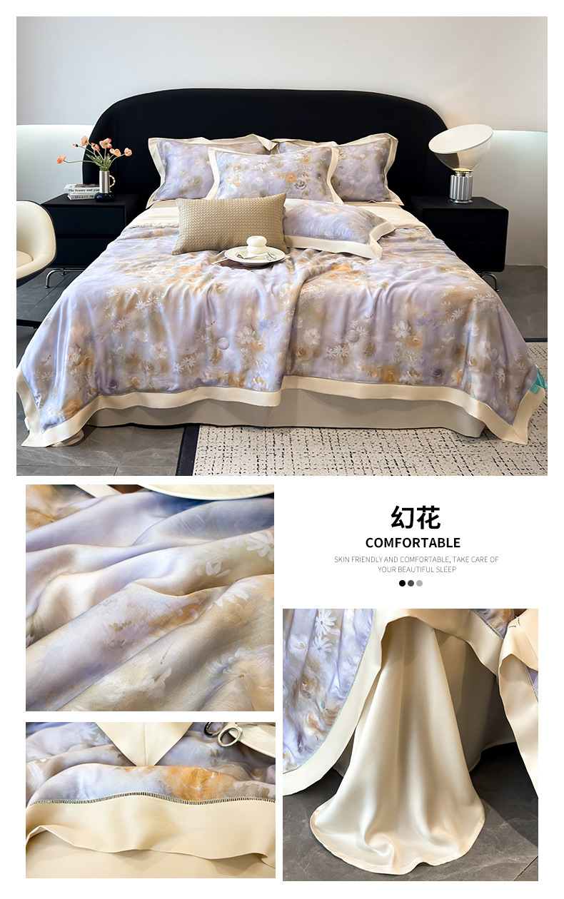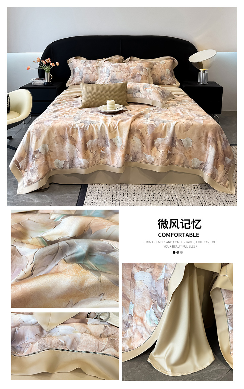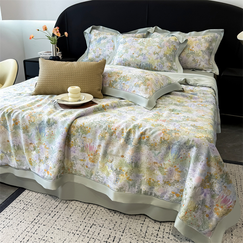 Lyocell 양면 Lanjing Tencel 여름 이불 에어컨 이불 여름 시원한 이불 4 조각 여름 잠자는 벌거 벗은 얼음 실크 얇은 이불