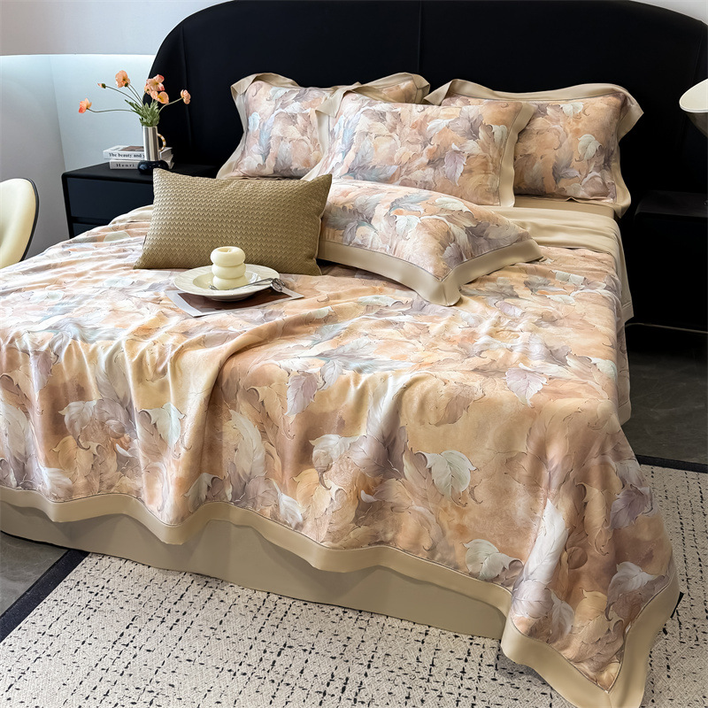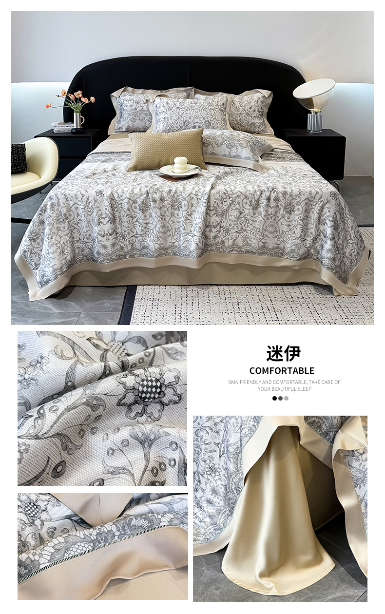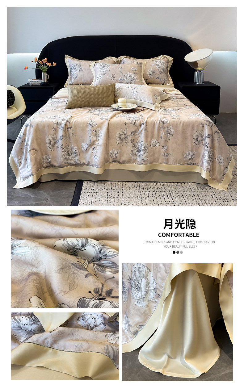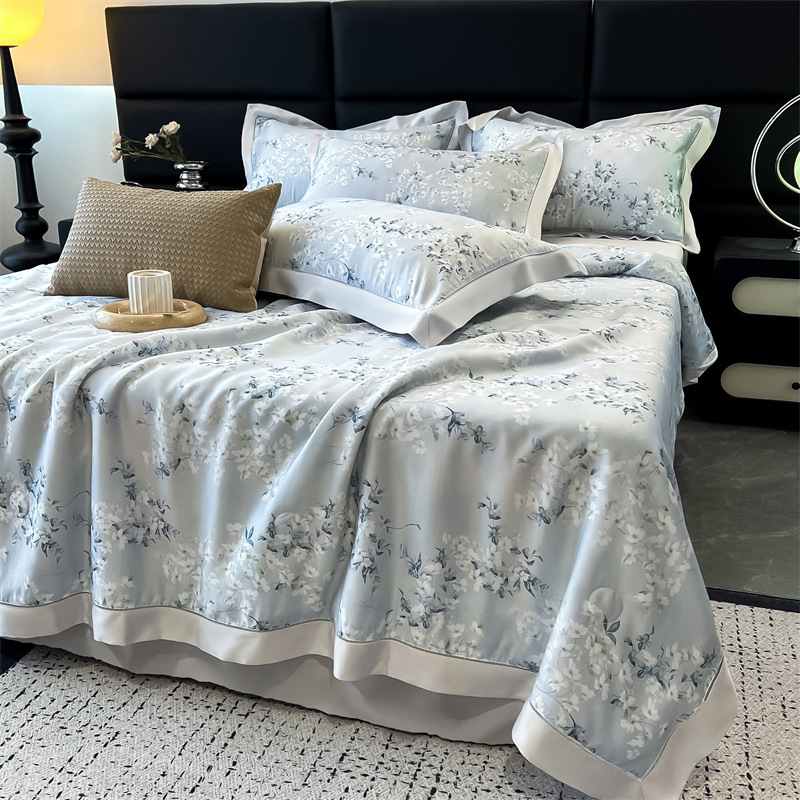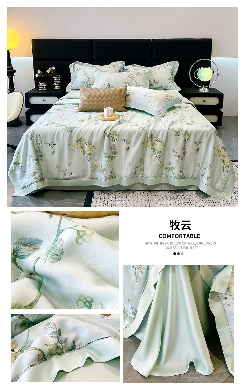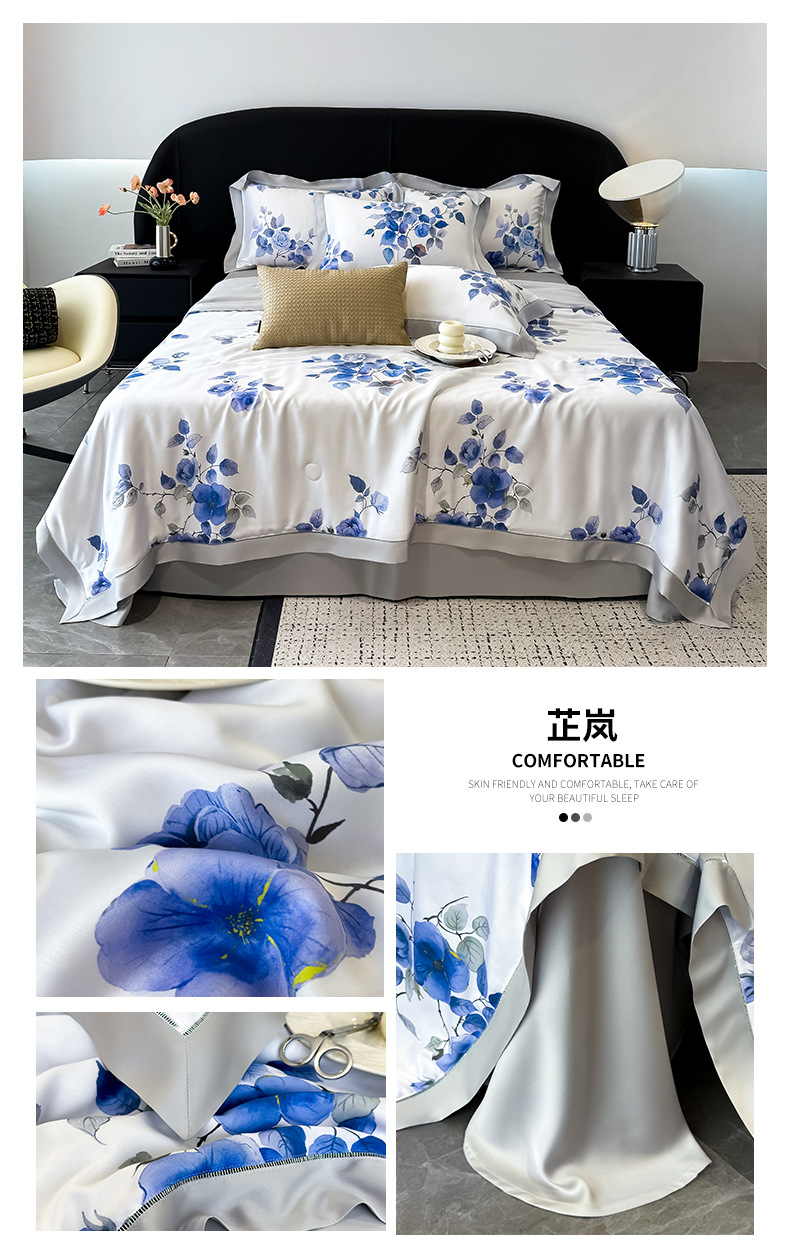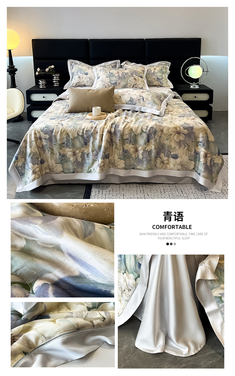 Lyocell 양면 Lanjing Tencel 여름 이불 에어컨 이불 여름 시원한 이불 4 조각 여름 잠자는 벌거 벗은 얼음 실크 얇은 이불