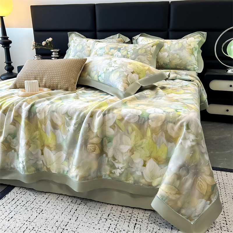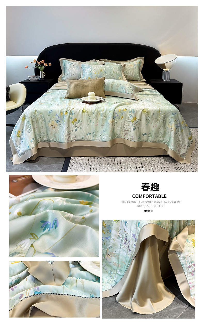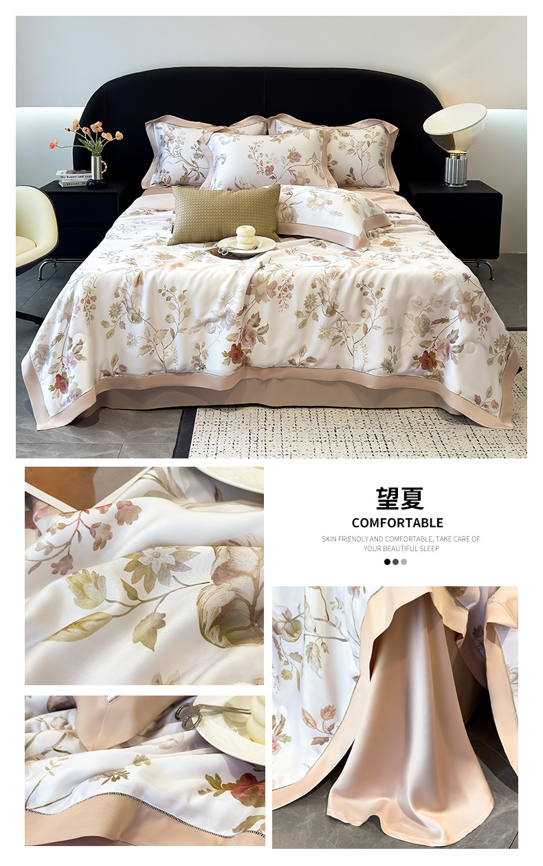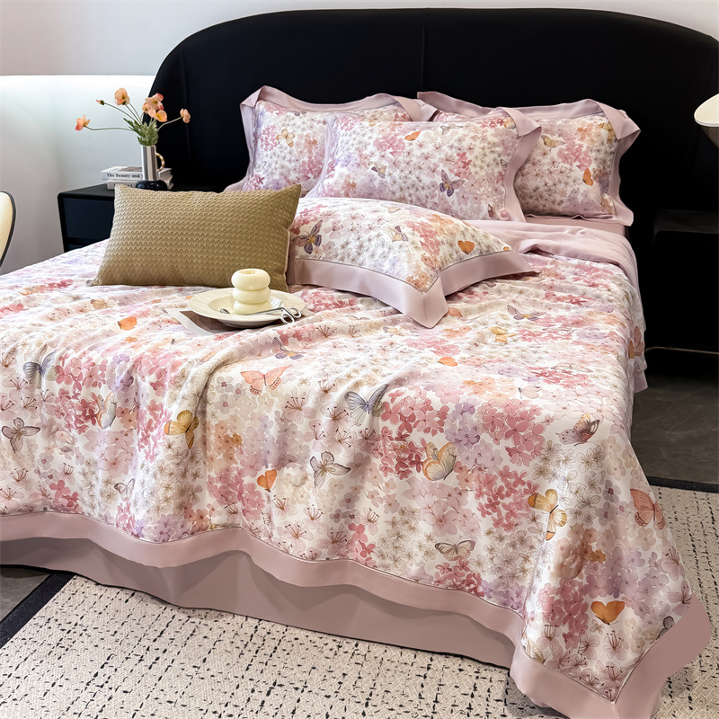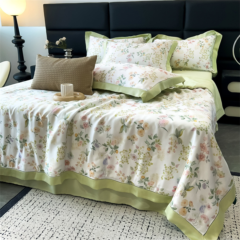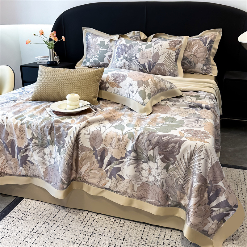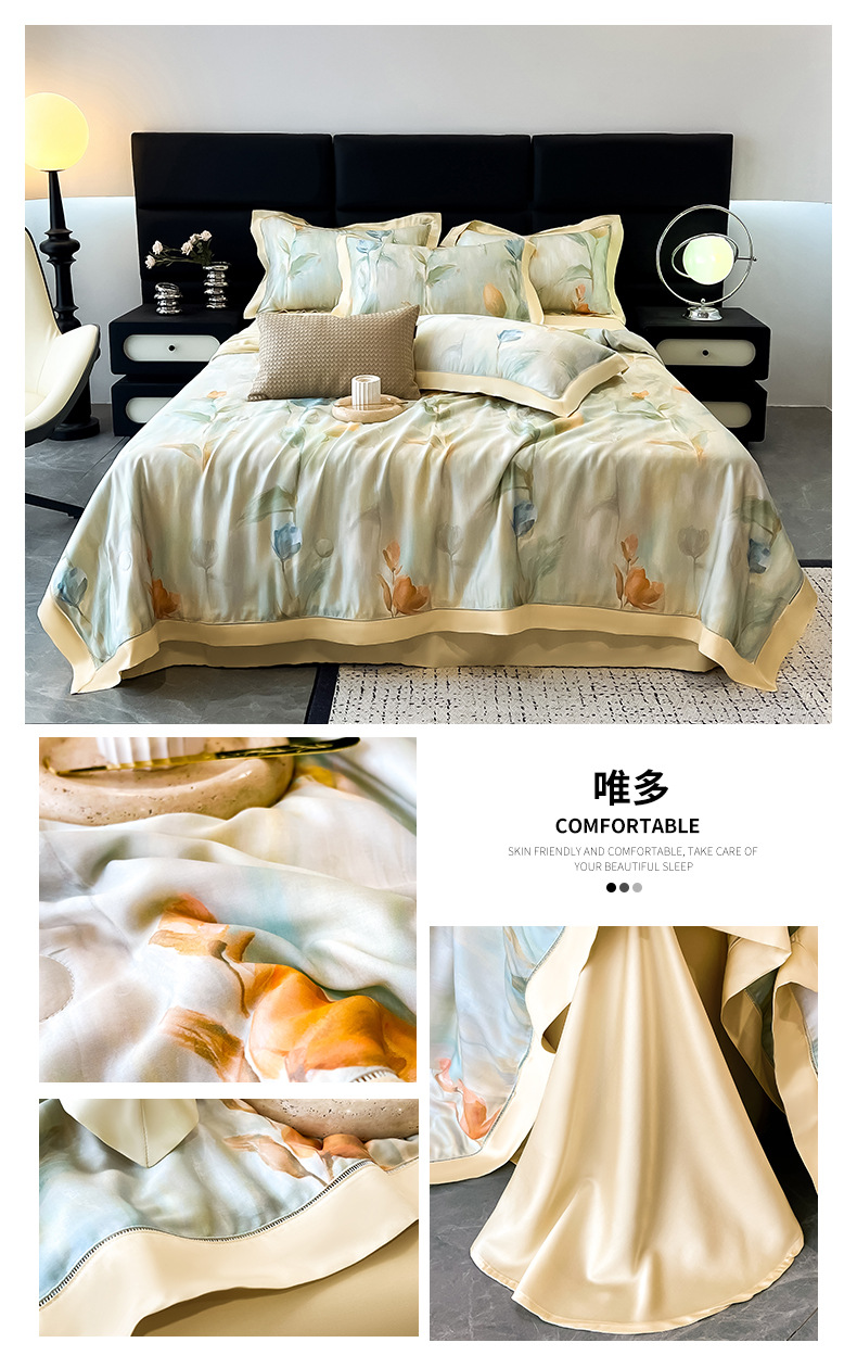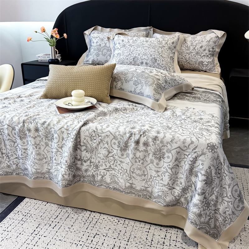 Lyocell 양면 Lanjing Tencel 여름 이불 에어컨 이불 여름 시원한 이불 4 조각 여름 잠자는 벌거 벗은 얼음 실크 얇은 이불